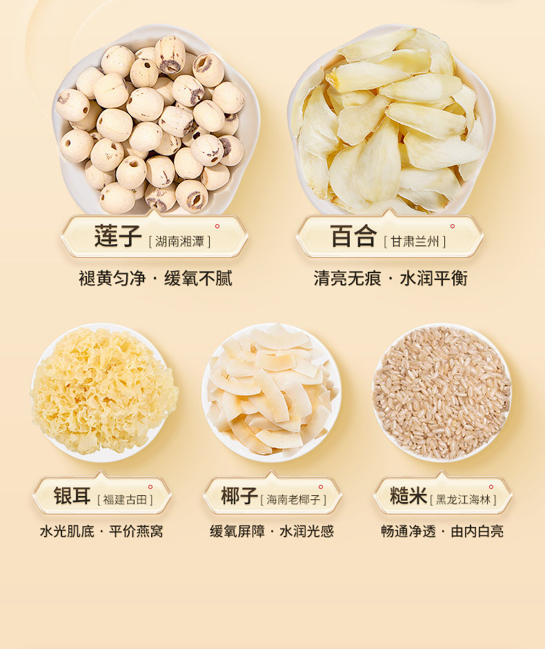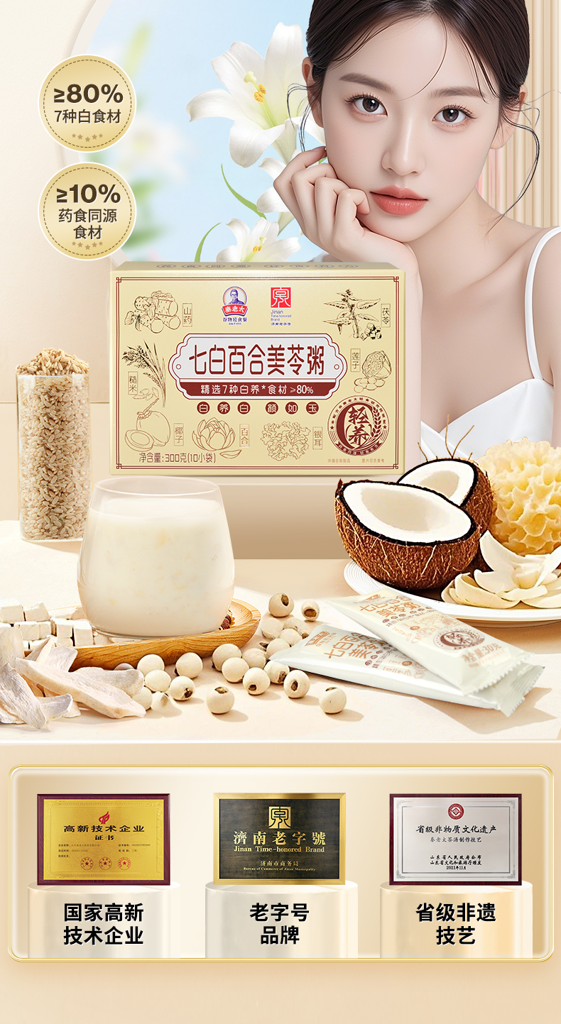 [好评8630+条]秦老太七白百合美苓粥300g/盒(10袋)山药茯苓早餐代餐白养白独立包装