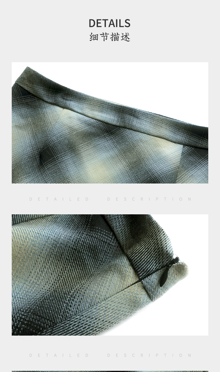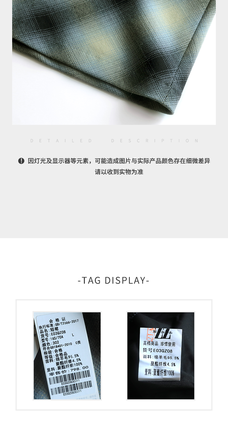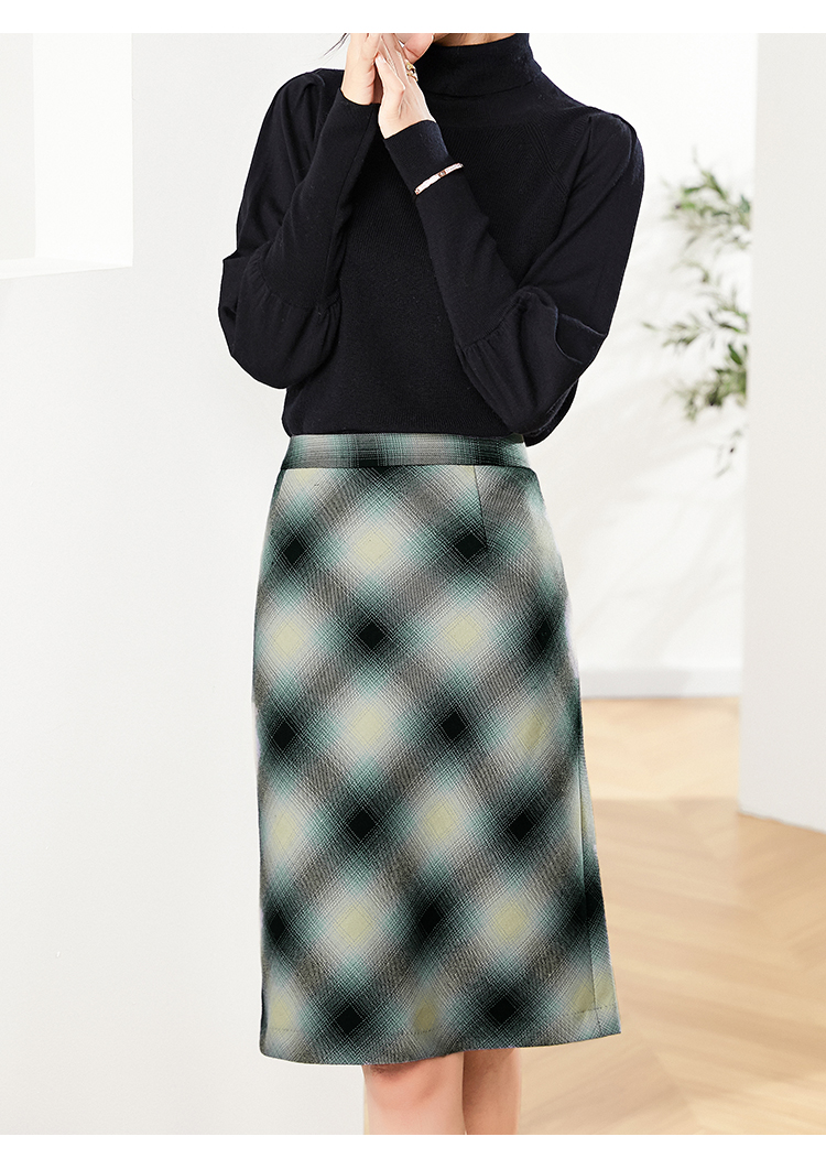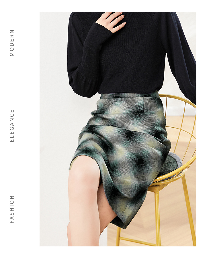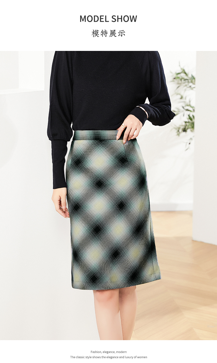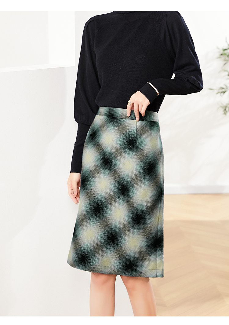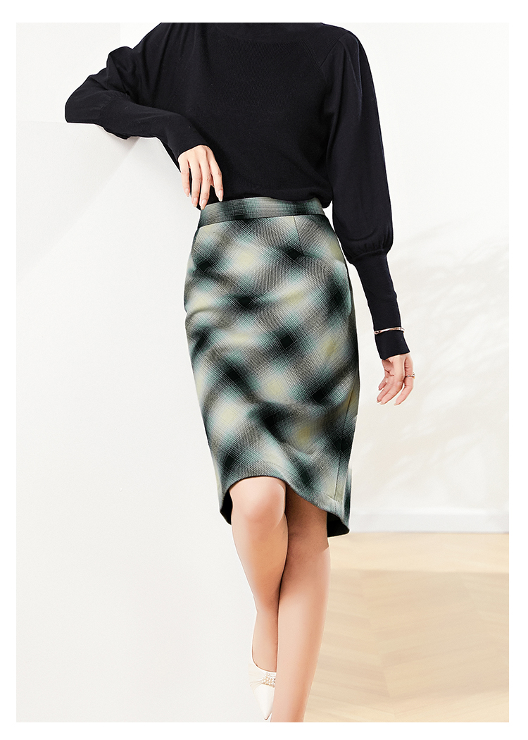 佐尔美2023春季新款 气质绵羊毛格纹包臀半身裙短裙女E03QZ08