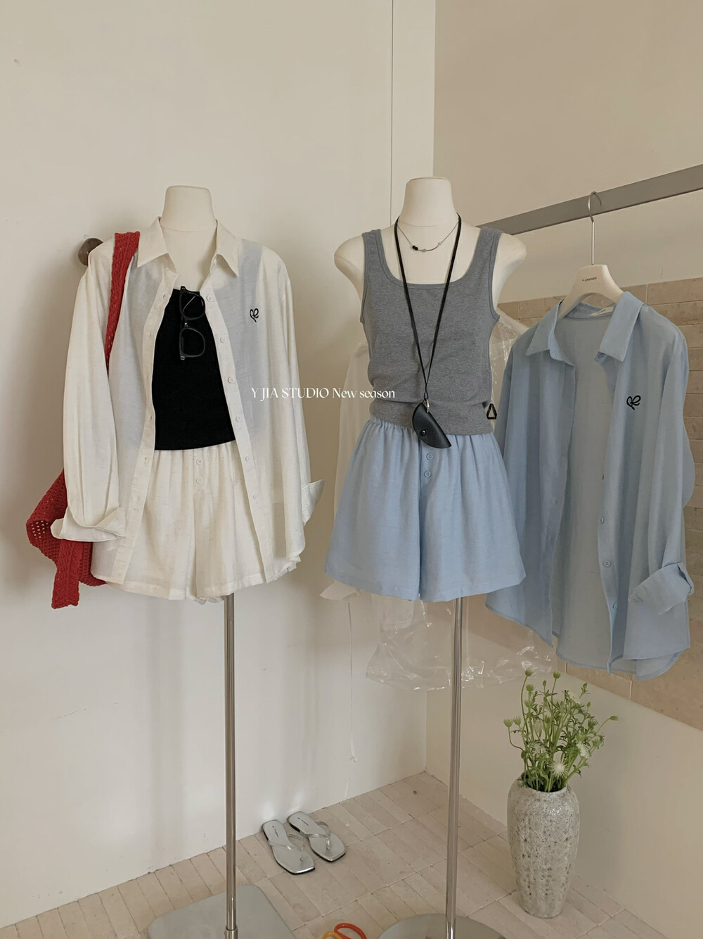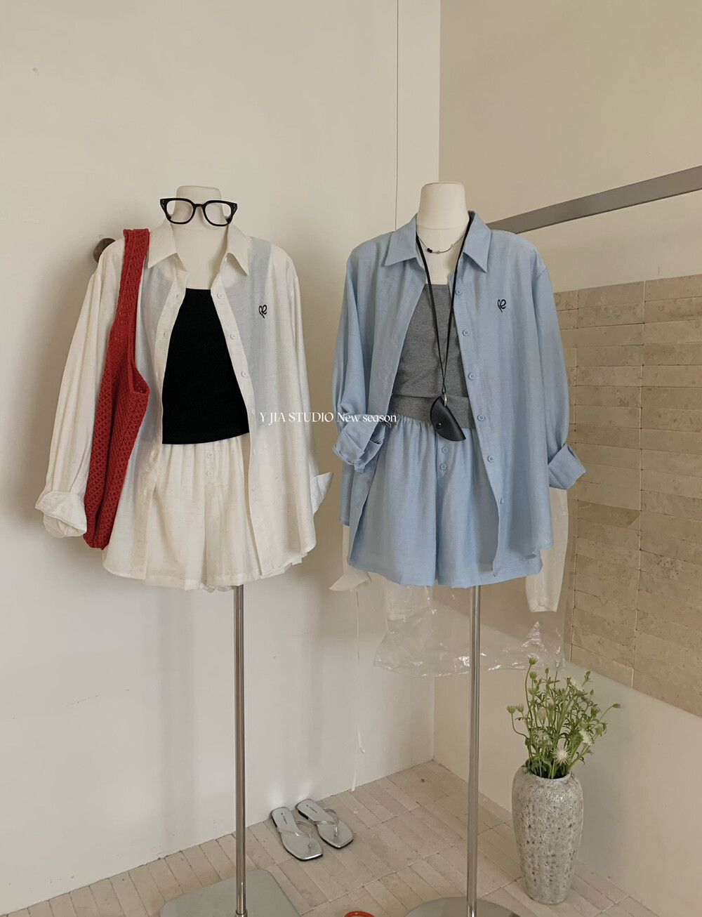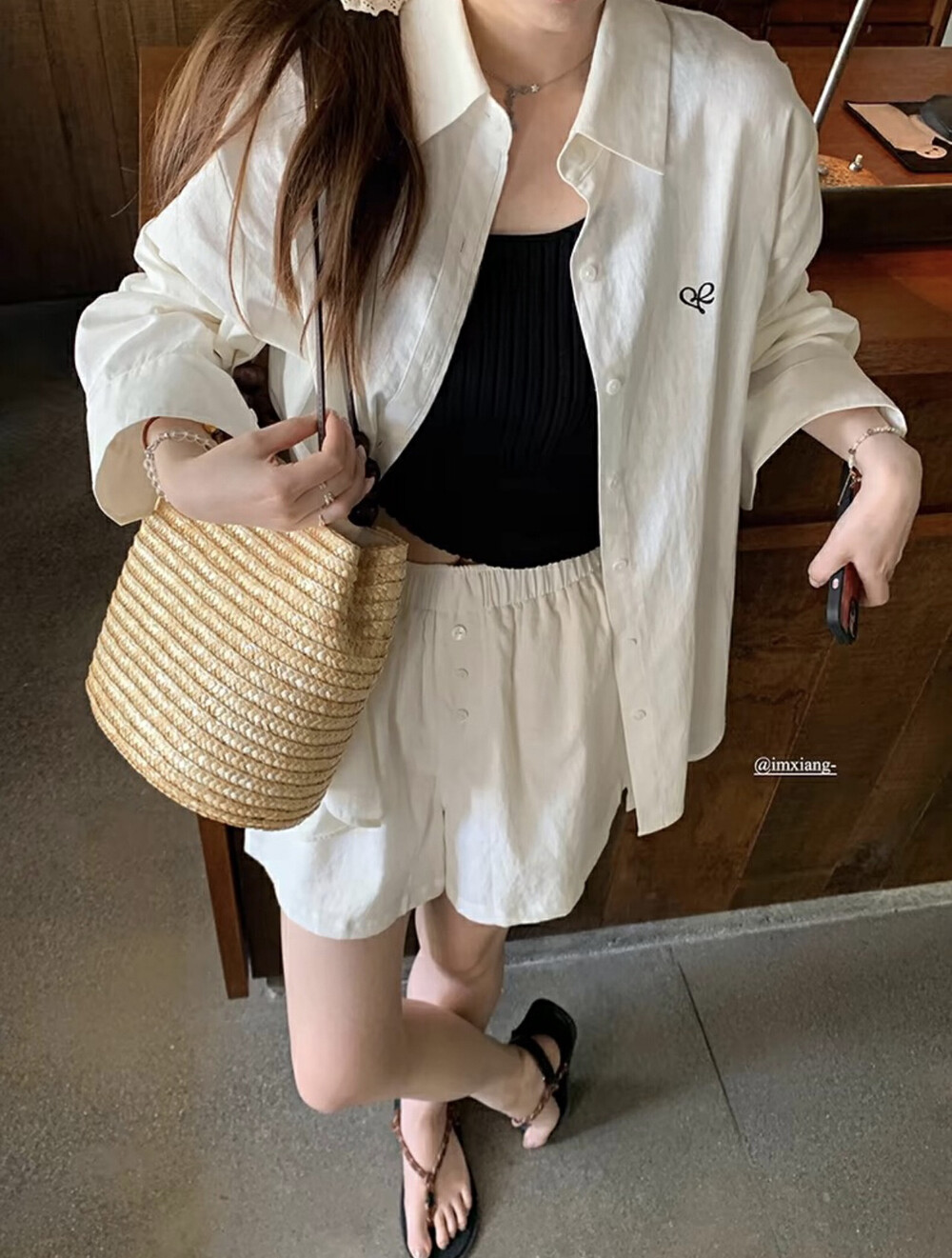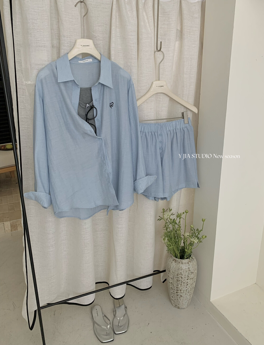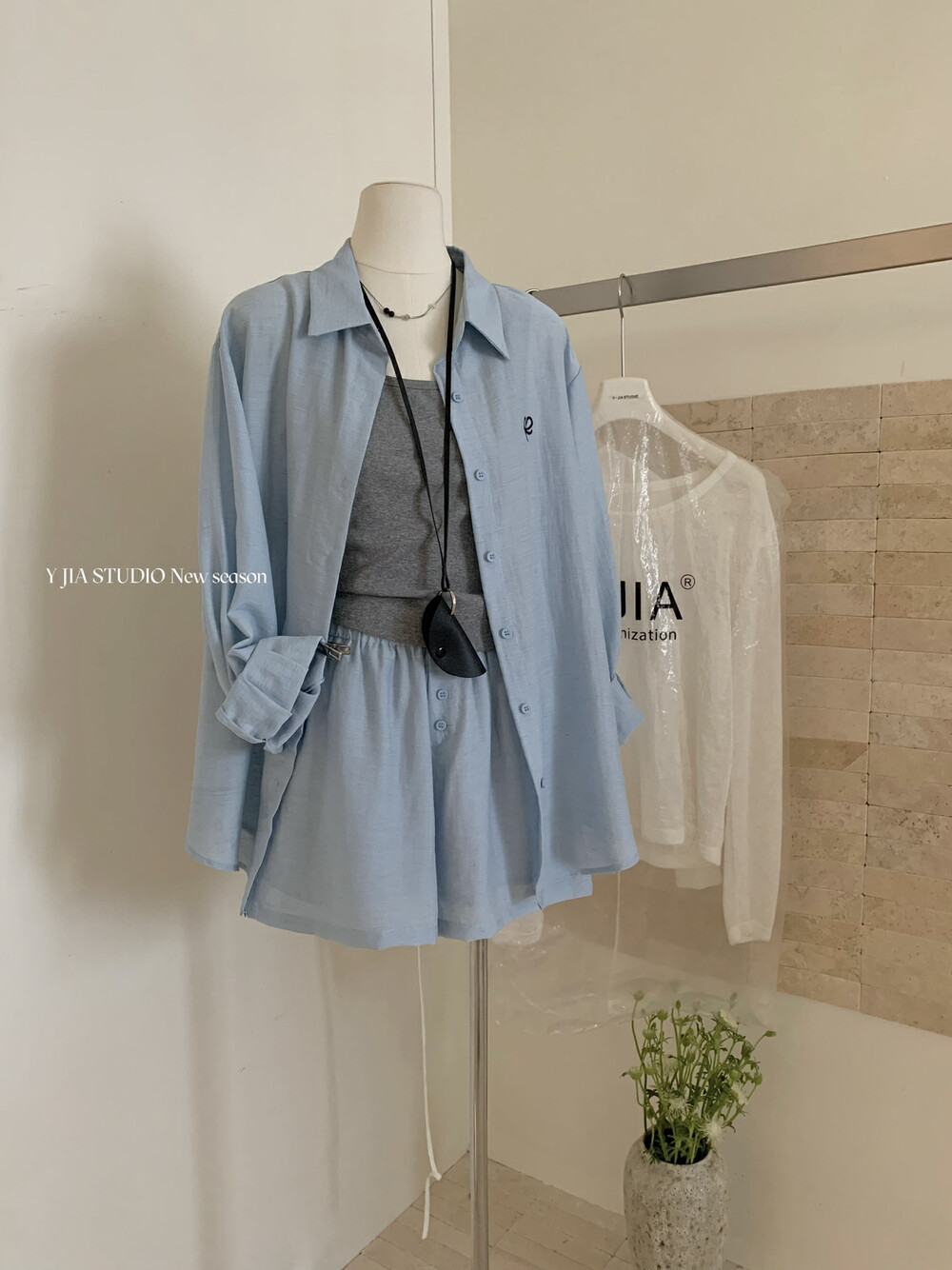 【GZ】无忧购老钱风亚麻刺绣图案宽松百搭衬衫+显瘦背心+松紧腰慵懒休闲短裤套装 7888-5#(截单后7天发货)