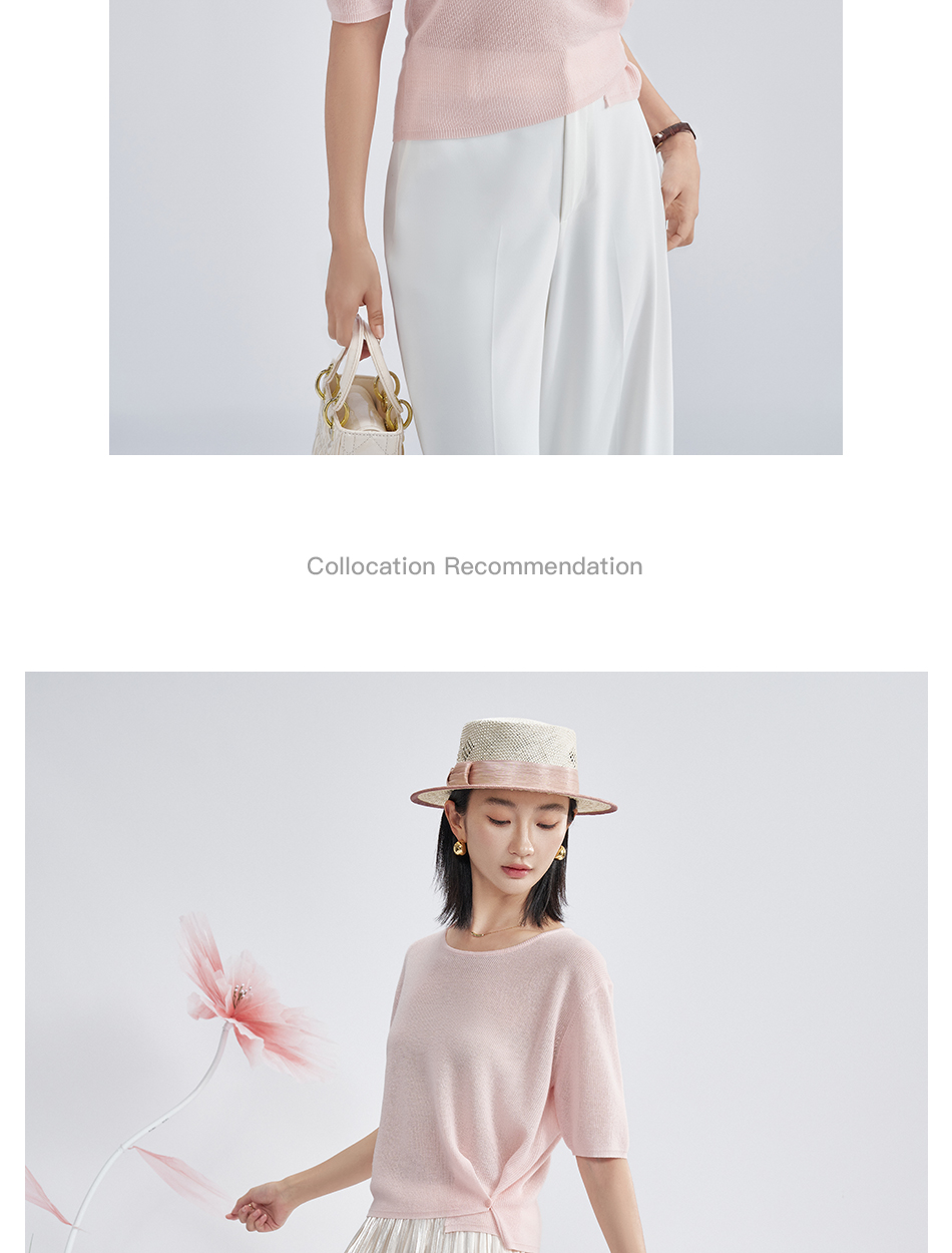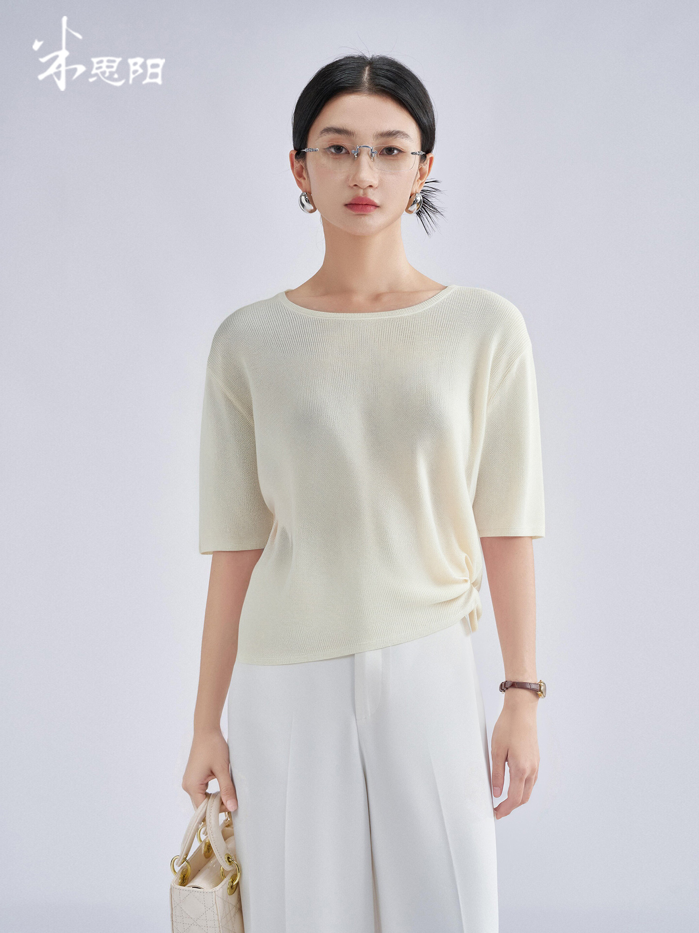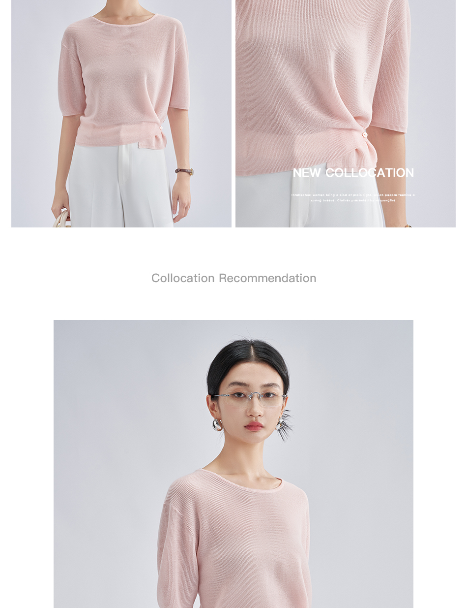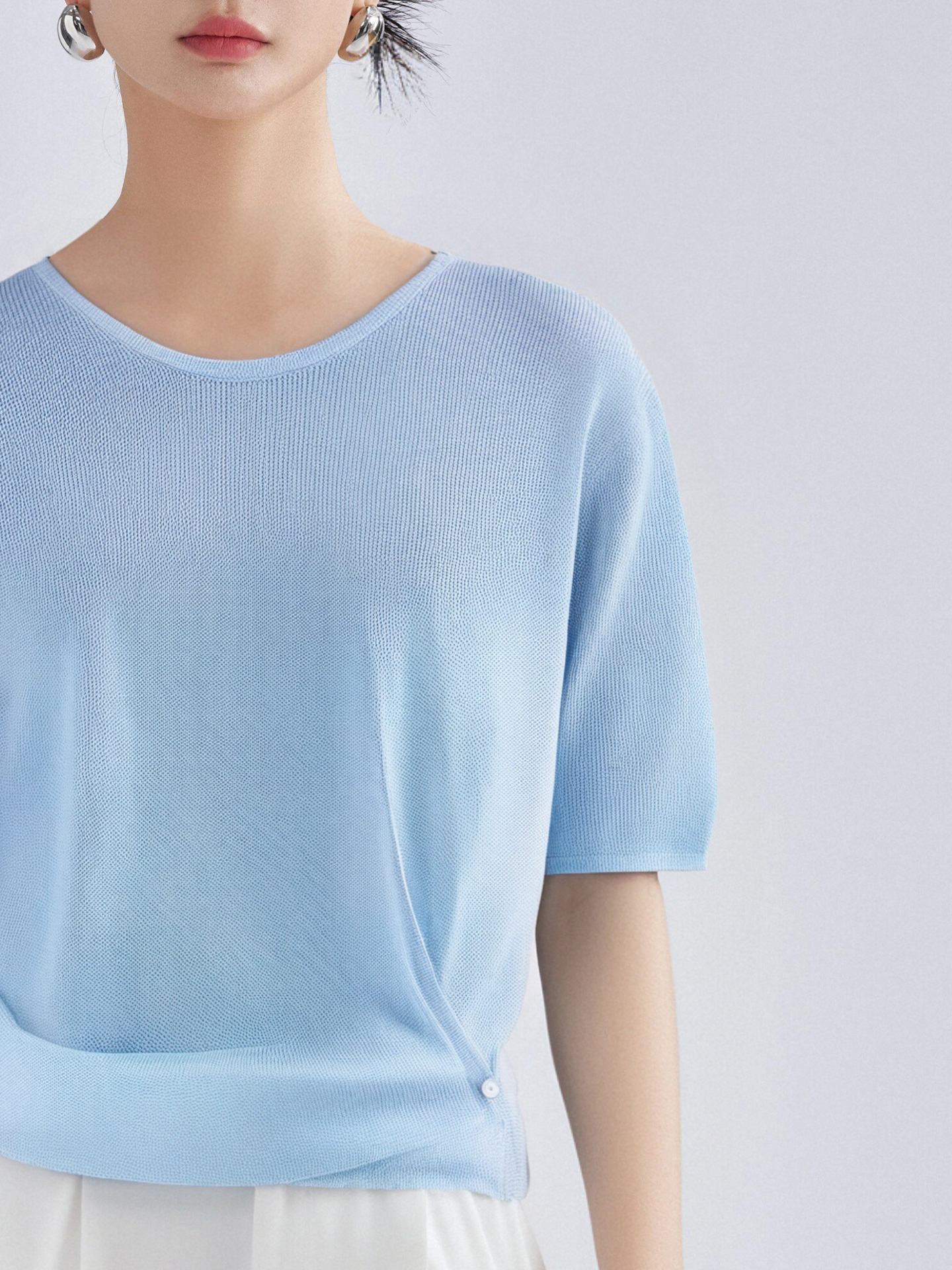 松弛感轻盈微透云柔衫 米思阳2025夏季新款不对称结构设计针织T恤3204