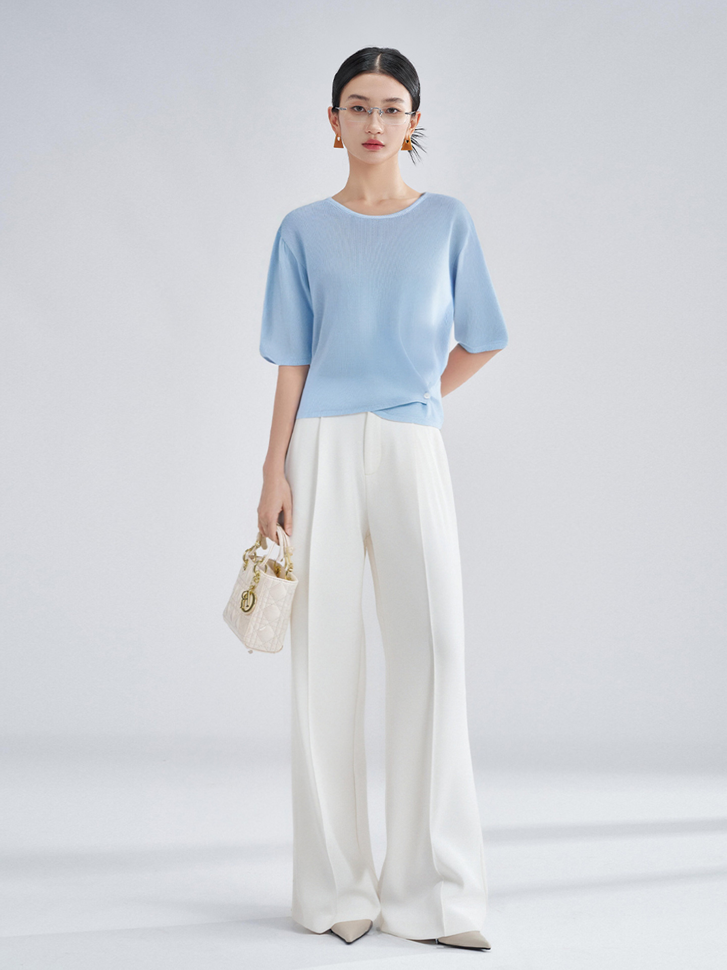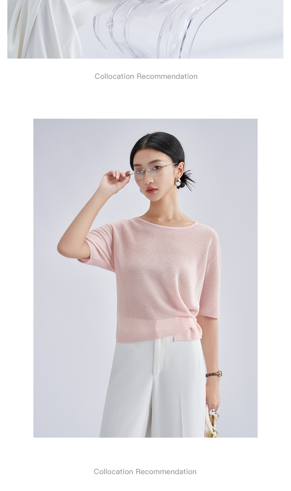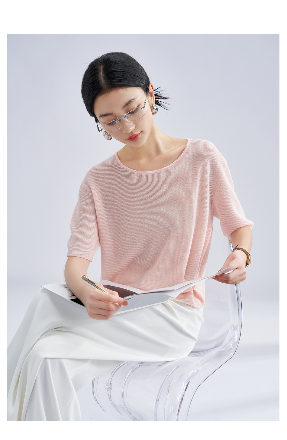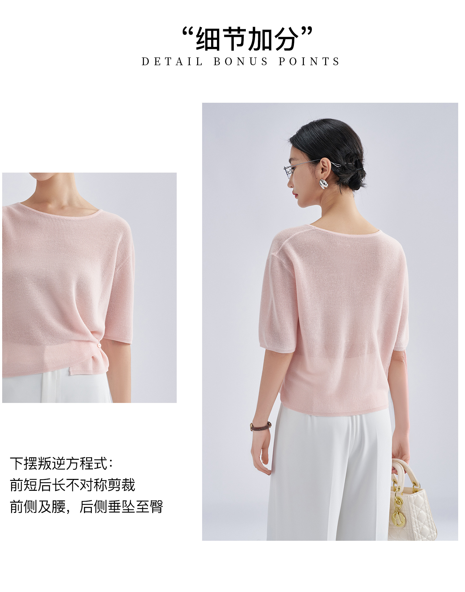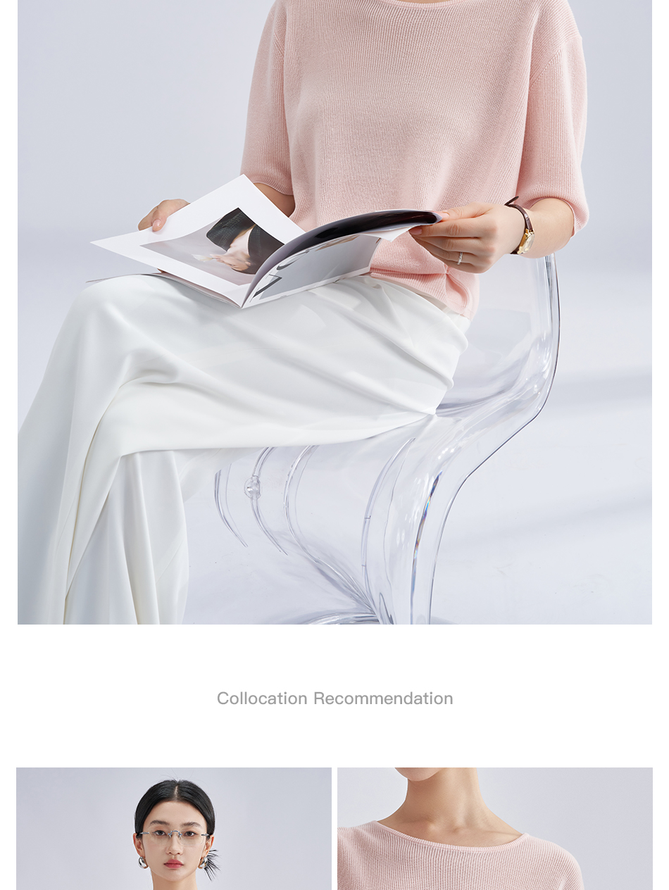 松弛感轻盈微透云柔衫 米思阳2025夏季新款不对称结构设计针织T恤3204