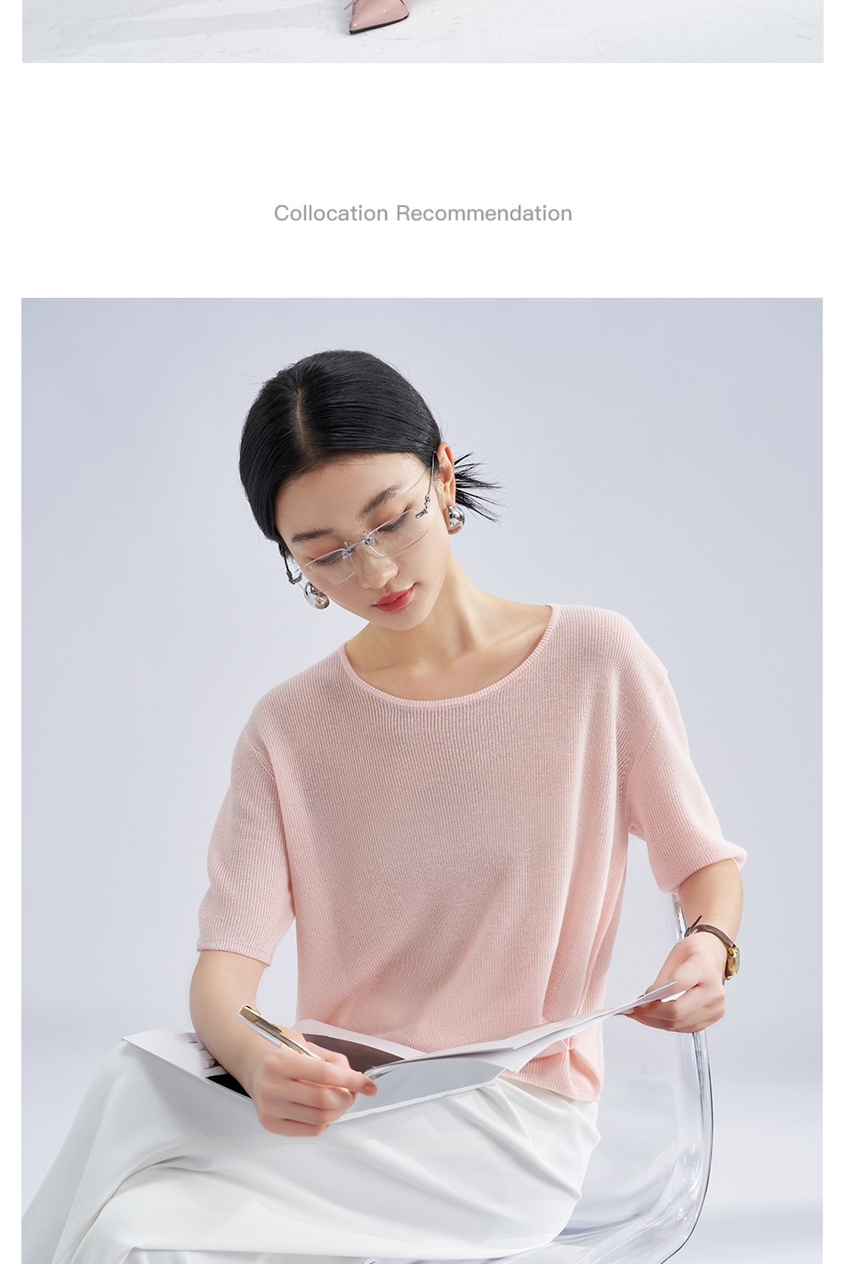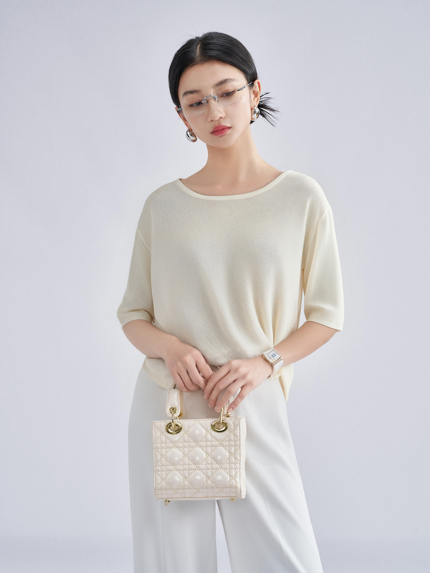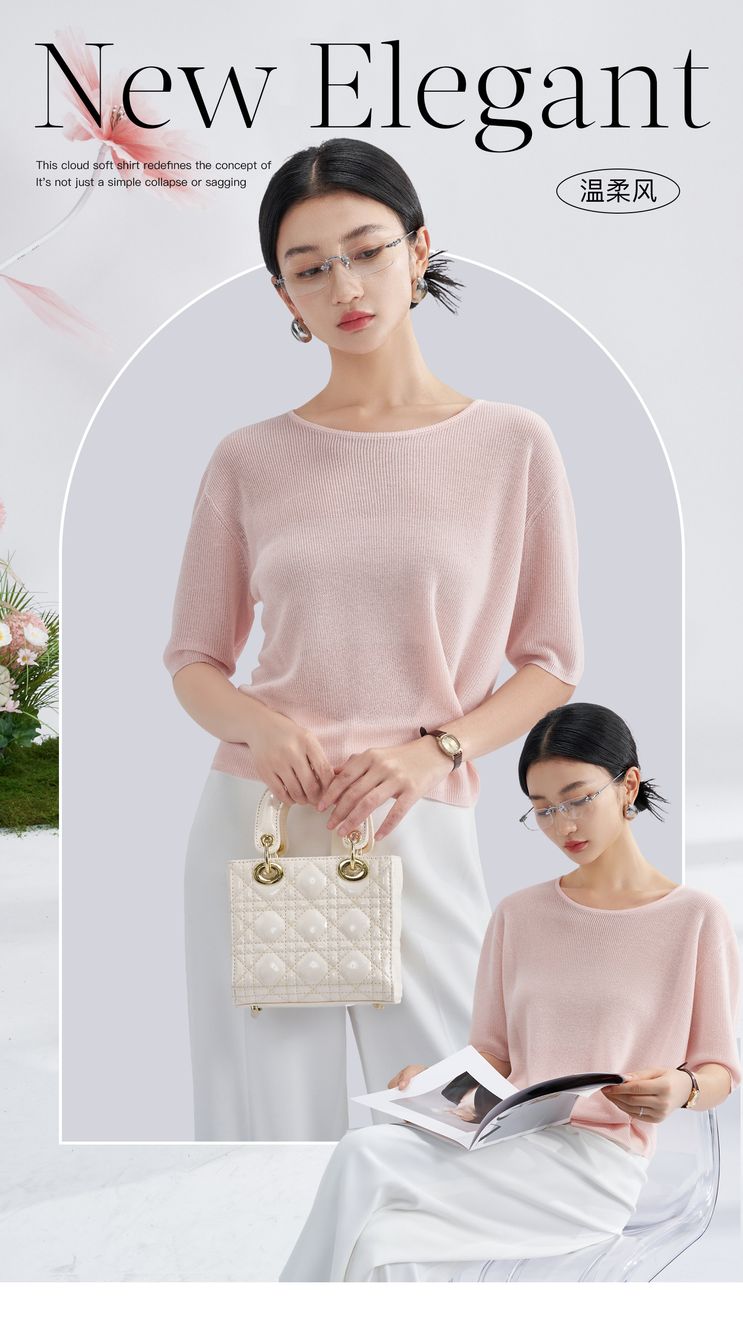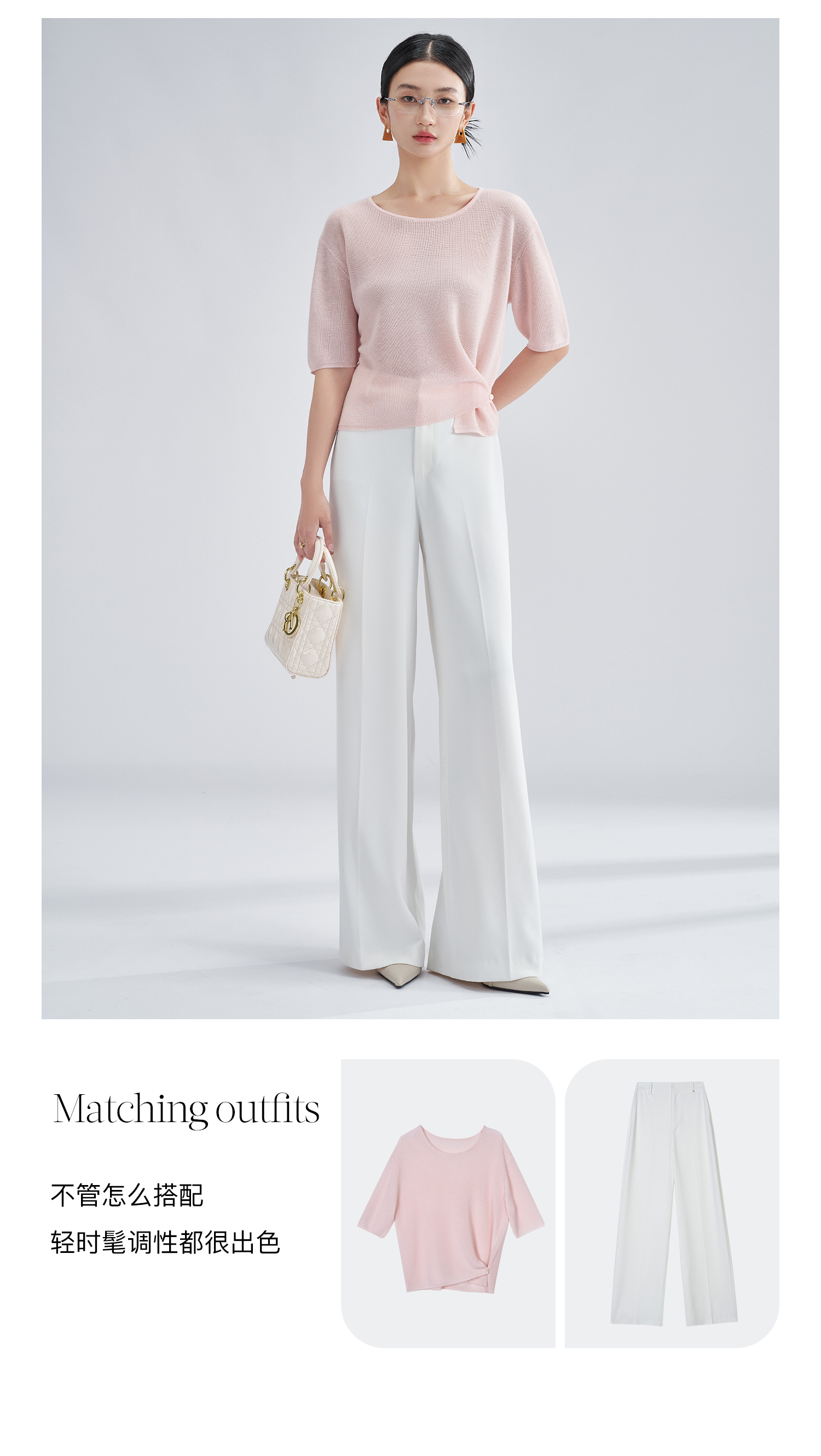 松弛感轻盈微透云柔衫 米思阳2025夏季新款不对称结构设计针织T恤3204