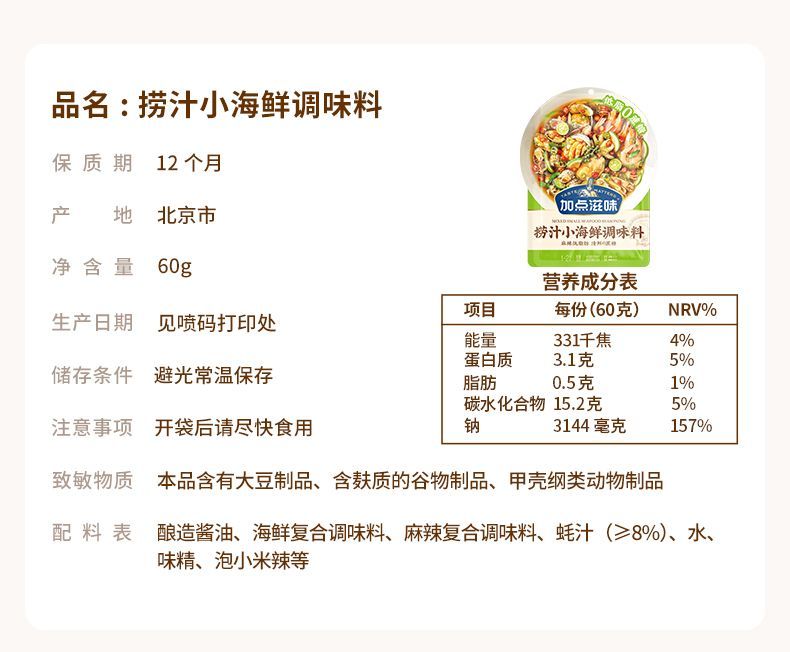 加点滋味 捞汁小海鲜 调味料 60g/袋