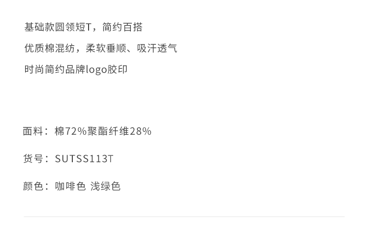 callisto浅绿优质棉混纺基础圆领短T