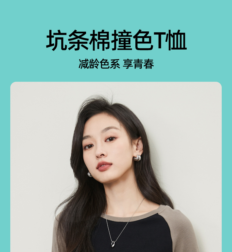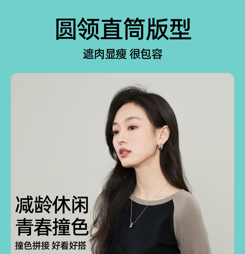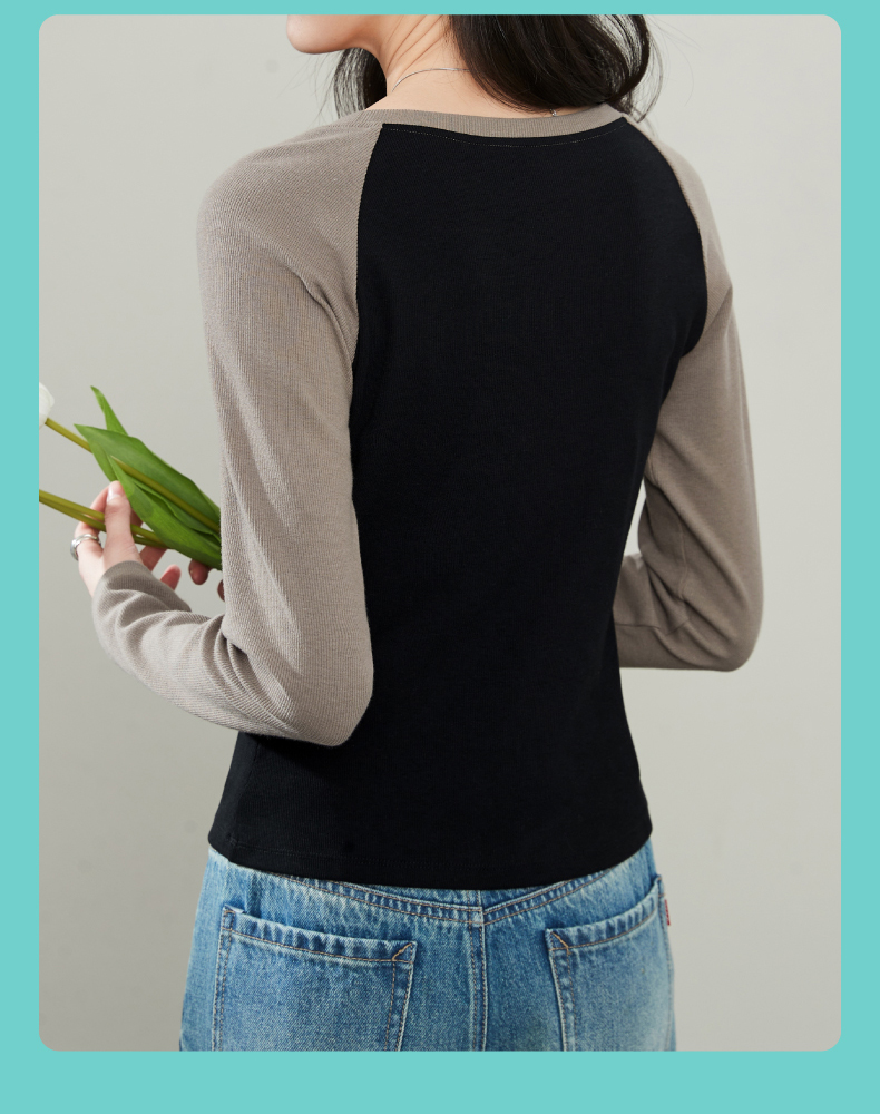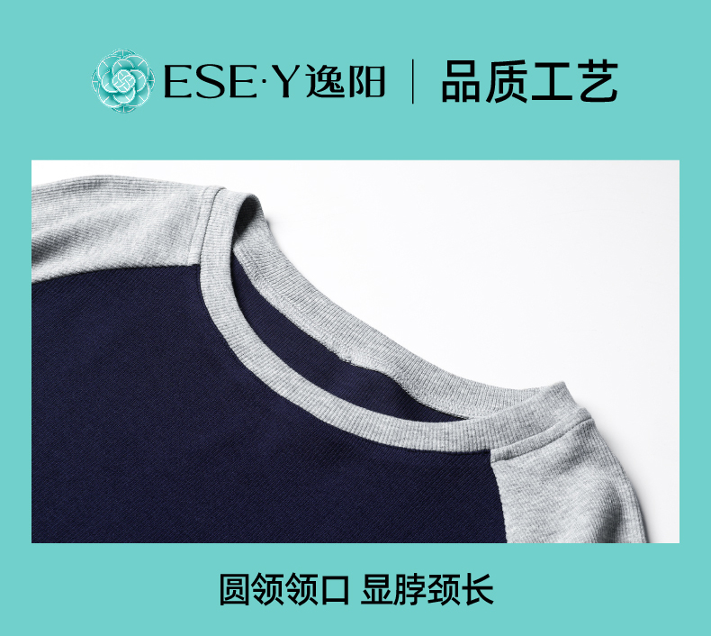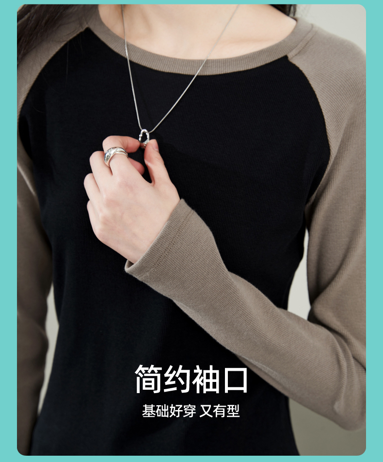 【断码!超值捡漏】逸阳秋款长袖t恤圆领插肩撞色拼接修身显瘦打底衫3658