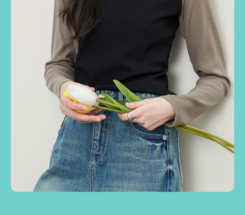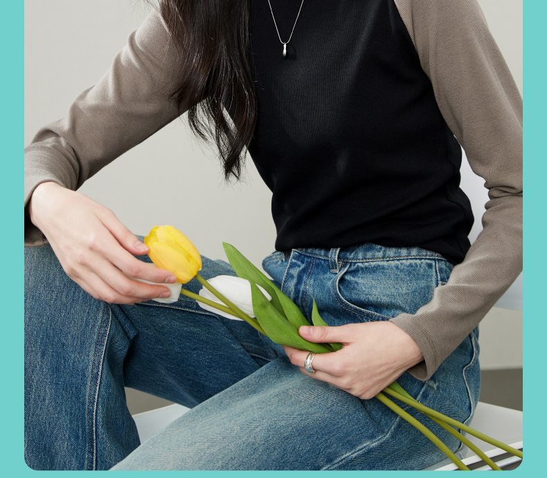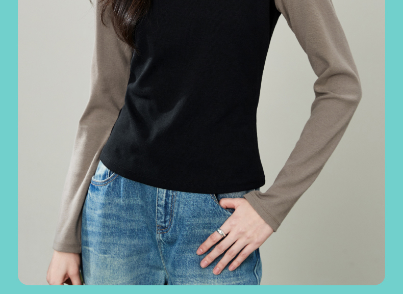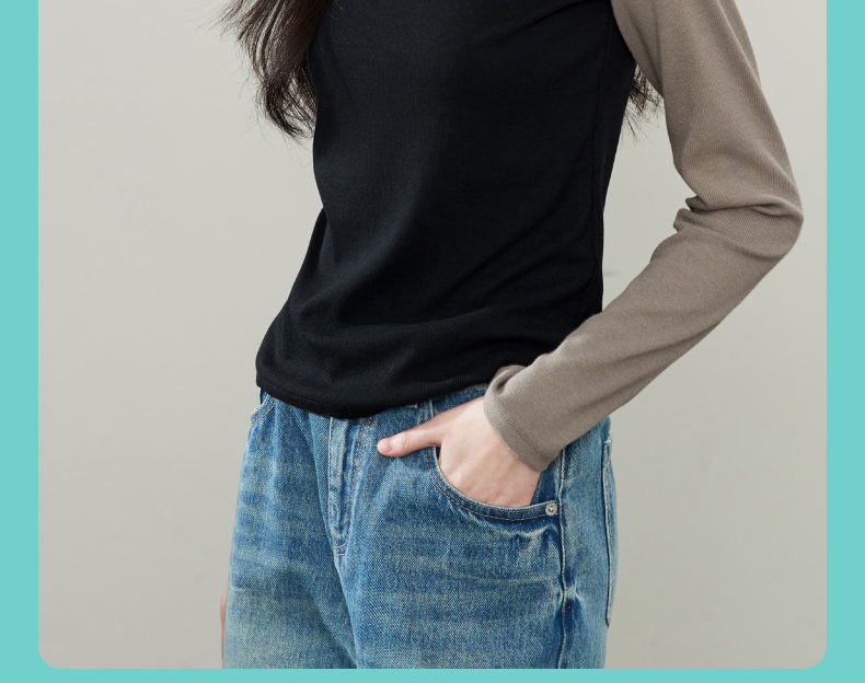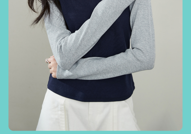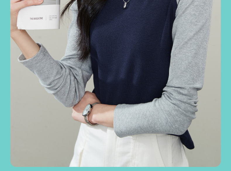 【断码!超值捡漏】逸阳秋款长袖t恤圆领插肩撞色拼接修身显瘦打底衫3658