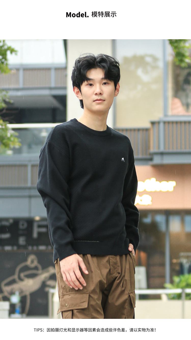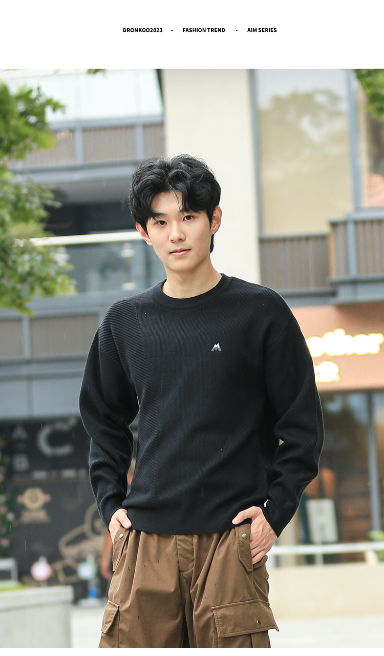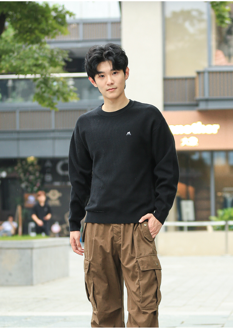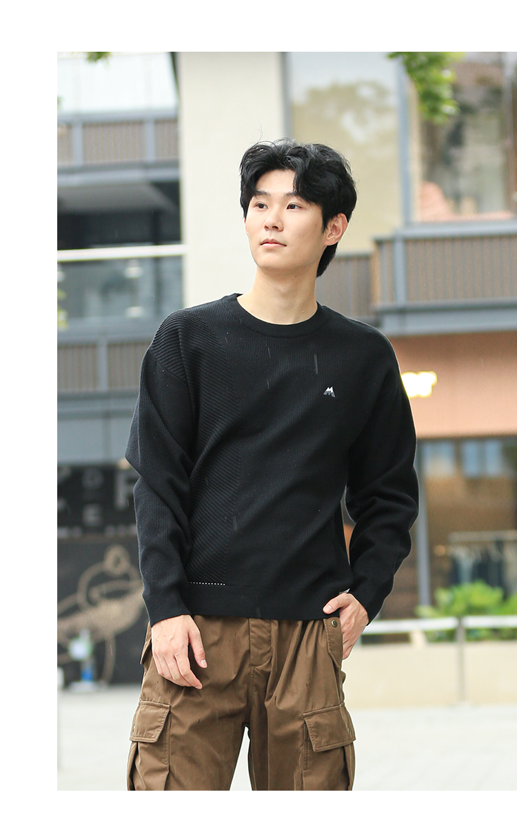 DRONKOO 2024 圆领左胸山峰刺绣两种针法长袖中厚毛衣