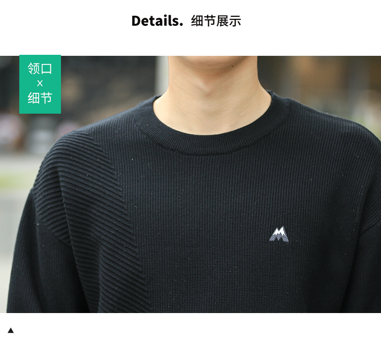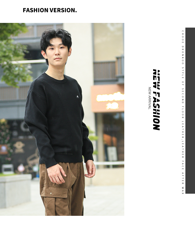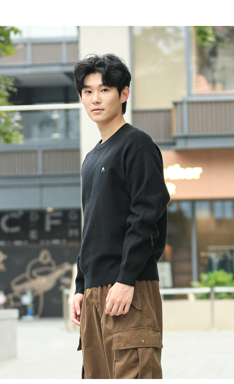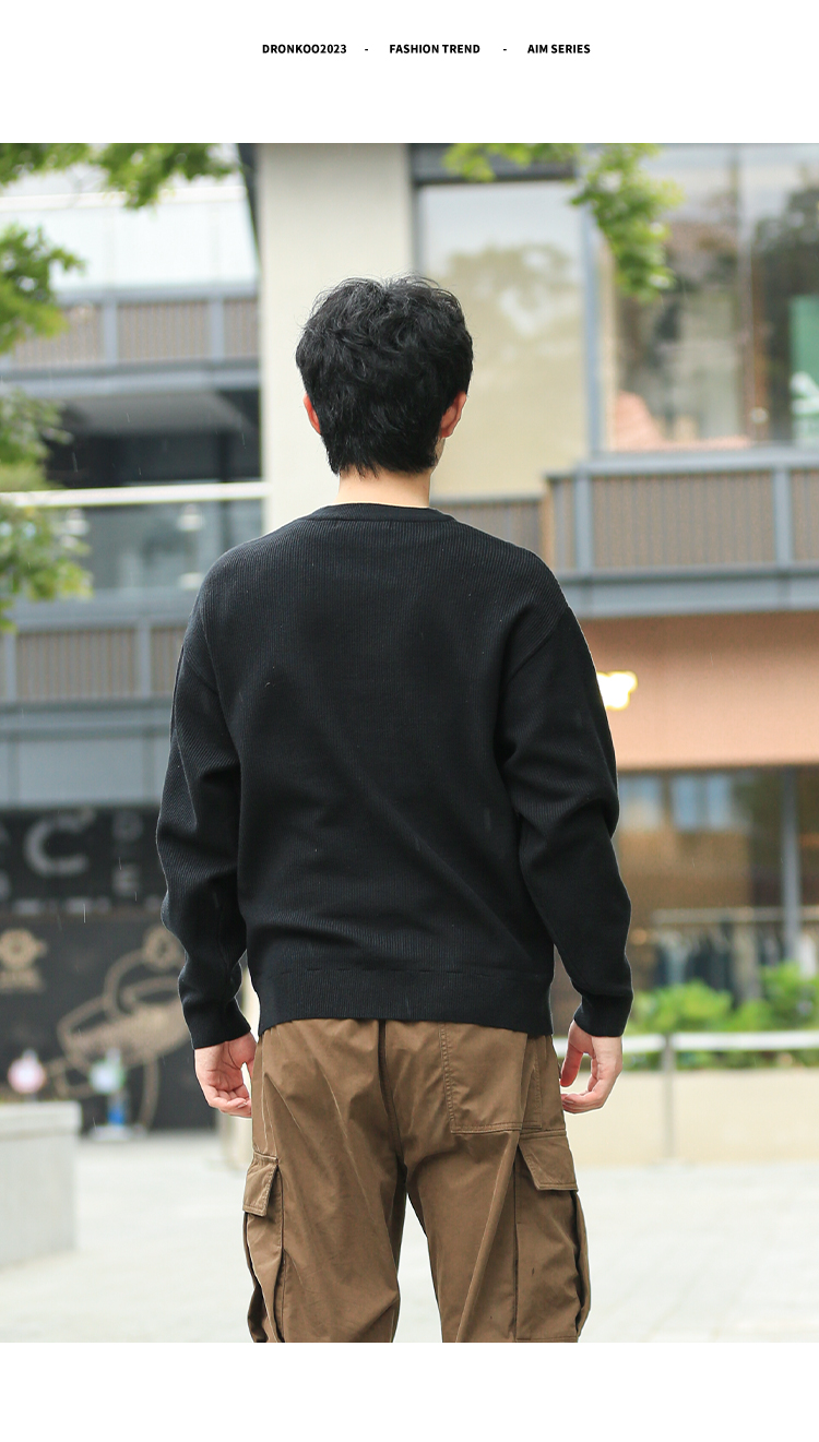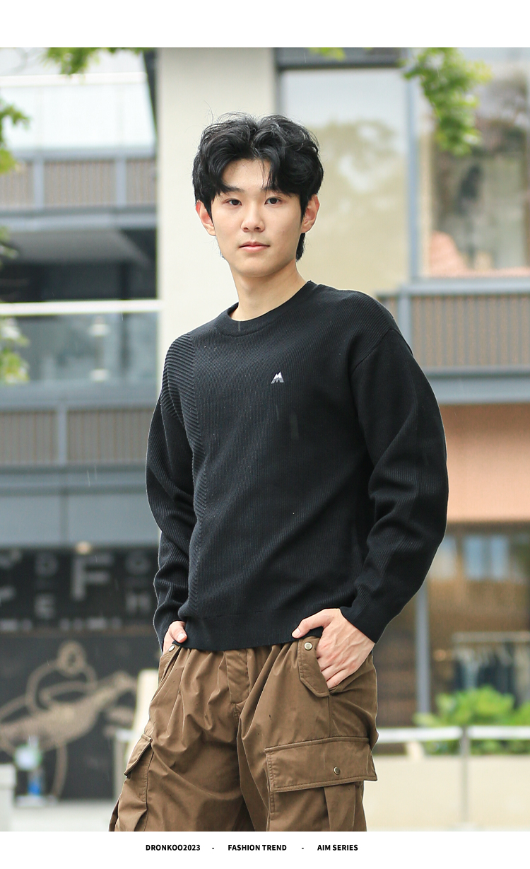 DRONKOO 2024 圆领左胸山峰刺绣两种针法长袖中厚毛衣