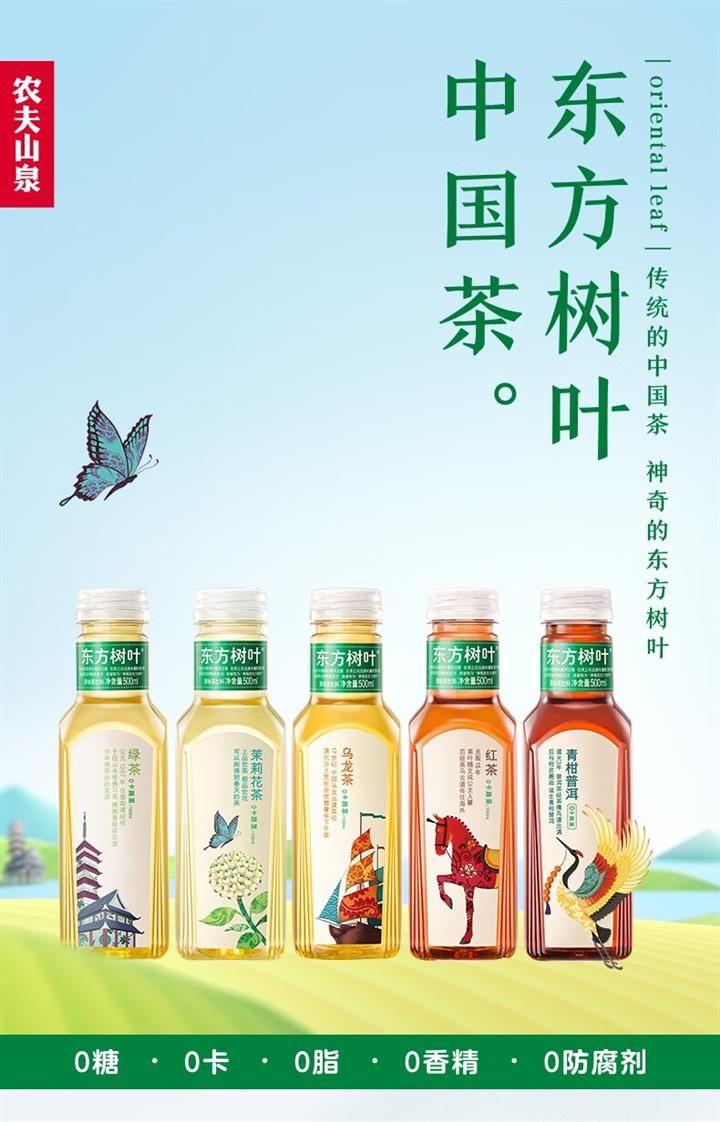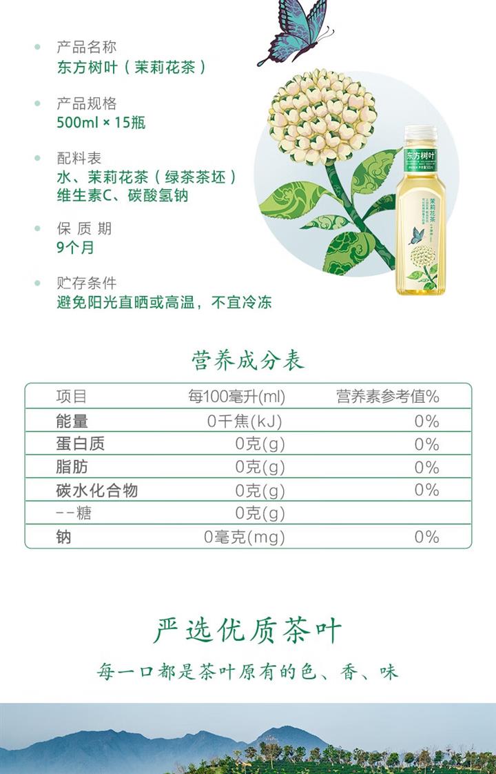 农夫山泉 东方树叶茉莉花茶500ml*15瓶 0糖0脂0卡无糖茶饮料 整箱装
