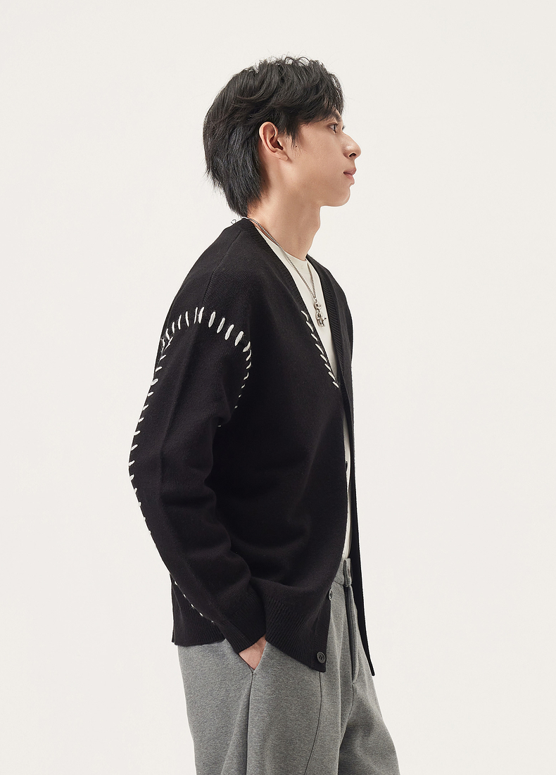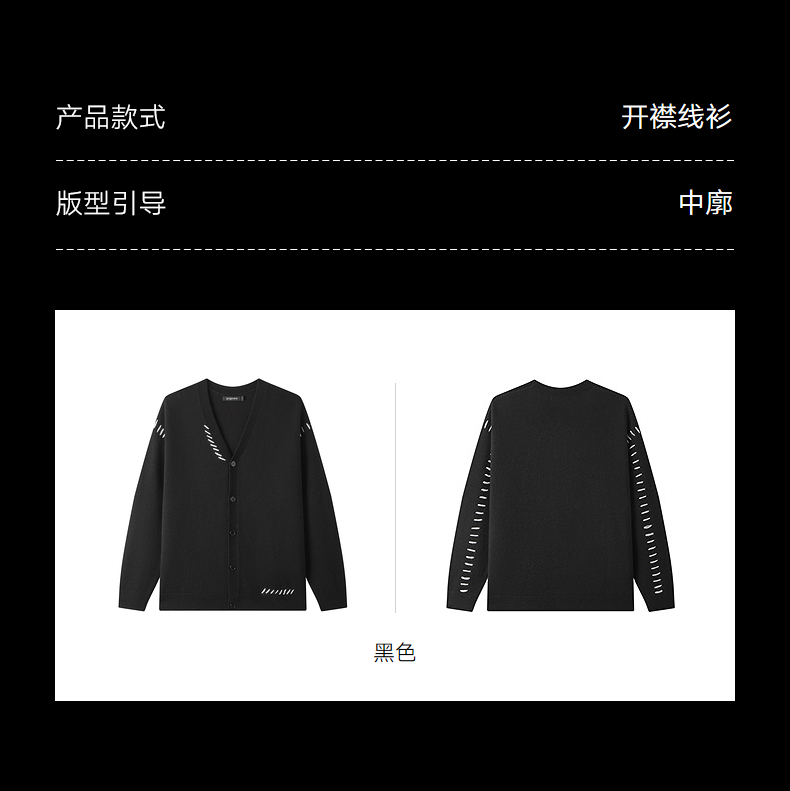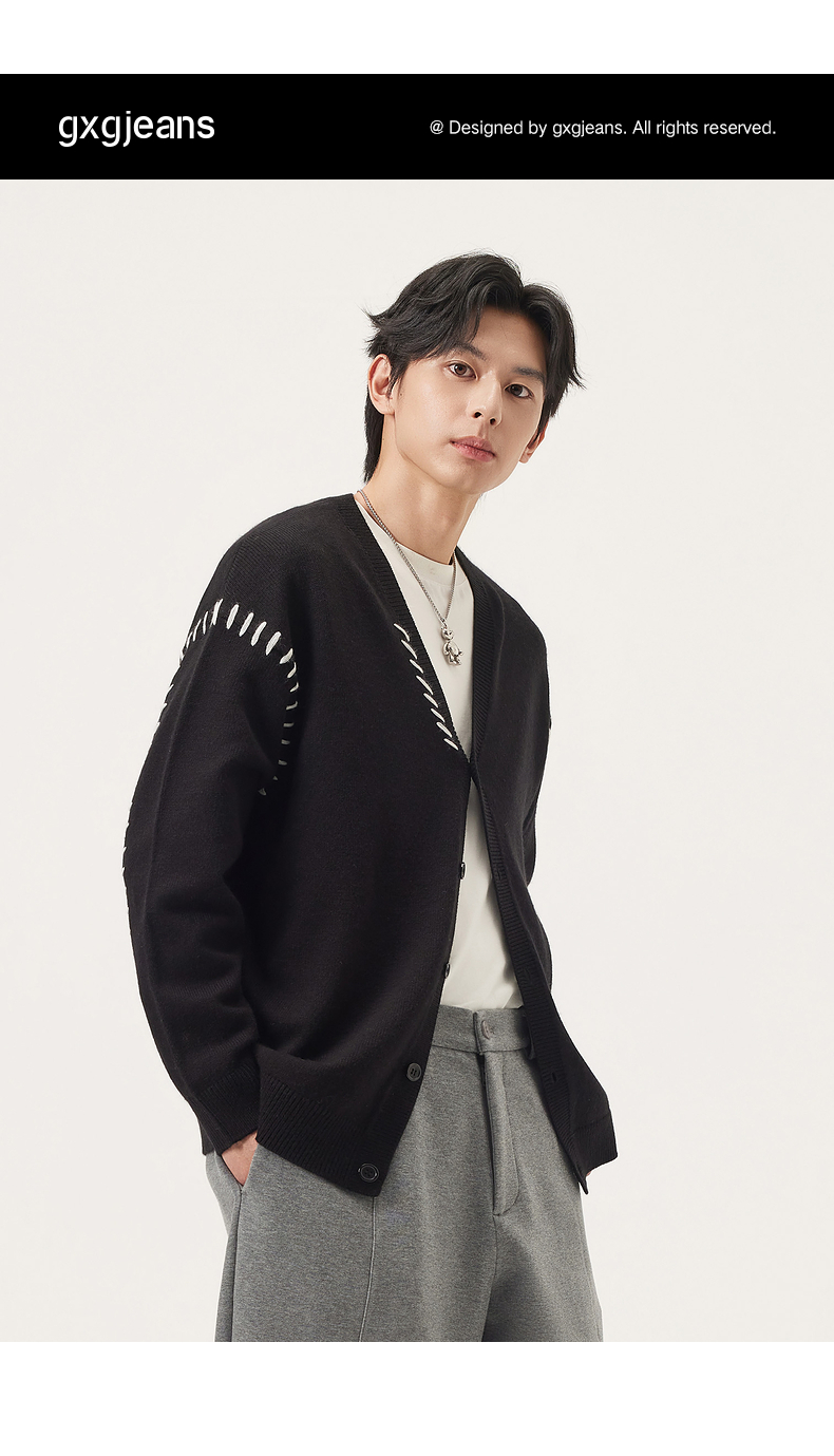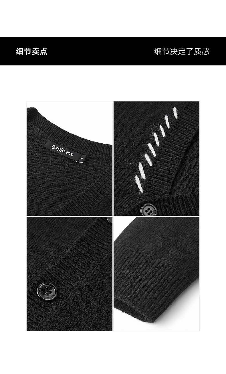 gxg.jeans男装 黑色撞色宽松休闲保暖针织衫开衫外套男25年秋热卖