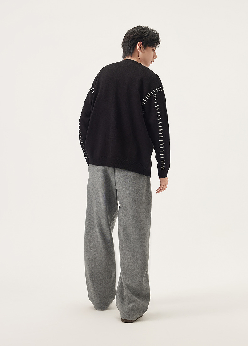 GXG男装 双色字母提花毛衫宽松针织衫男低领打底衫 2024秋季热卖