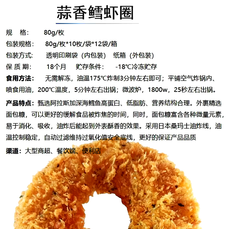 美佳蒜香鳕虾圈800g速冻海苔鱼虾肉饼半成品早餐饼 日式小吃虾排商用(顺丰发货)