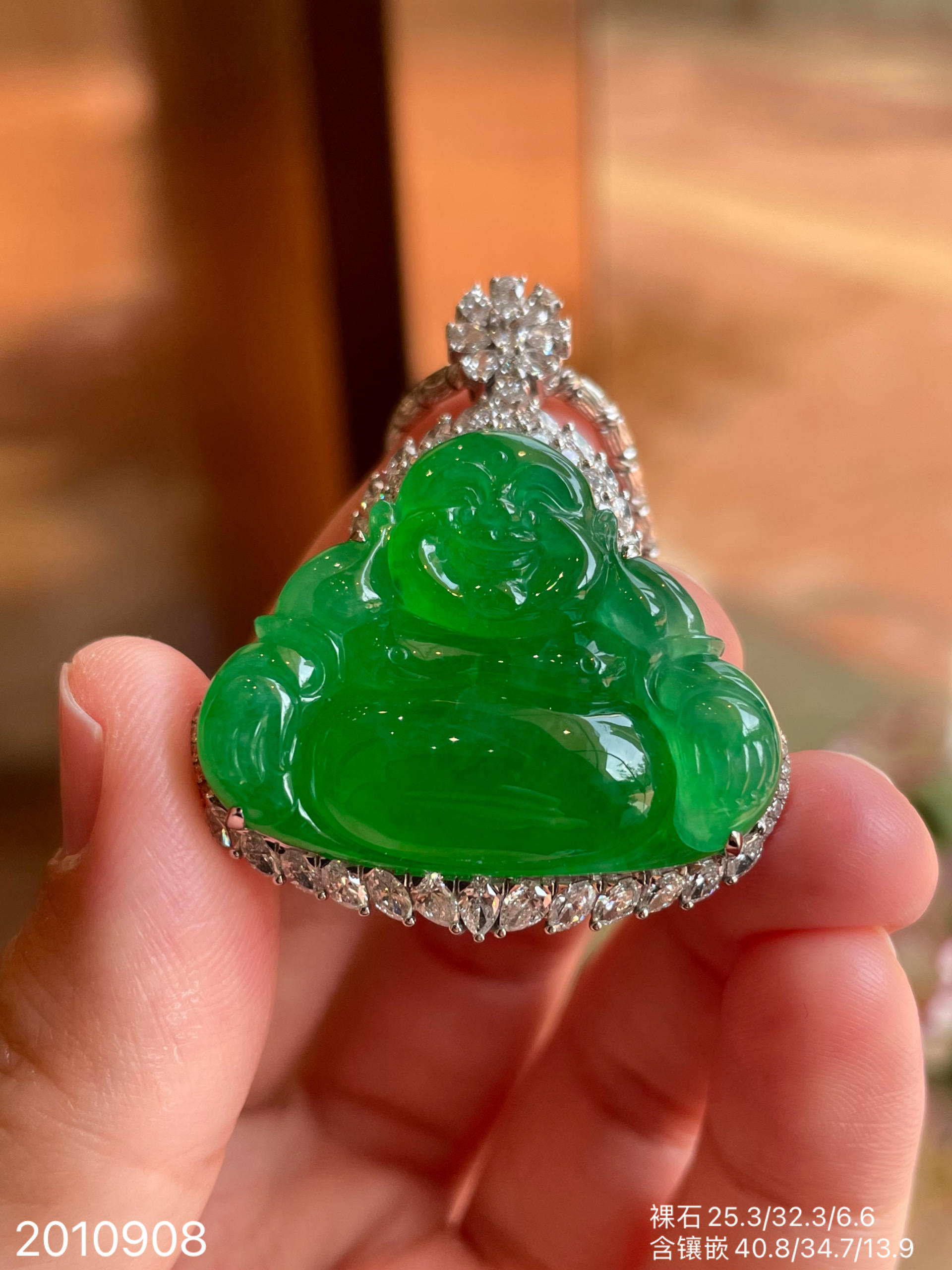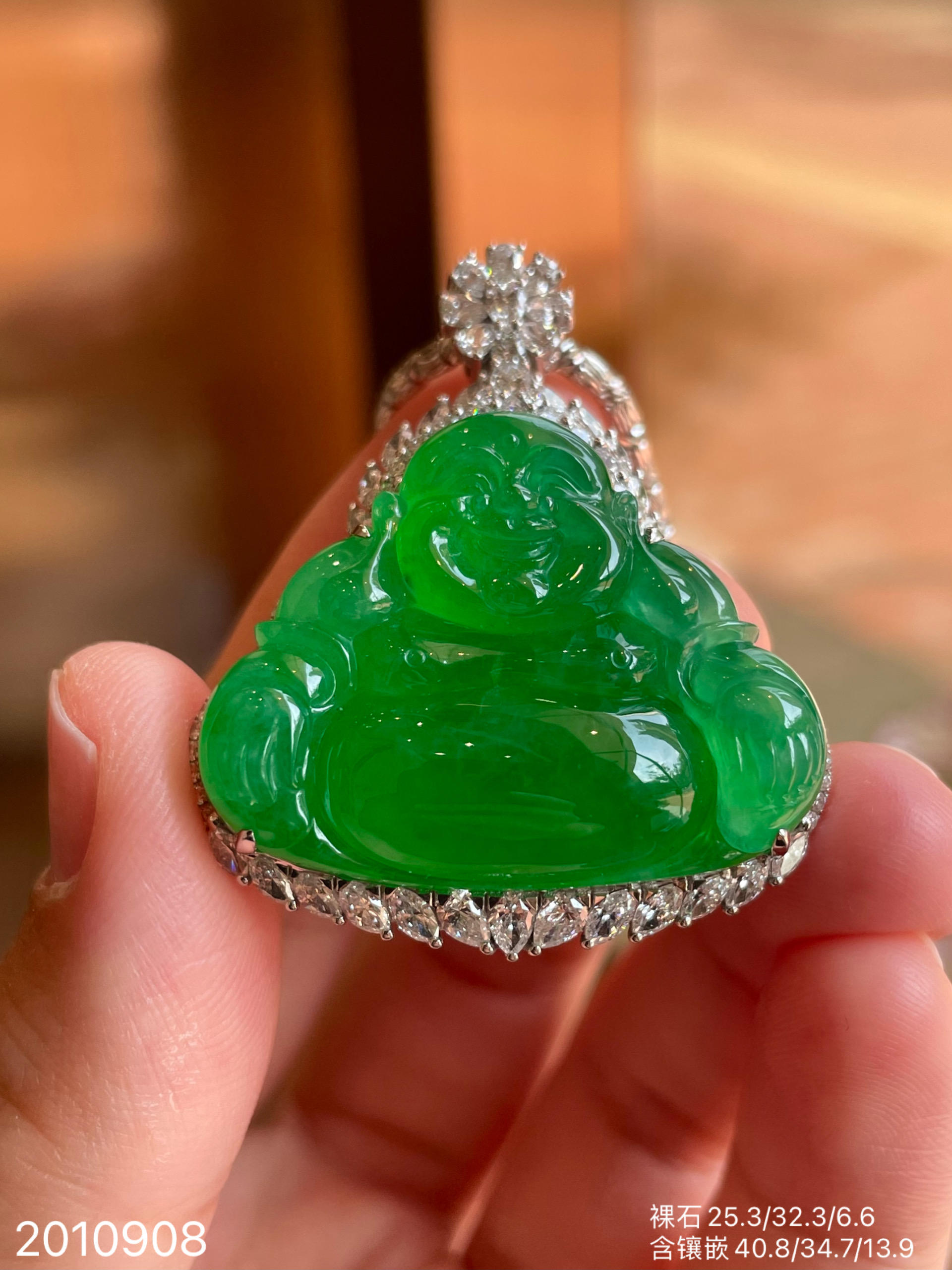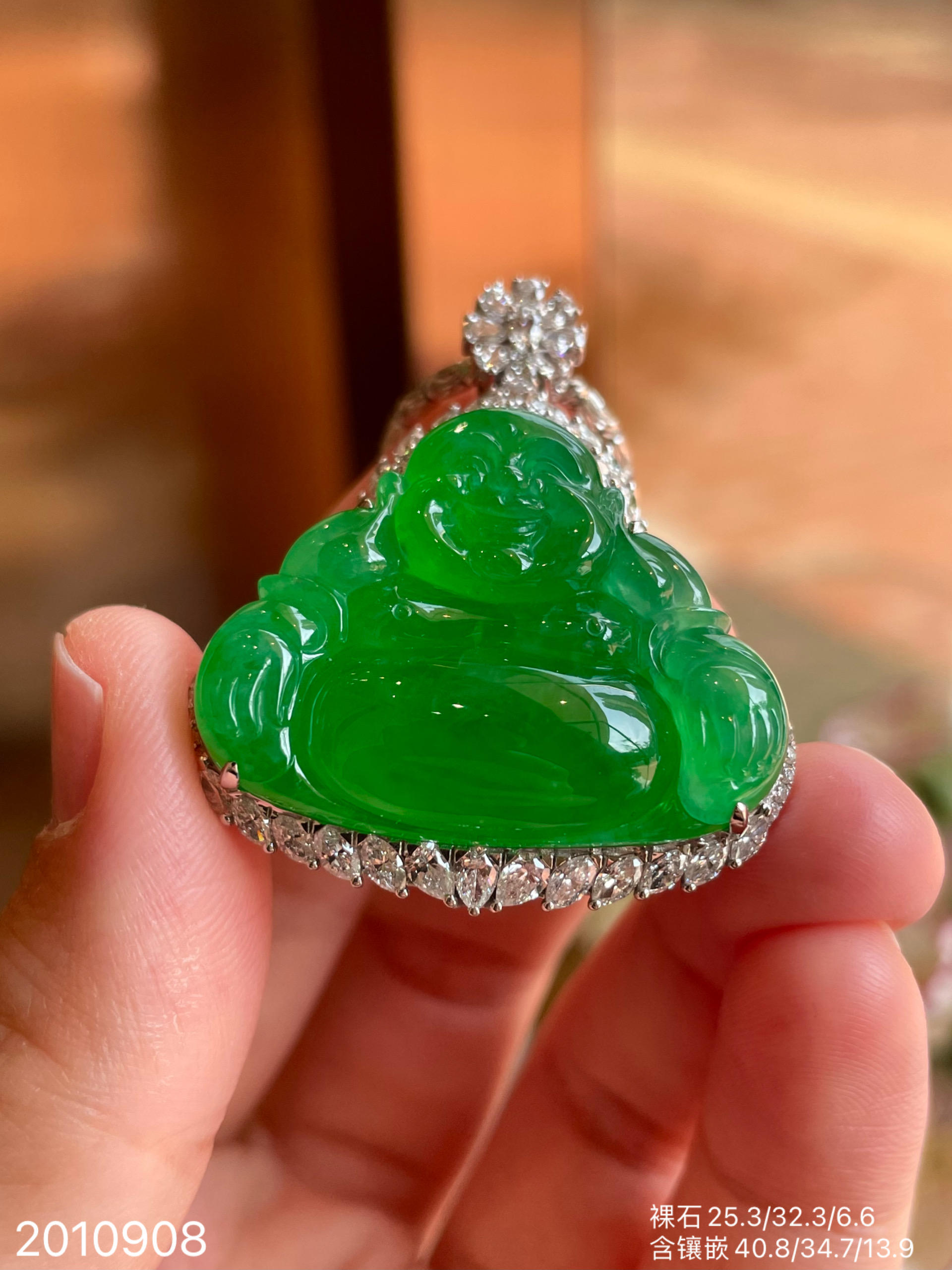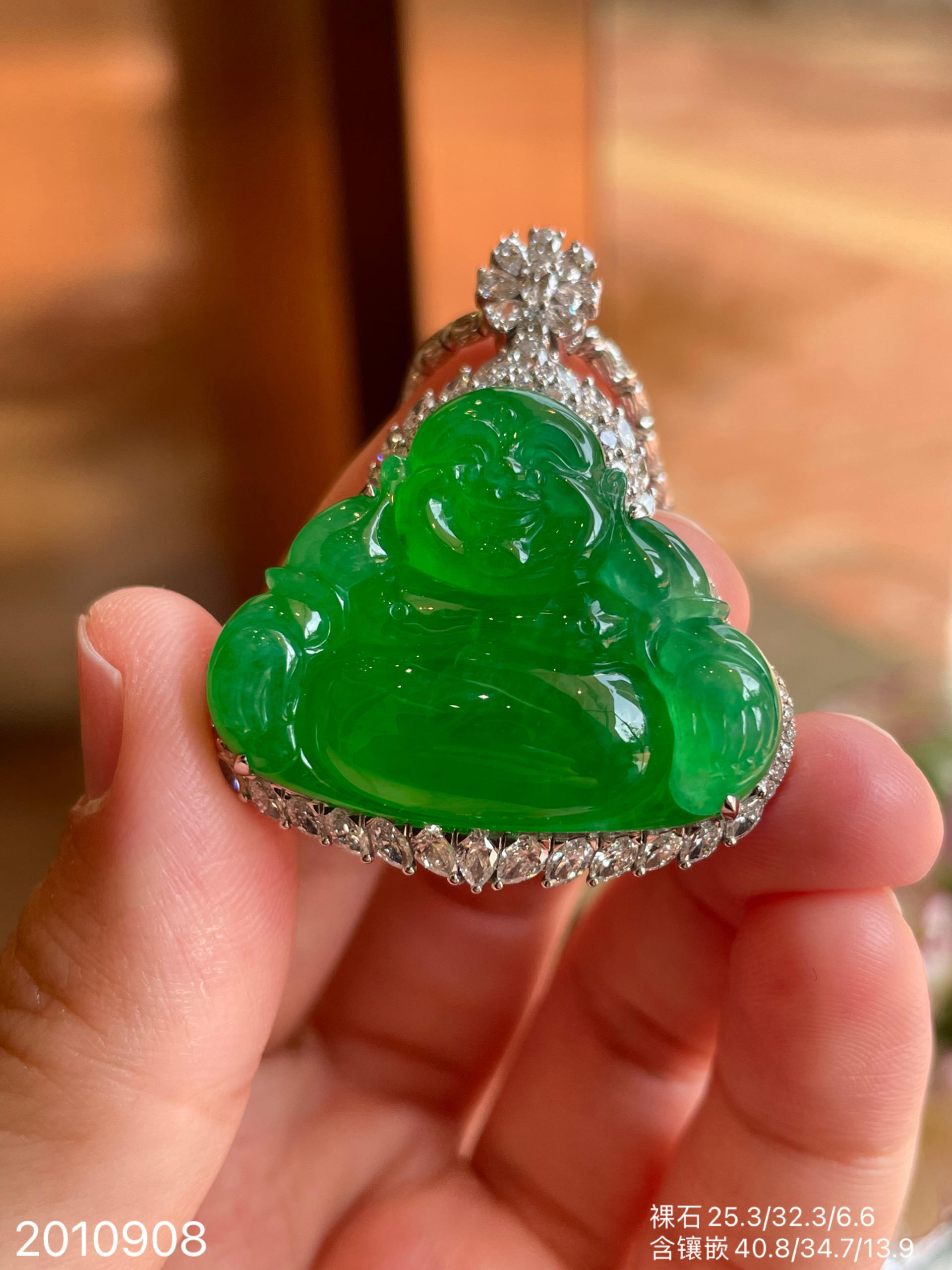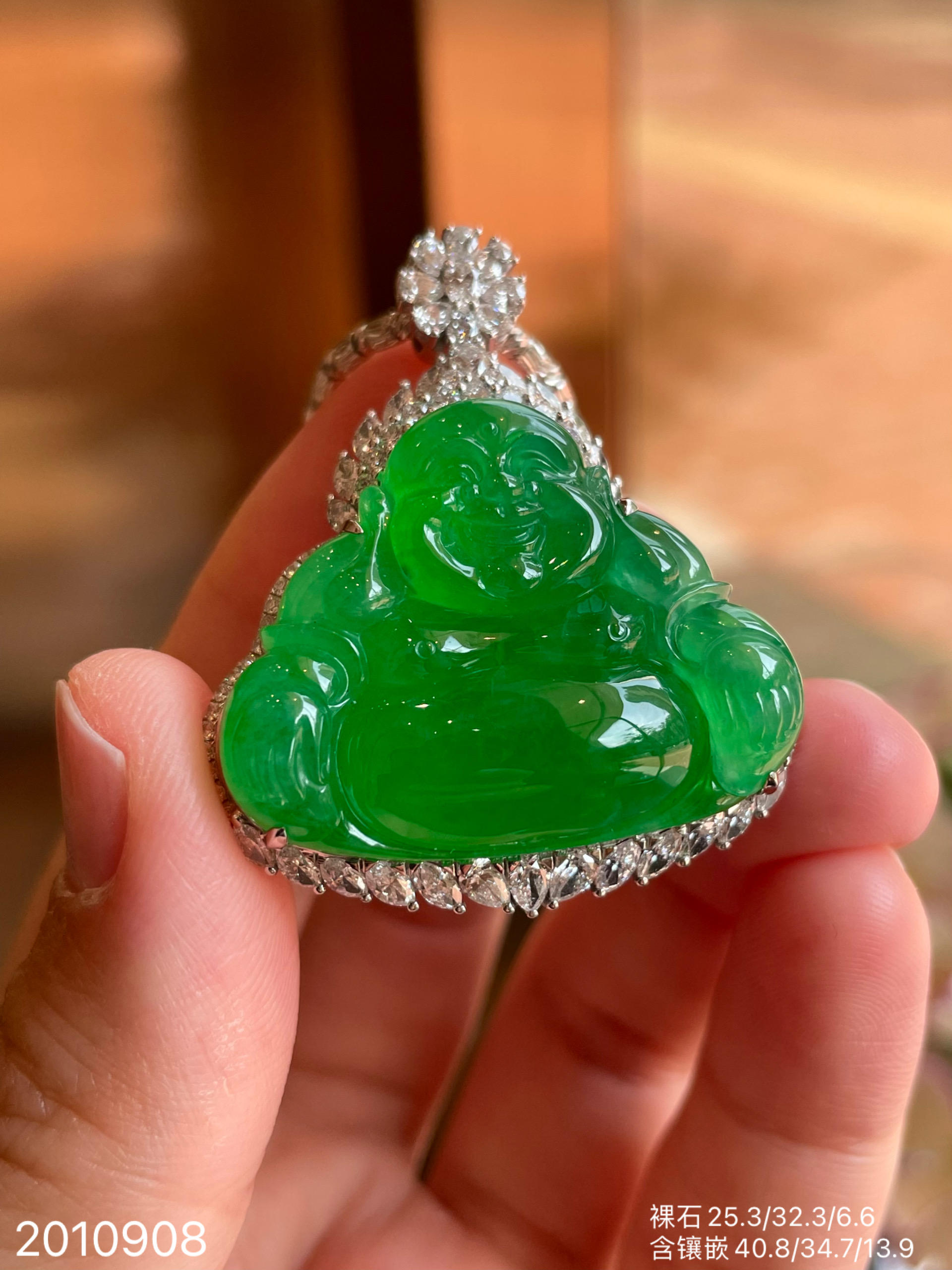 2010908,高冰木纳艳绿佛公吊坠。具体价格微信咨询