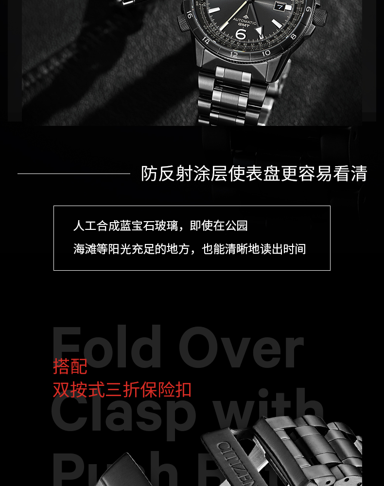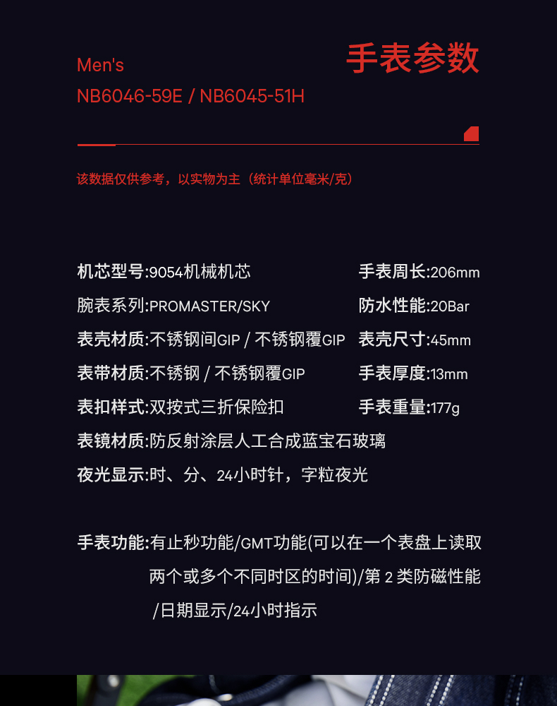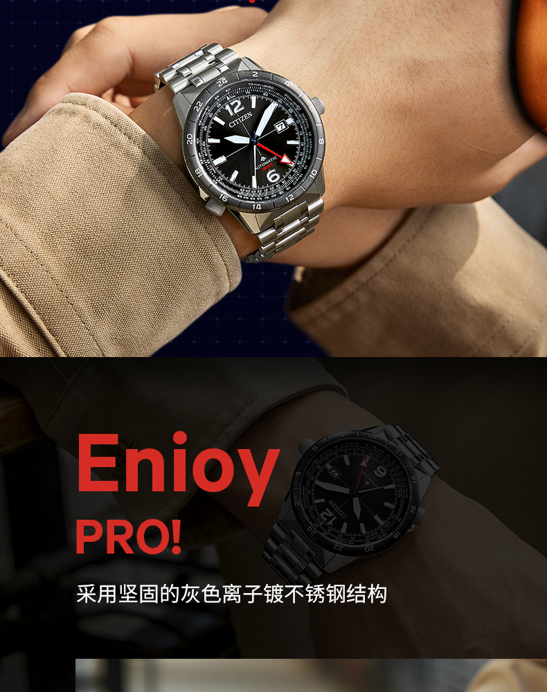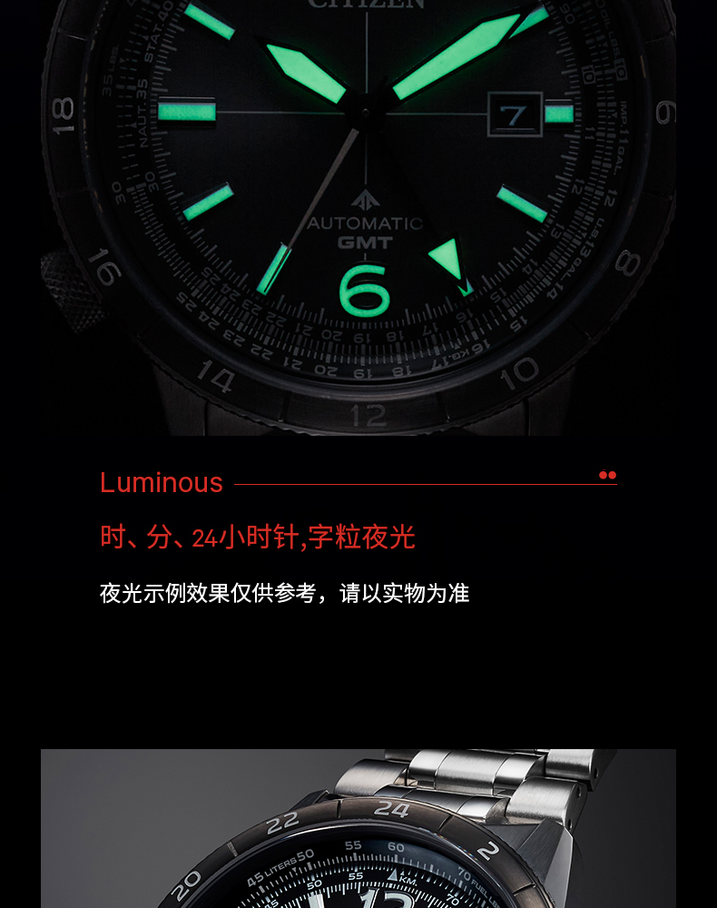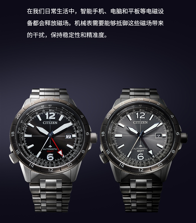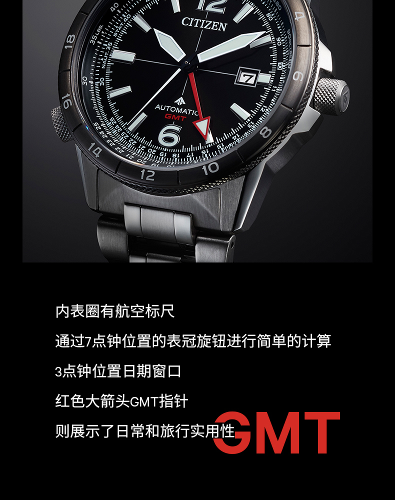 西铁城/CITIZEN PROMASTER系列GMT飞行风自动机械耐磁男士腕表NB6046-59E