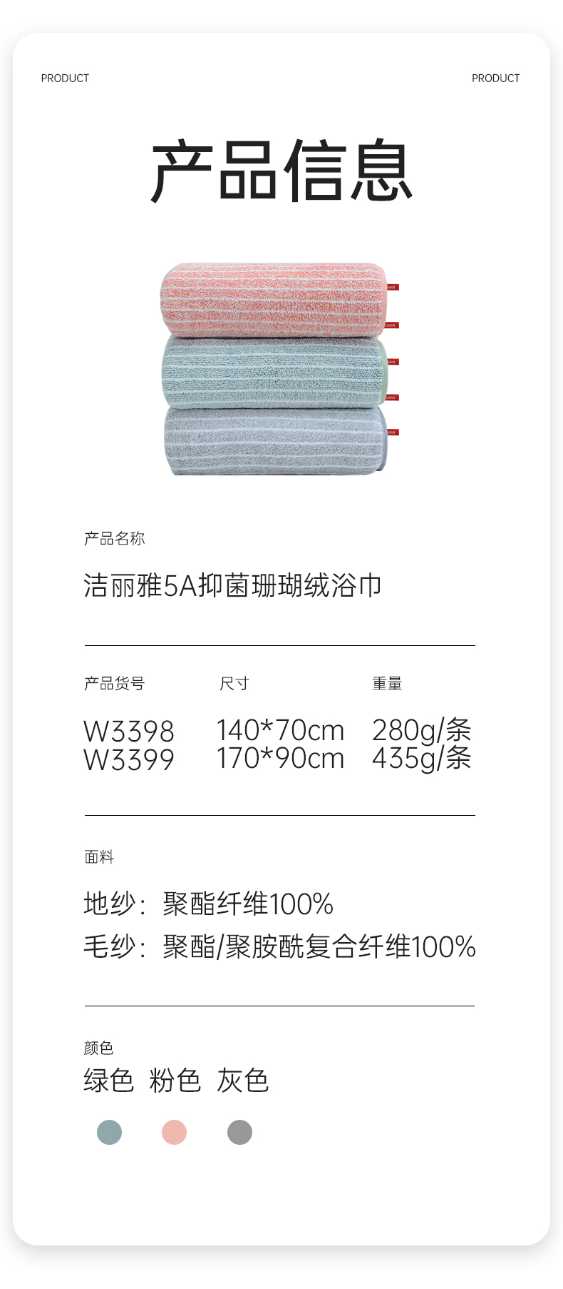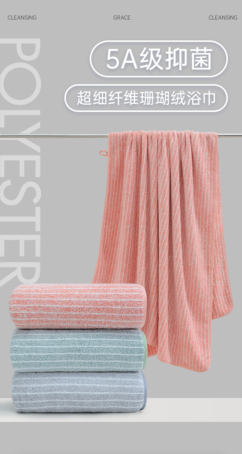 5A级抑菌超细纤维珊瑚绒浴巾,加大超吸水,85度不掉色 抑菌无异味