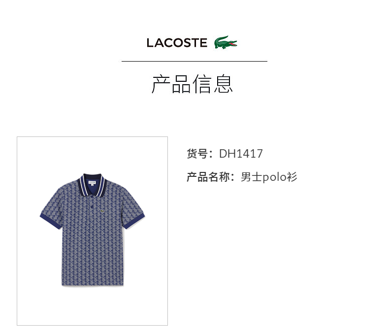 【海南专供价】Lacoste法国鳄鱼男士新款印花短袖POLO衫DH1417-10