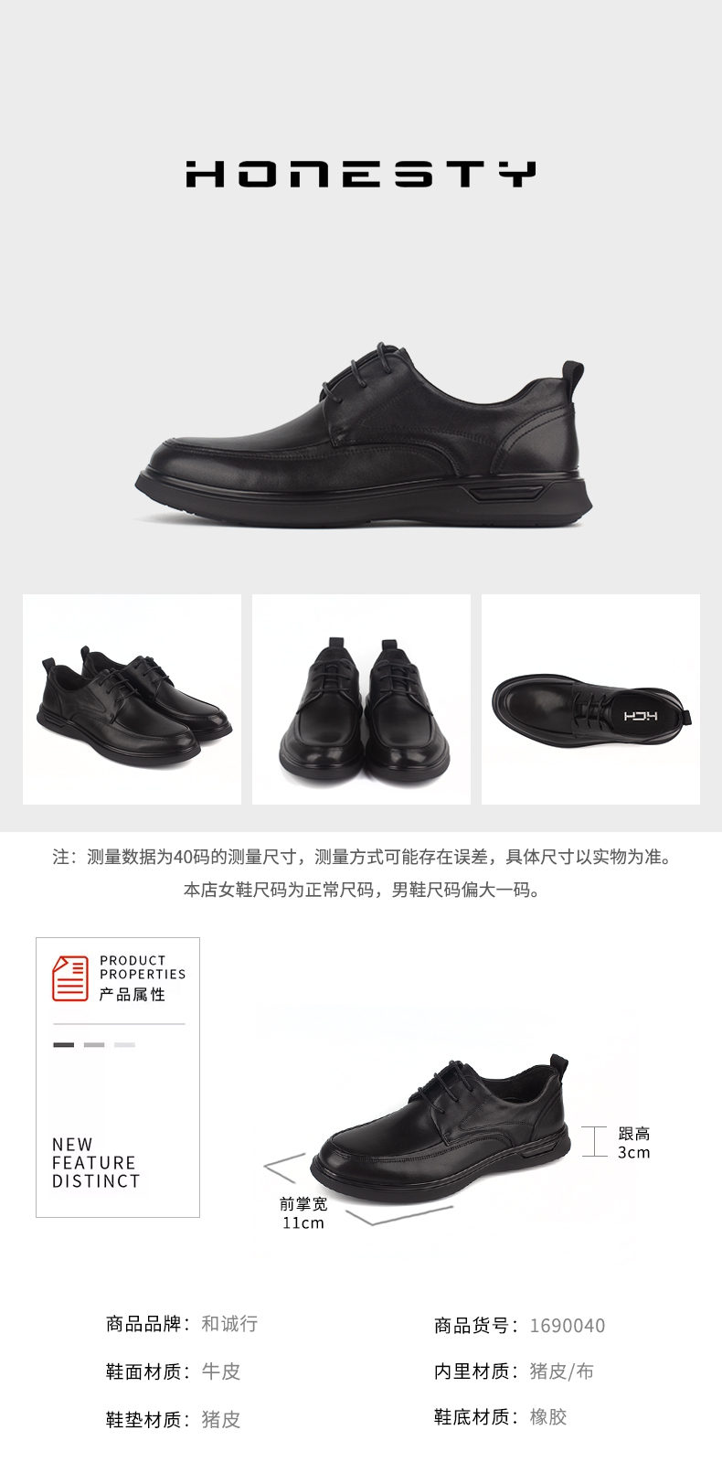 和诚行 2024秋冬新款百搭商务休闲皮鞋男系带舒适真皮皮鞋1690040