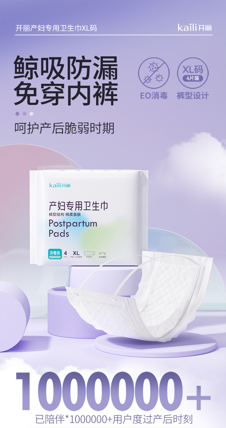 *【Kaili开丽】XL码 | 开丽产妇卫生巾裤型卫生巾4片*2包孕妇产褥期产后专用排恶露-孕产用品