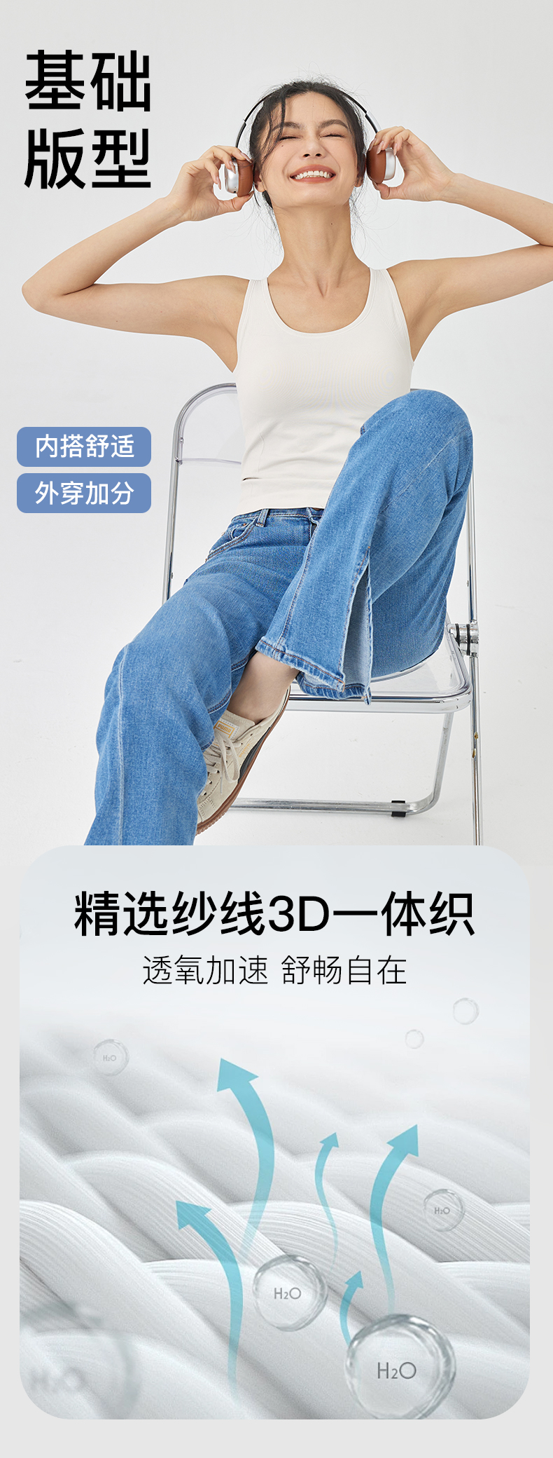 Leorrey/乐拉基础版纯色内搭舒适自带固定罩杯一体织背心