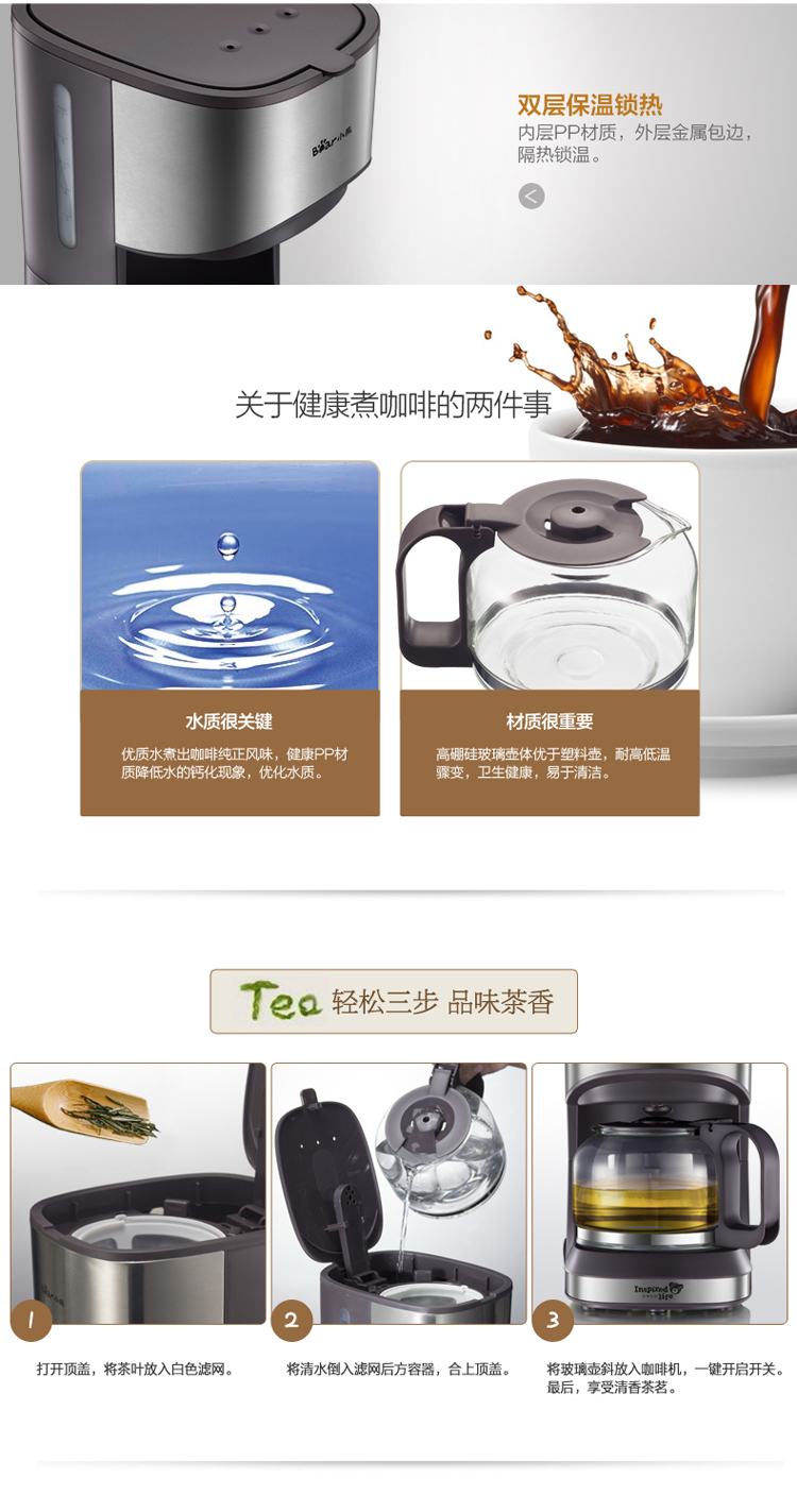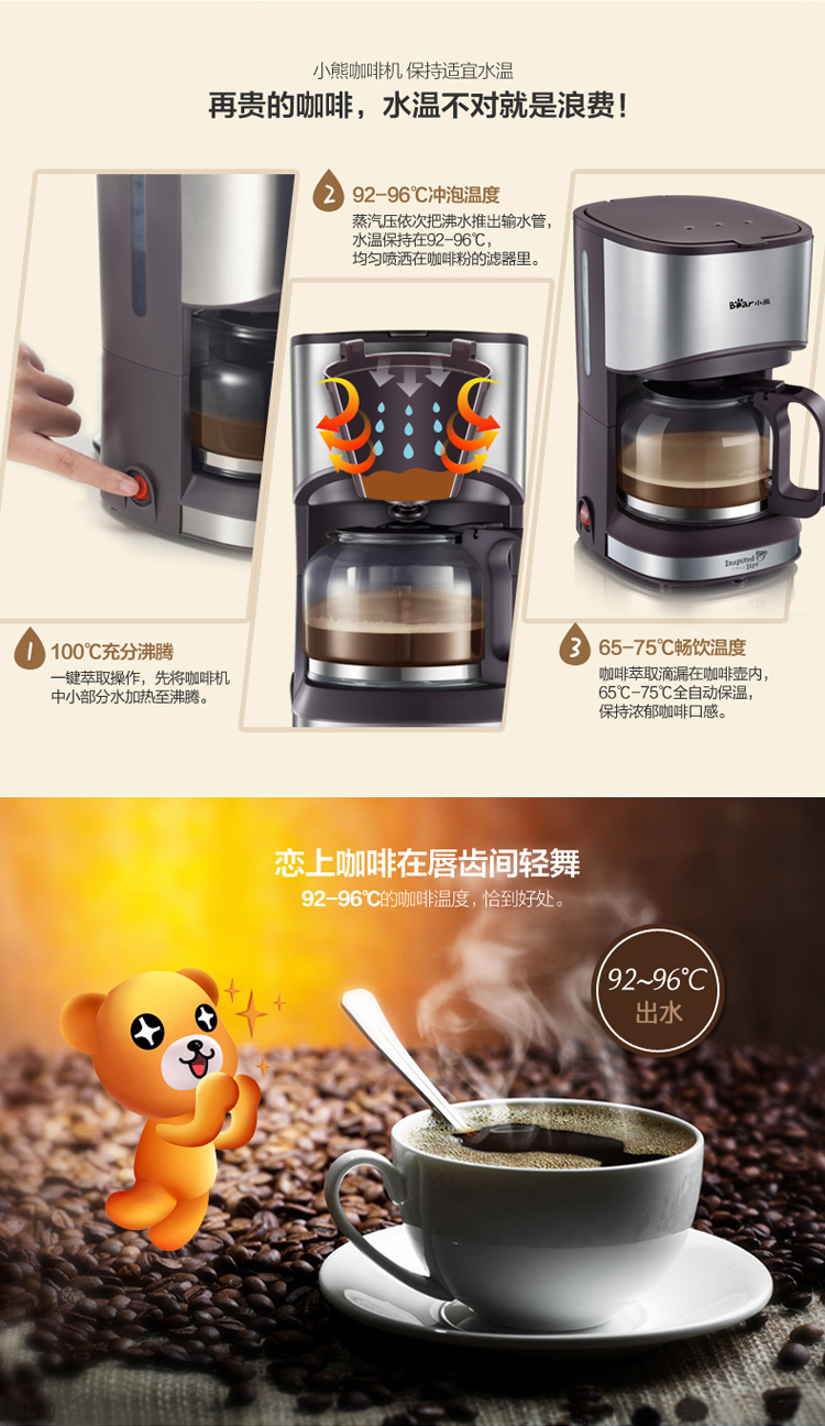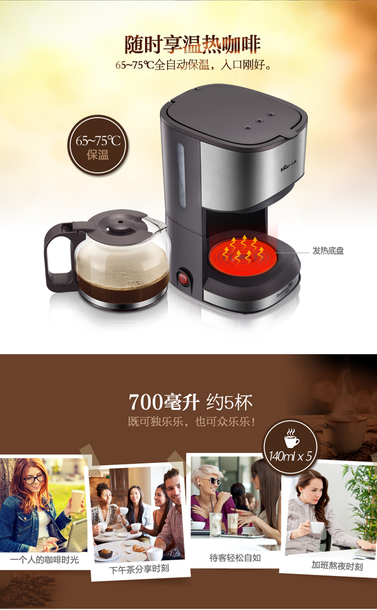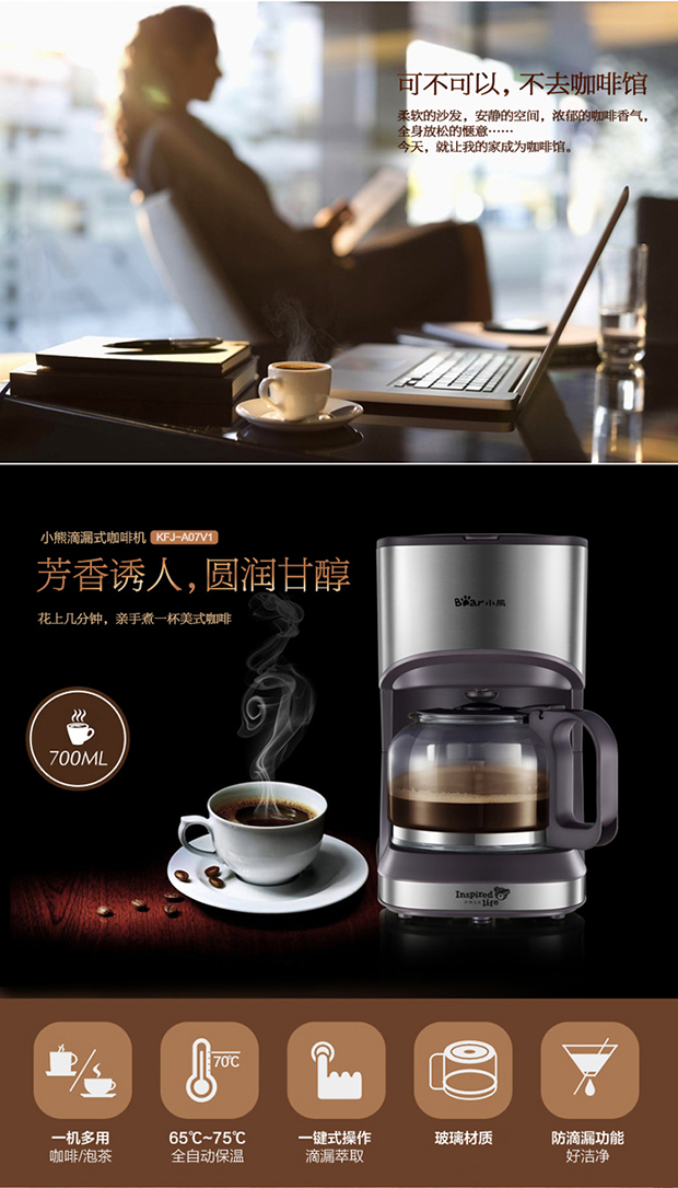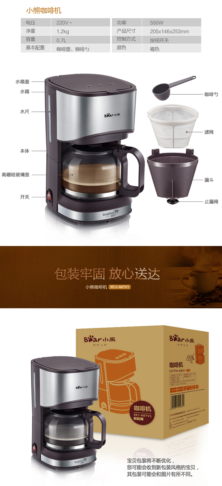 【居家好物】小熊(Bear) 美式家用 0.7L全自动滴漏式小型泡茶煮咖啡壶 KFJ-A07V1
