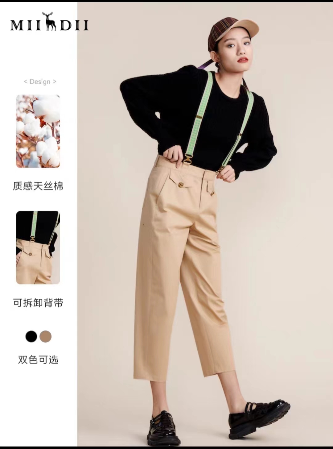 特点:经典萝卜裤,背带可拆卸,莱赛尔,棉的面料,穿着有弹性,百搭实穿!