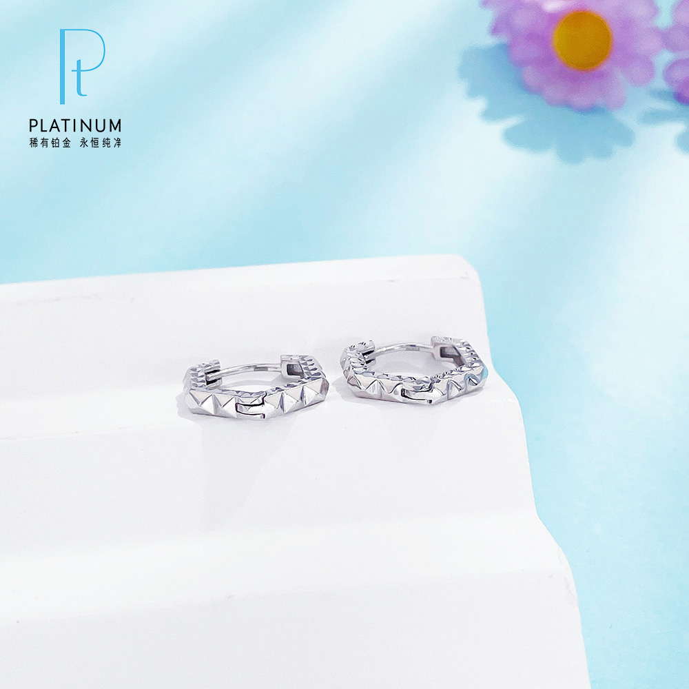 【限时8.8折】【线上铂金馆】PT950 【国际铂金协会 精品】铂金空心六边形耳饰耳圈(ACPTES00010)预售产品下单后不退款不退货不换货不补差价)
