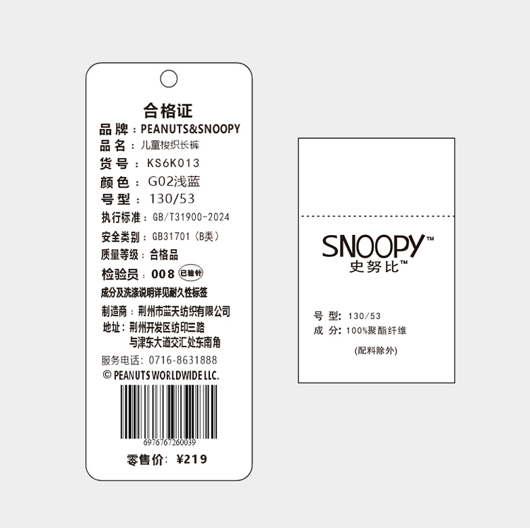 【110-160】【史努比】【弯刀裤】女童裤子百搭休闲裤