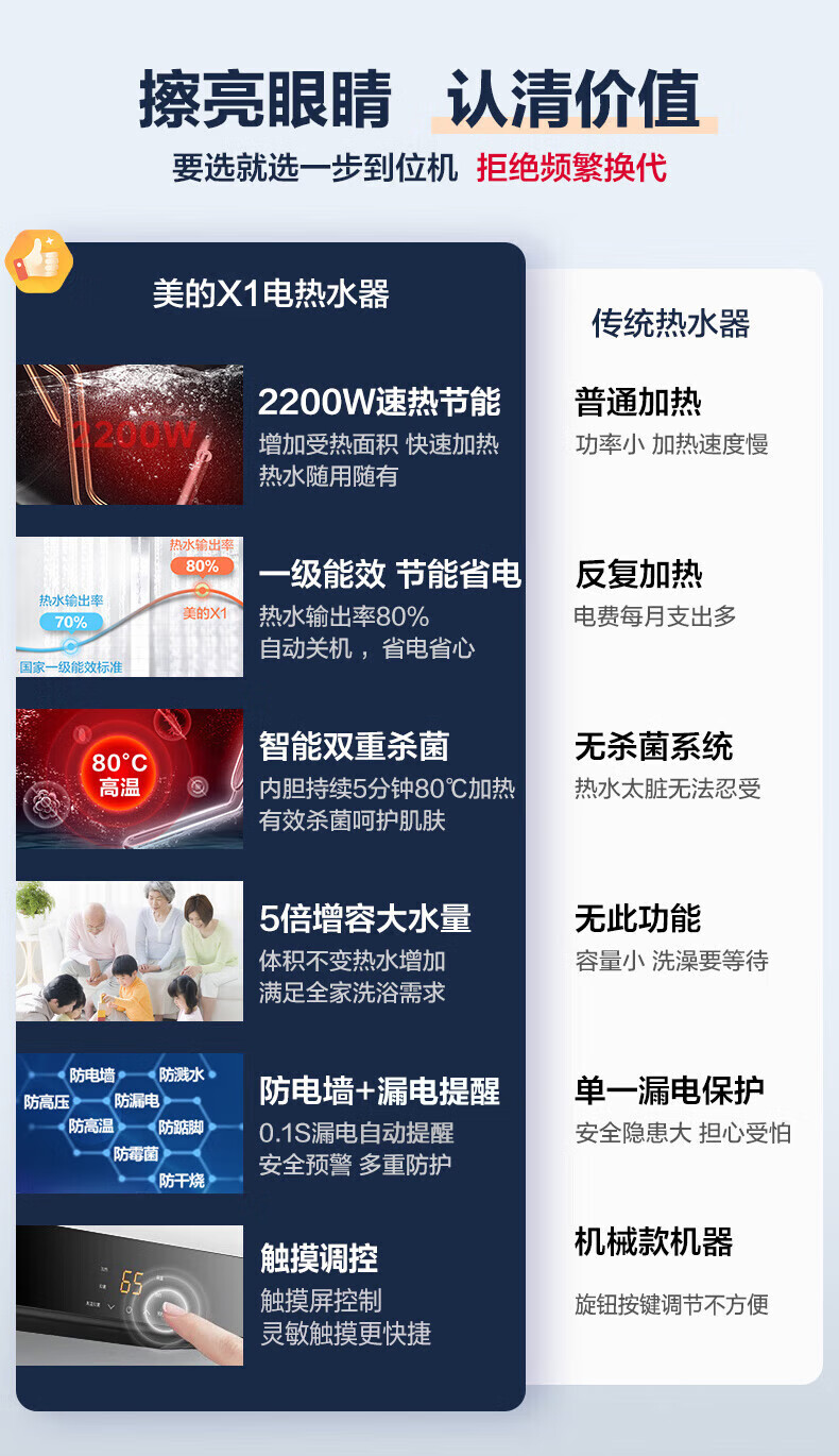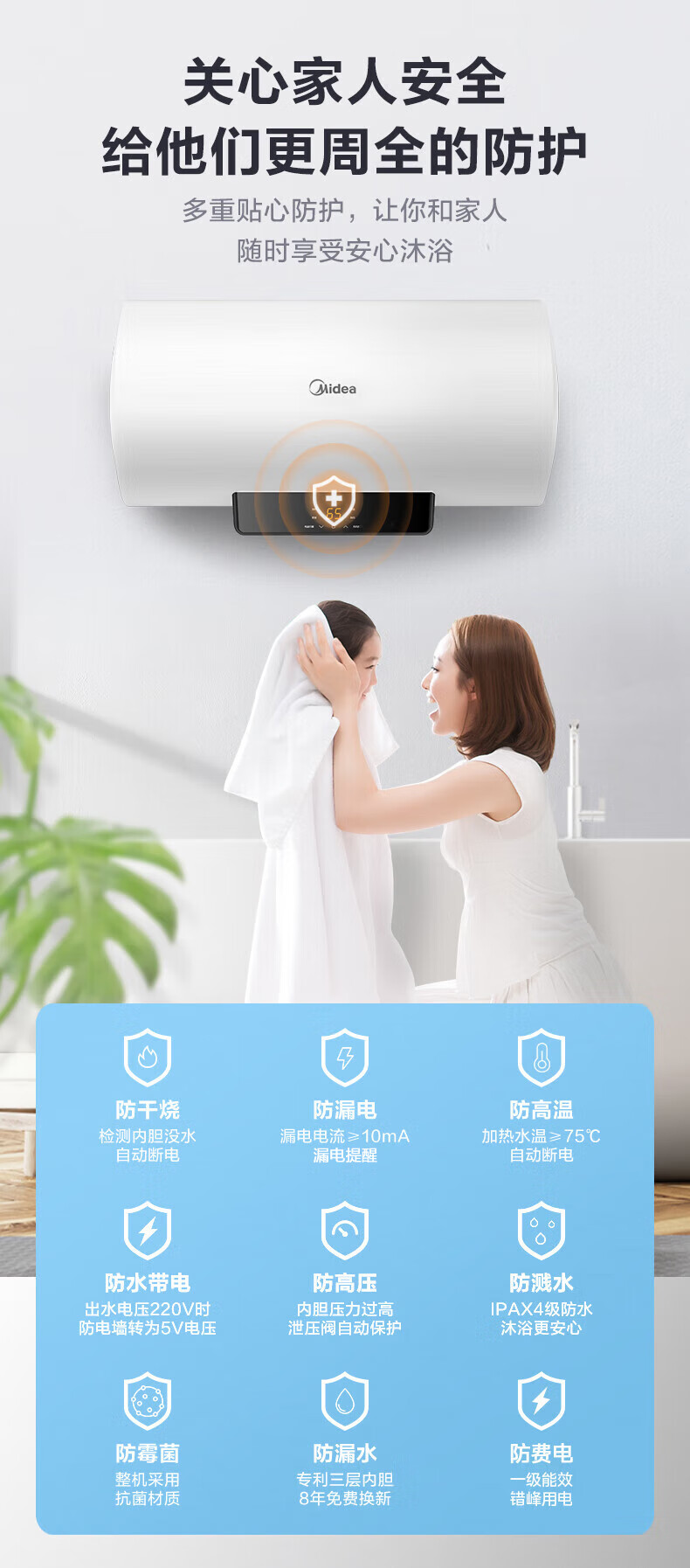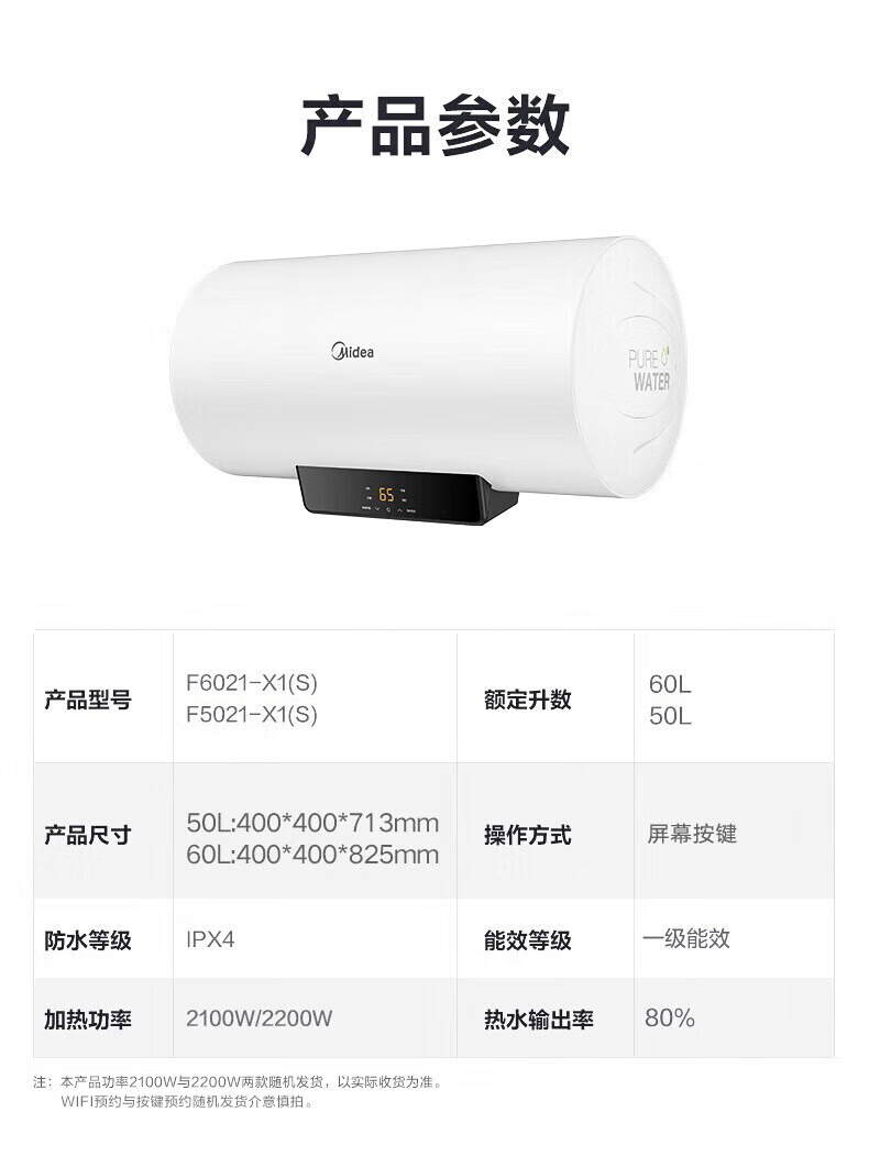 美的(Midea)储水式电热水器 F6021-X1(S) 60L