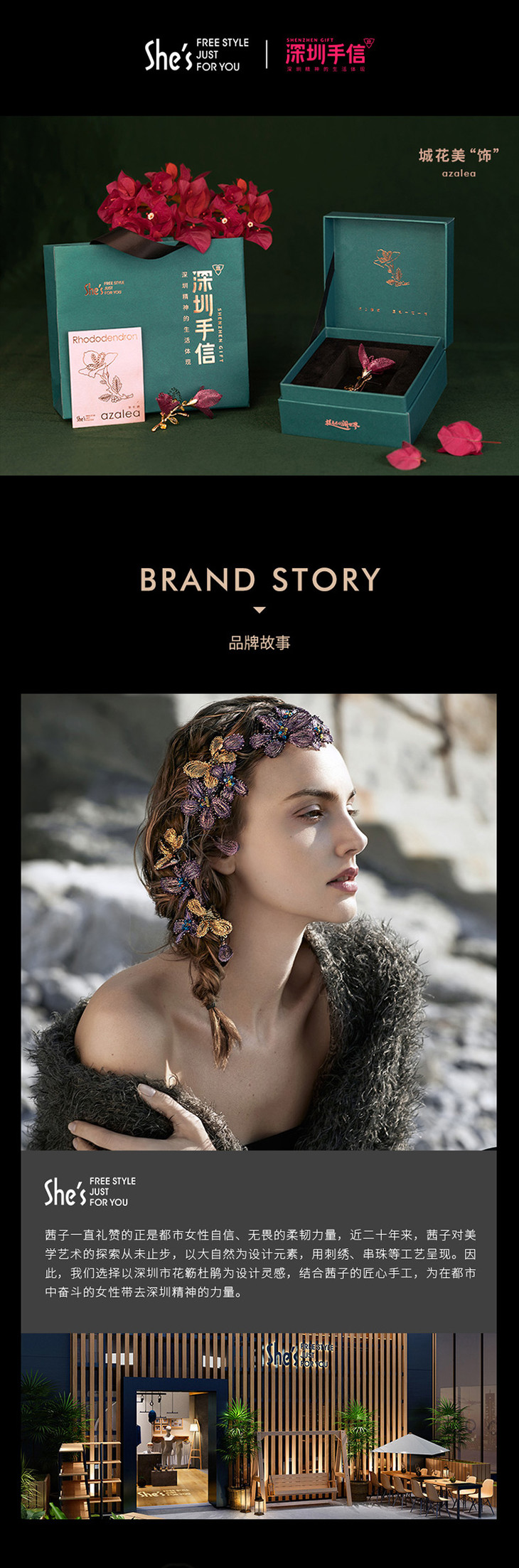 深圳手信 茜子she's·簕杜鹃花胸针深圳40周年纪念礼盒双花款