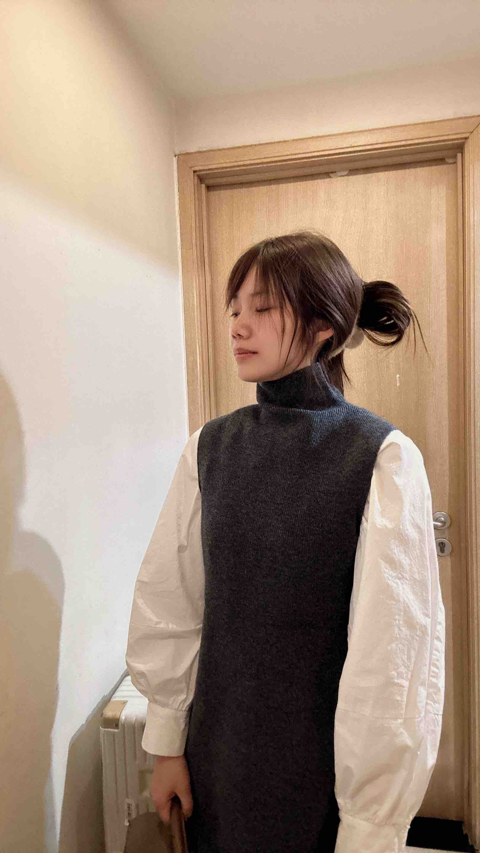 2、羊毛羊绒混纺面料。绝大多数高级成衣都是混纺面料。加点羊绒,加点丝绸,就能卖出天价。但是质感确实很高级,一看就是好东西。不愧是纯靠材质和裁剪的品牌。温暖细腻光滑垂坠感好。拿回来店员几乎人手两件。一开始看到都说:??这是啥?这怎么搭配?然后试了下:这也太好看了吧?每个颜色都好看,无法取舍,人手两件。。。
