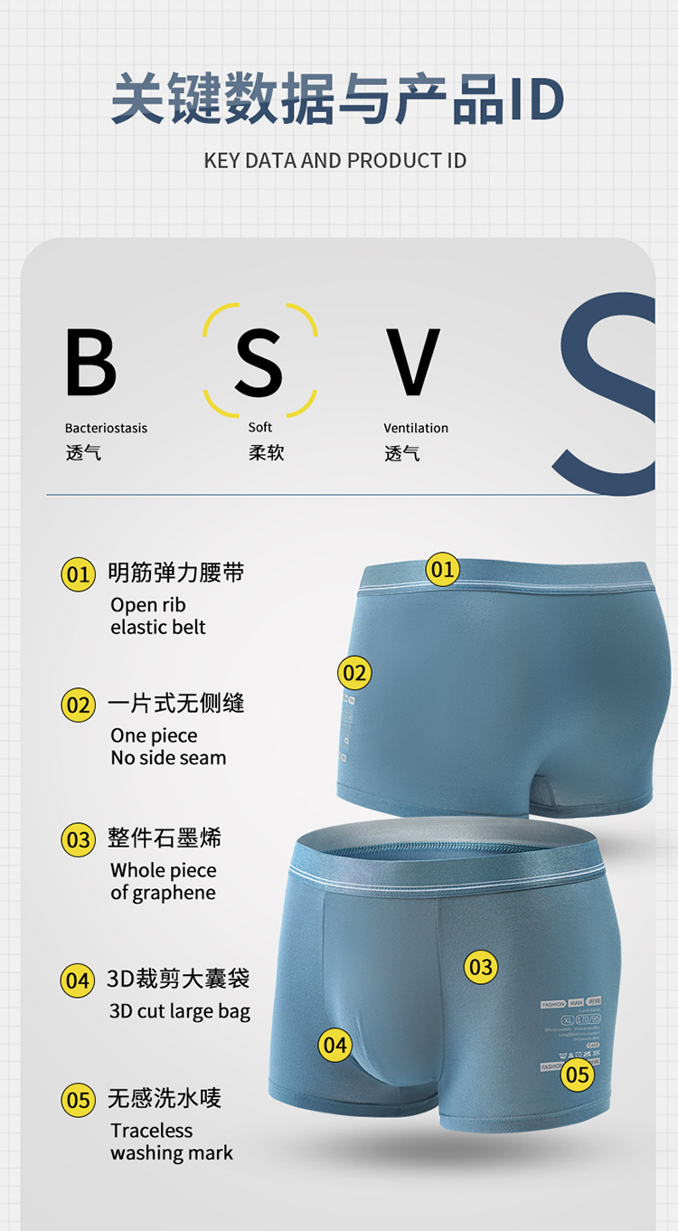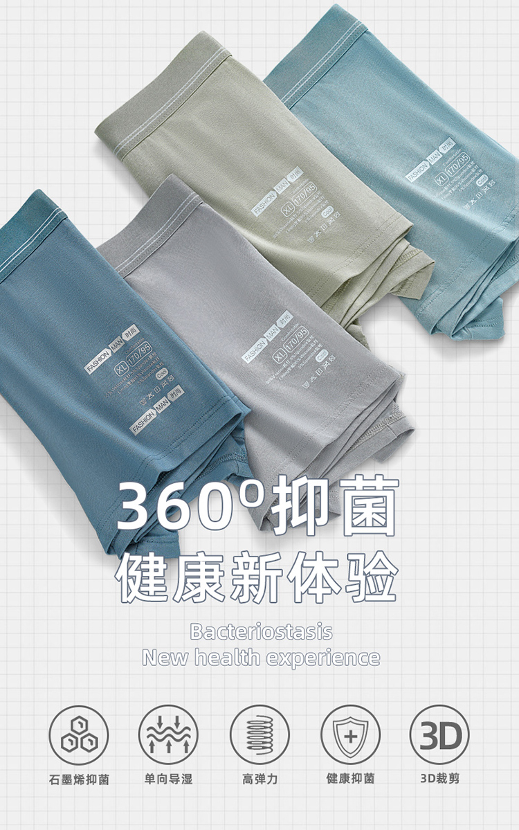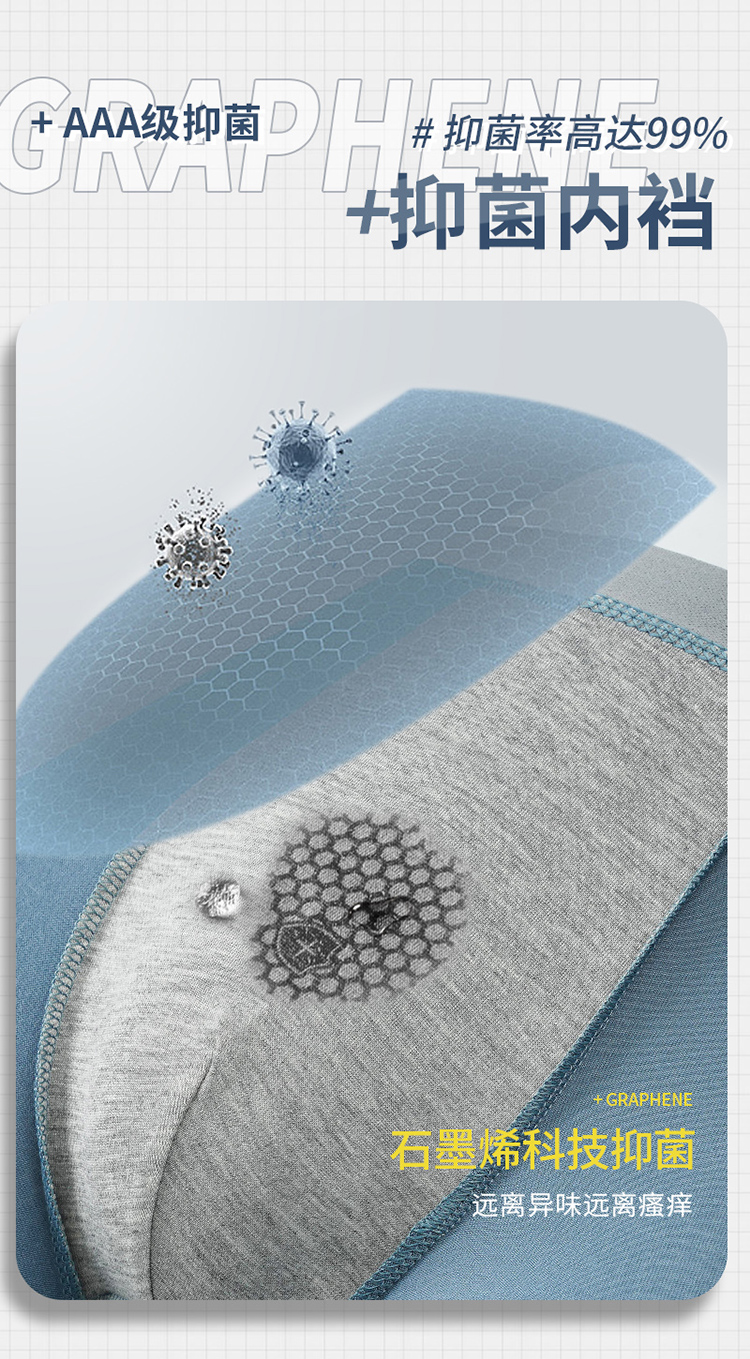 【360°石墨烯抑jun】新款男士石墨烯护卫裤 莫代尔无痕四角裤抗jun中腰高弹大码内裤男