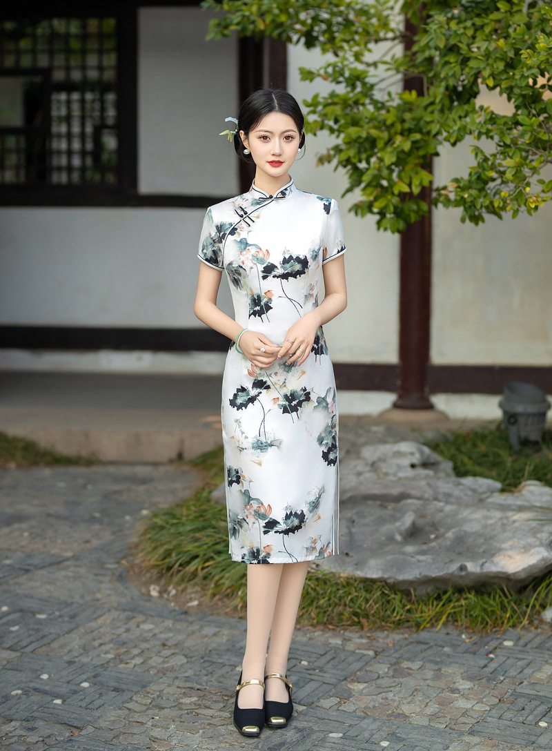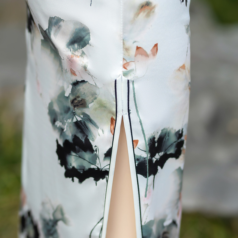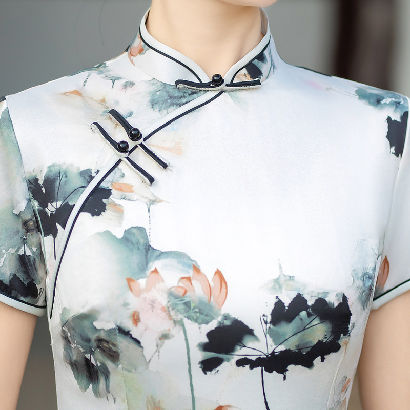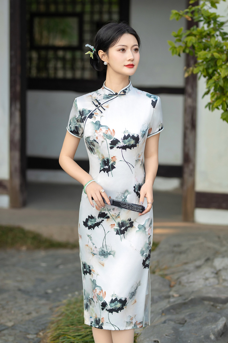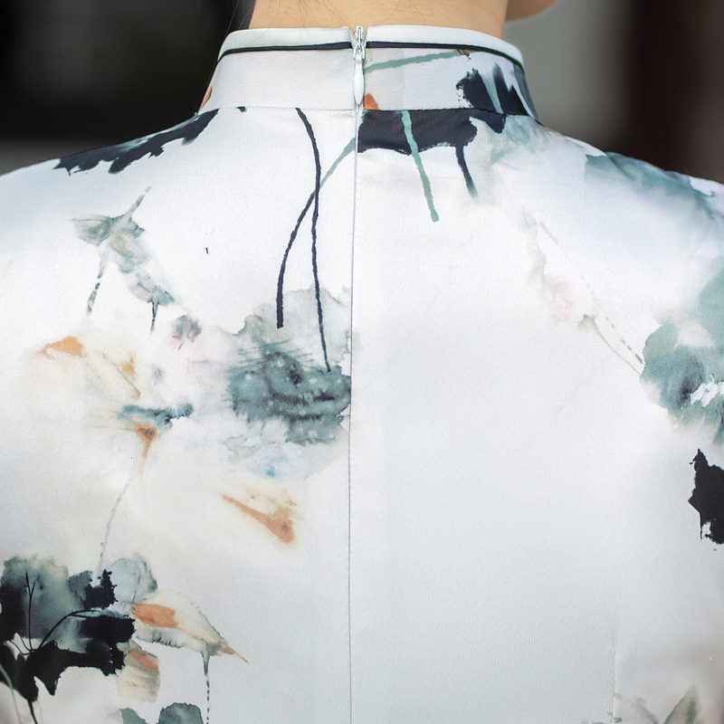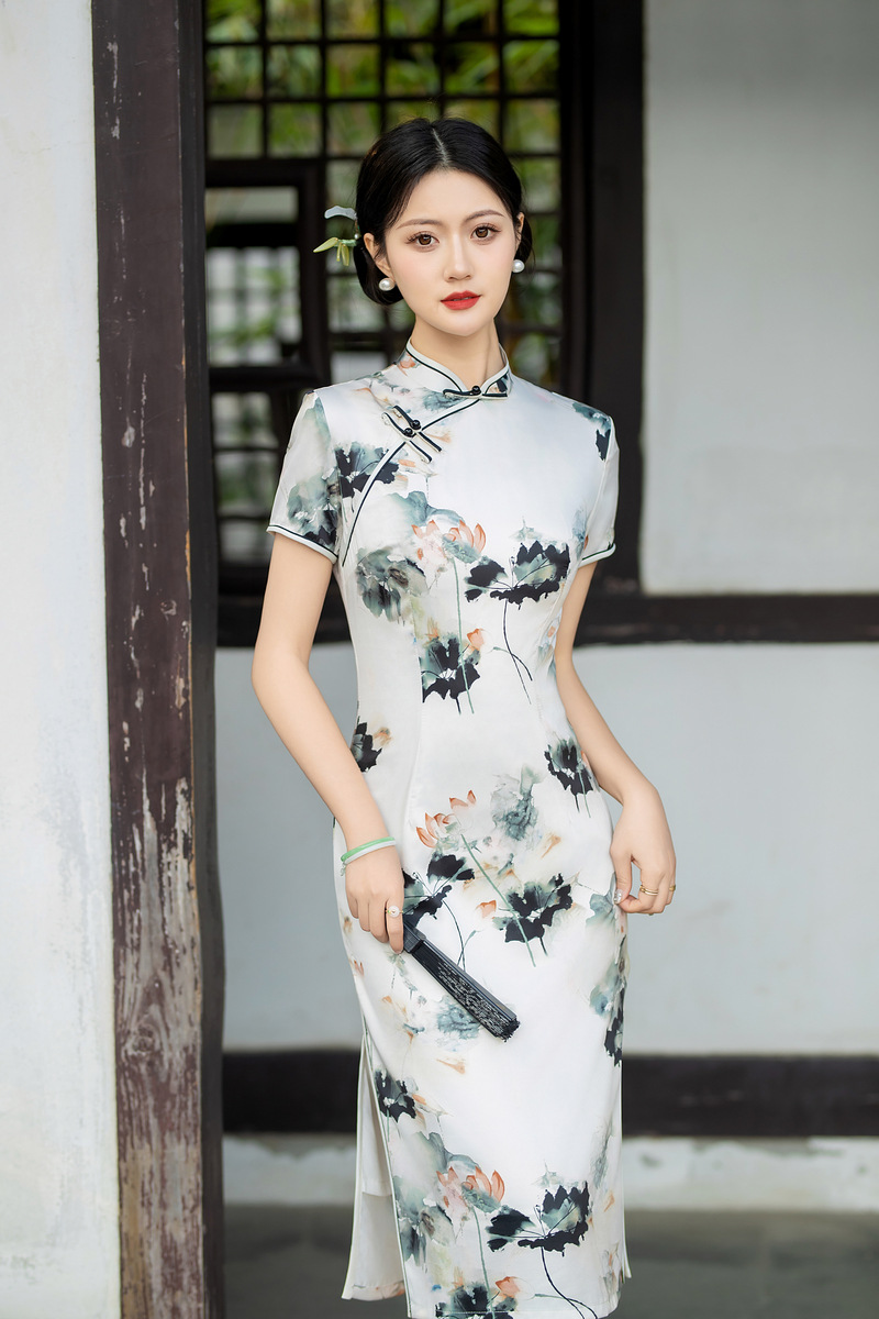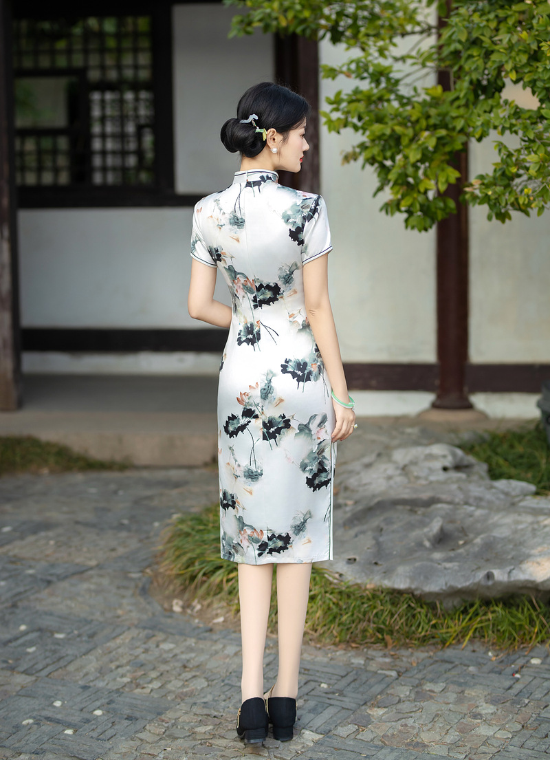 日常修身气质显瘦,中长双层丝绸旗袍ZA- 82304