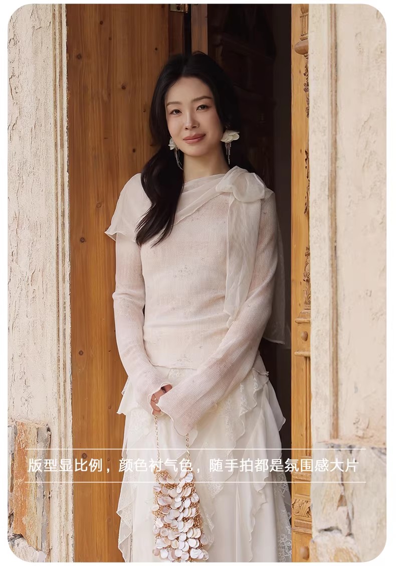 【门店同款】ENJOY夏季落樱浅粉飘带上衣 170693111