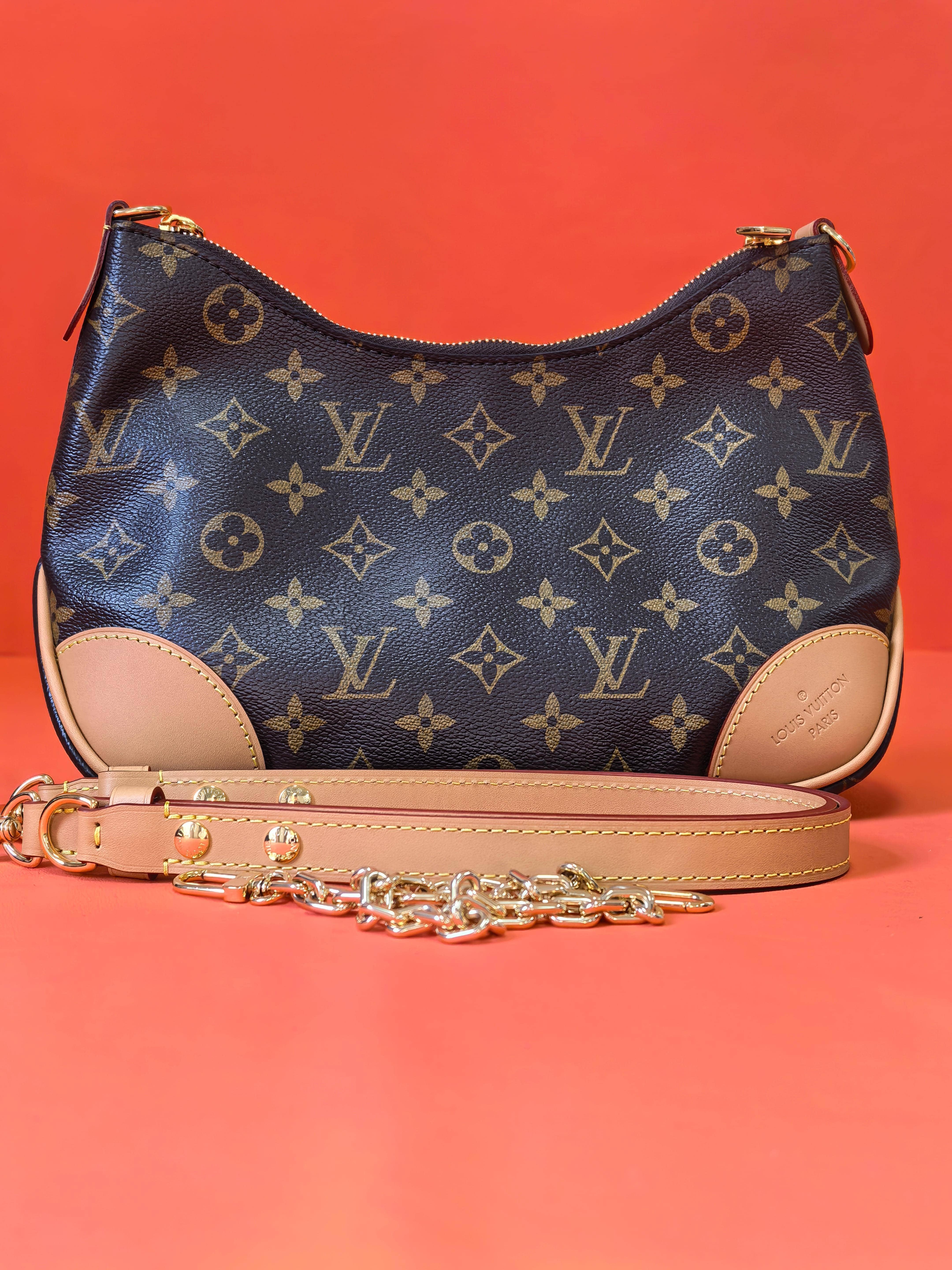 LOUIS VUITTON BOULOGNE 手袋 经典老花 涂层帆布拼牛皮革饰边 黄牛角 链条包腋下包斜挎单肩包 女款 棕色