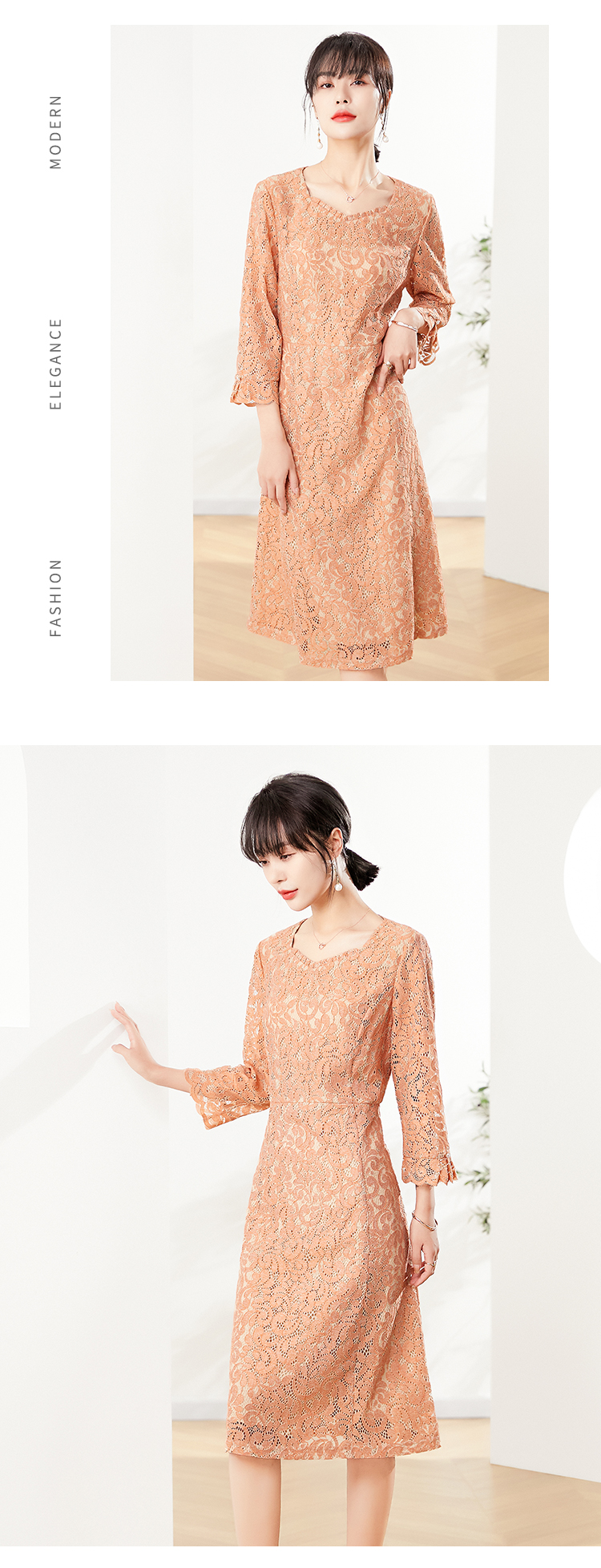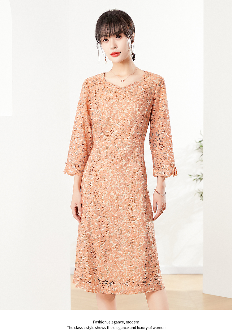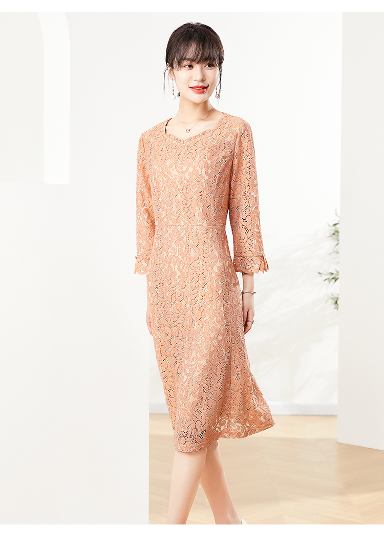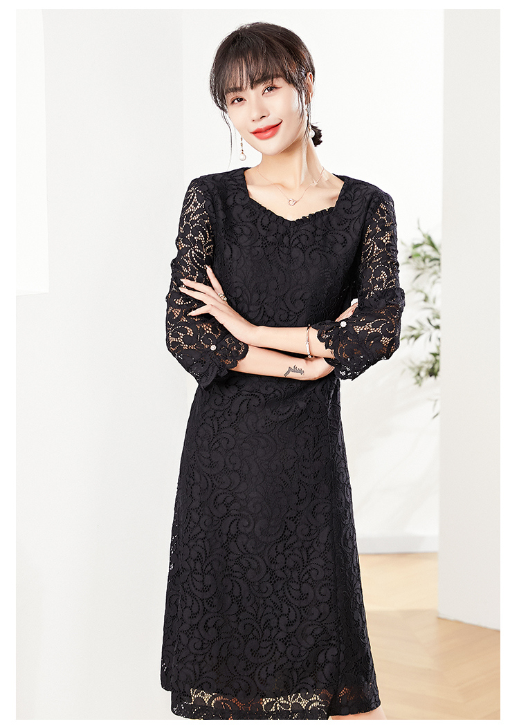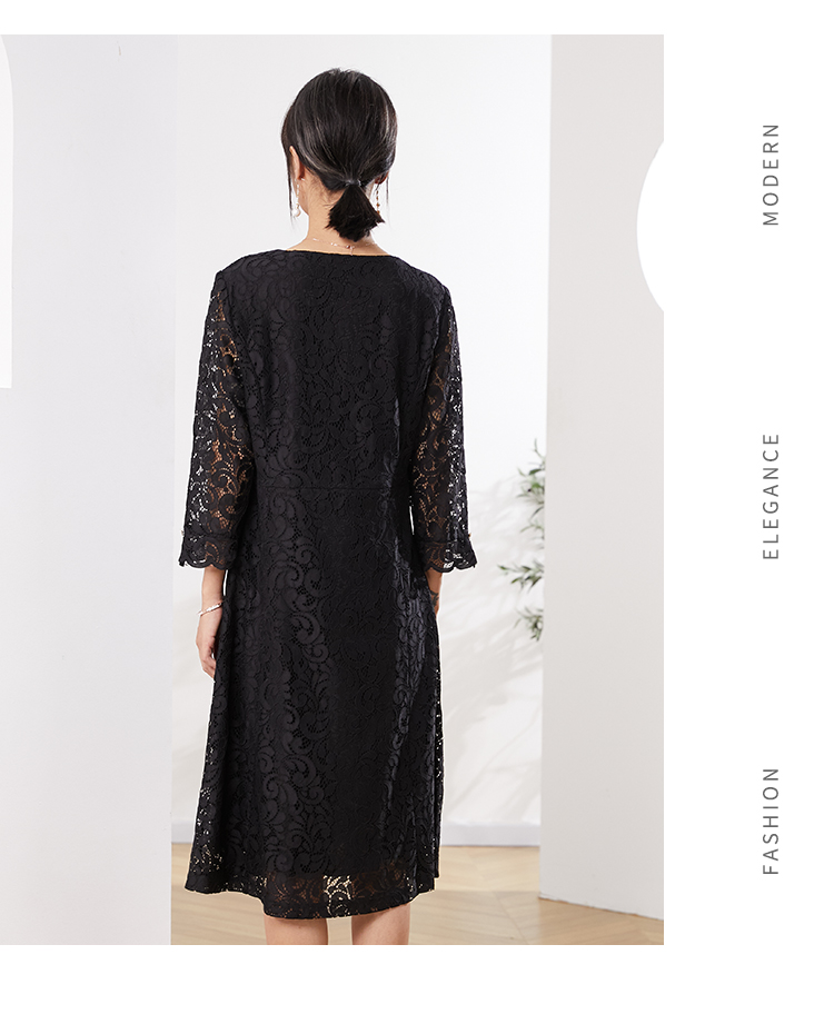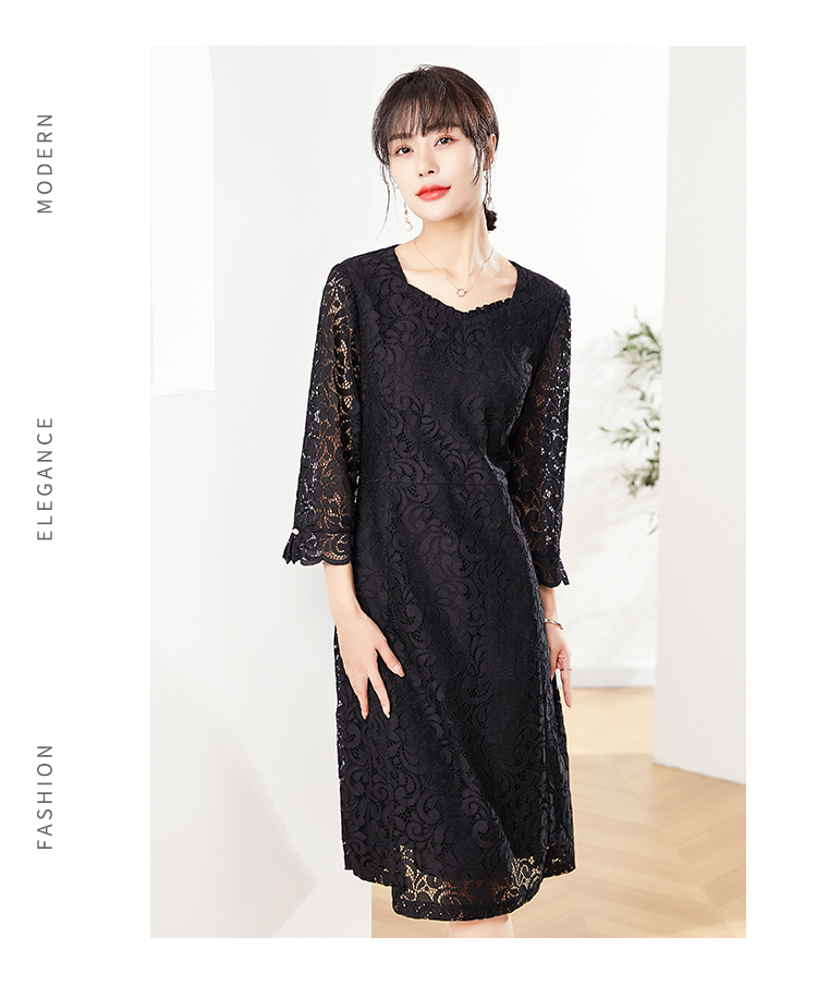 佐尔美秋季新款 镂空蕾丝气质连衣裙女E21LL03