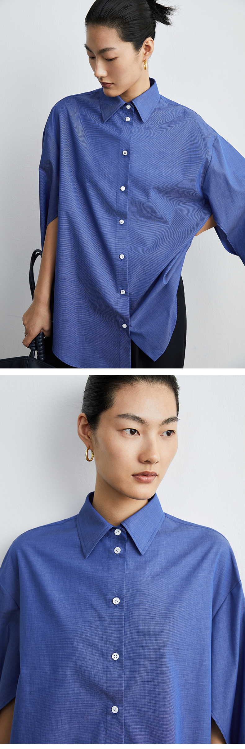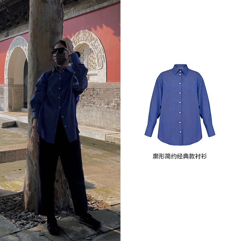 HIDEMI牛仔蓝廓形简约经典款衬衫