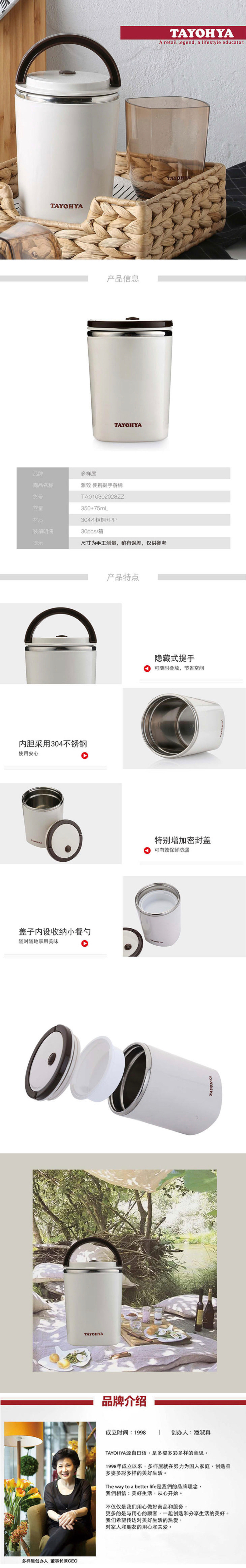 多样屋 雅致便携提手餐桶 TA010302028ZZ