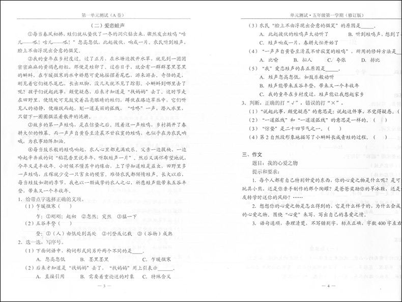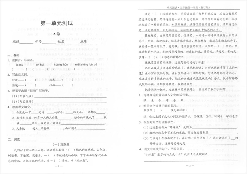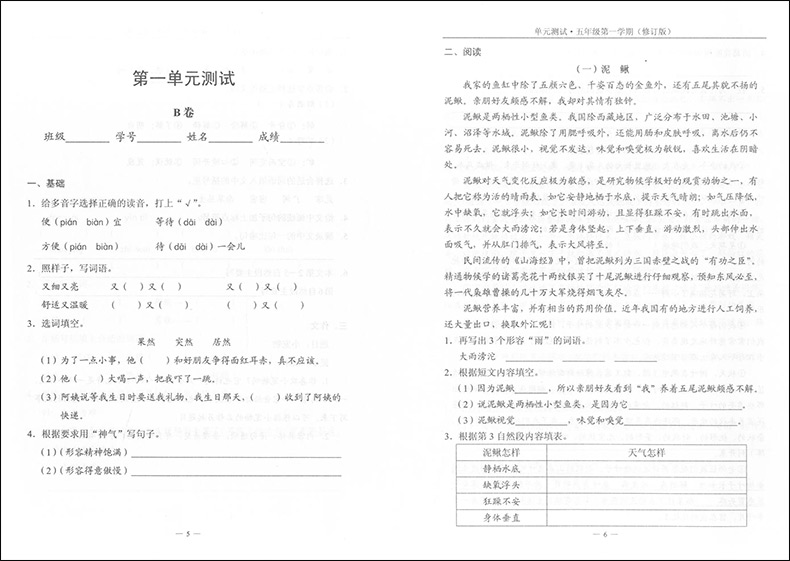 随堂练习与单元测试 部编版 语文 5年级上/五年级第一学期 语文 统编本上海小学教材教辅配套同步辅导随堂练习单元测试卷 全新版