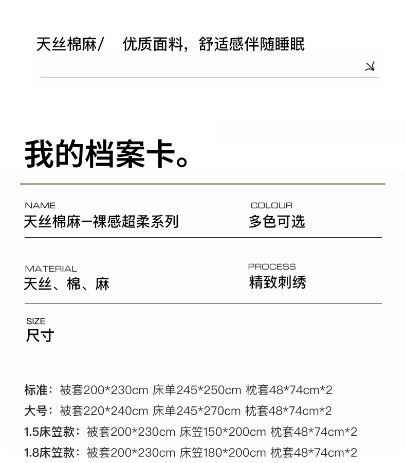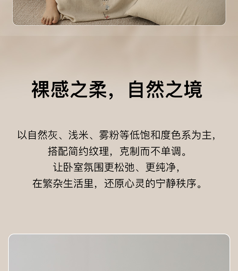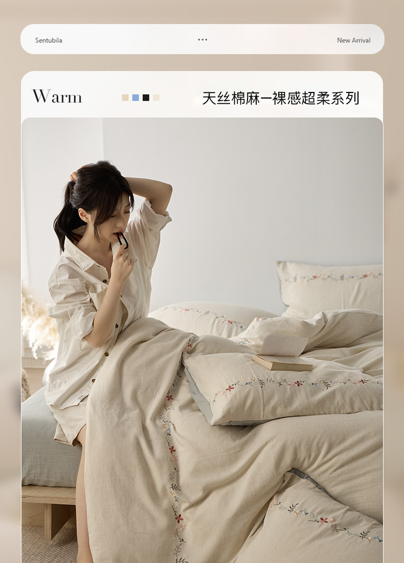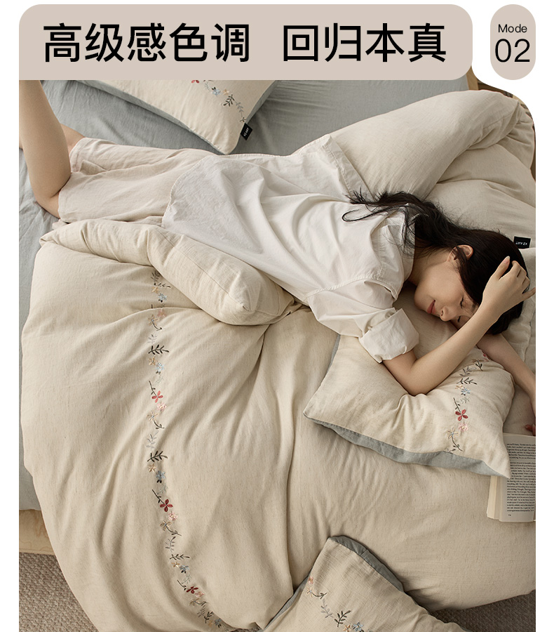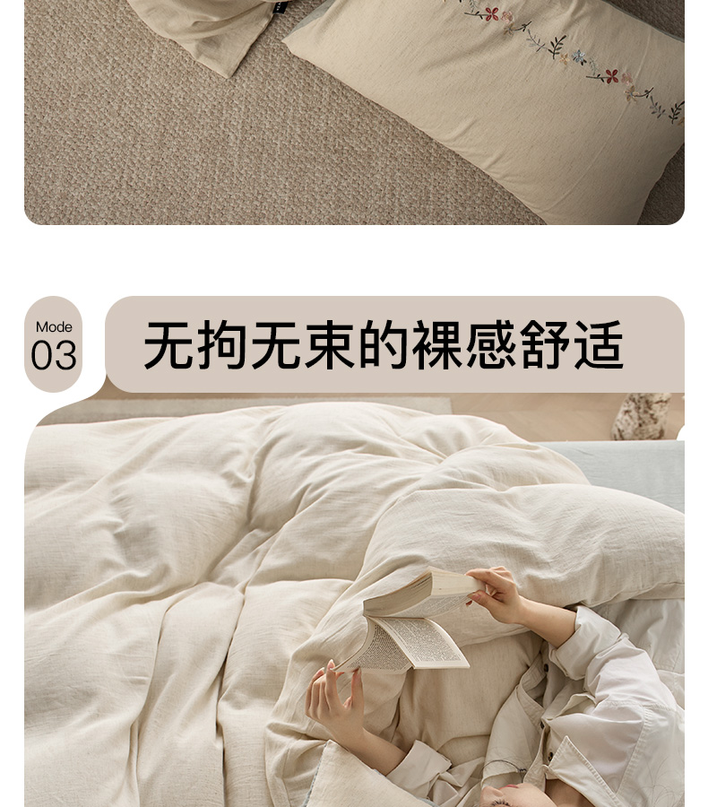超柔裸感贴身天丝棉麻四件套 天丝+棉+亚麻无印风简约套件