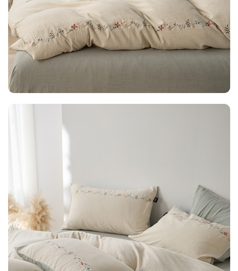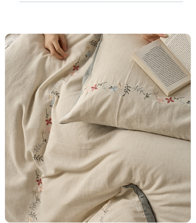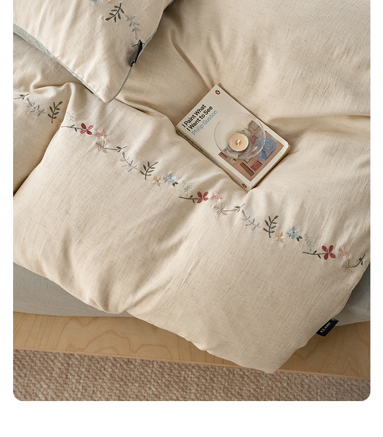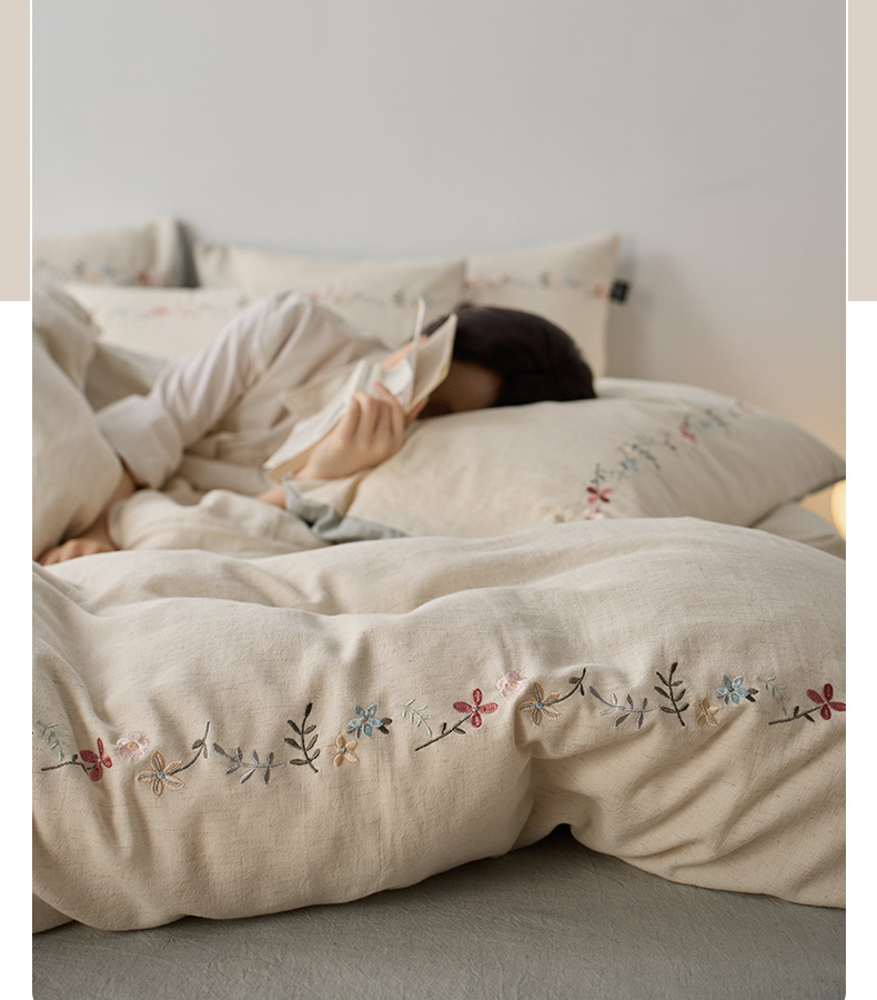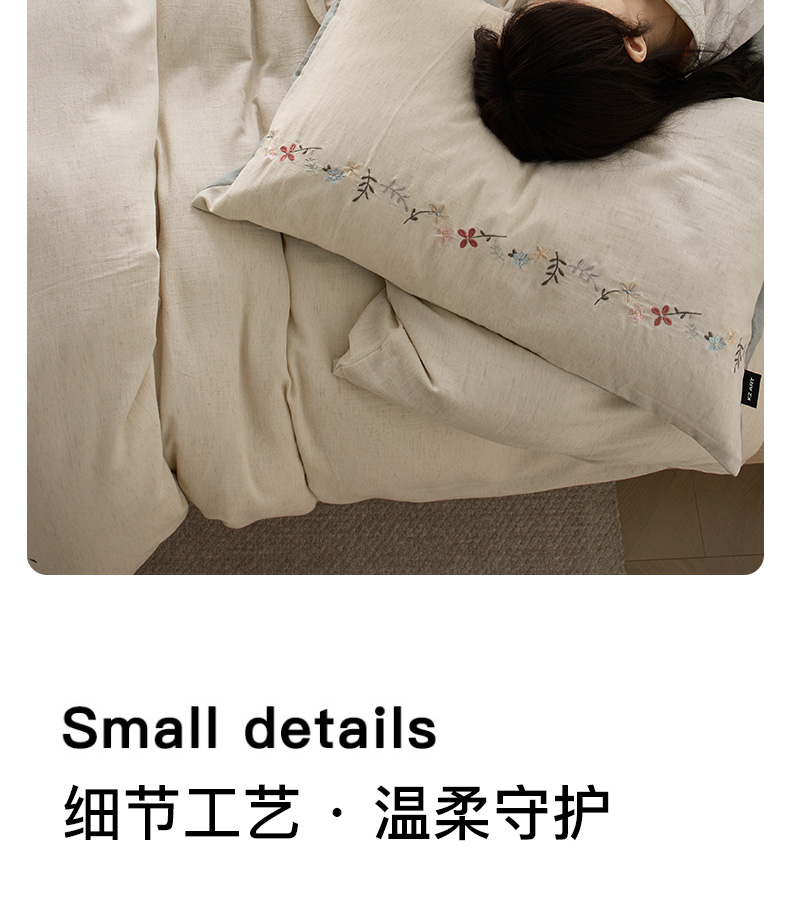 超柔裸感贴身天丝棉麻四件套 天丝+棉+亚麻无印风简约套件