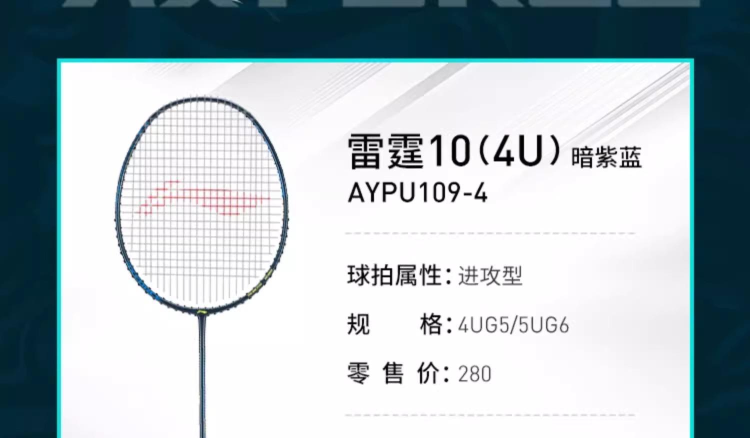 李宁Lining雷霆10男女款全碳素纤维超轻入门进攻型单拍