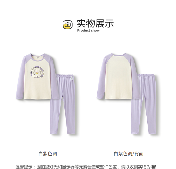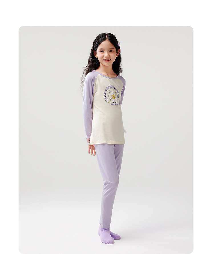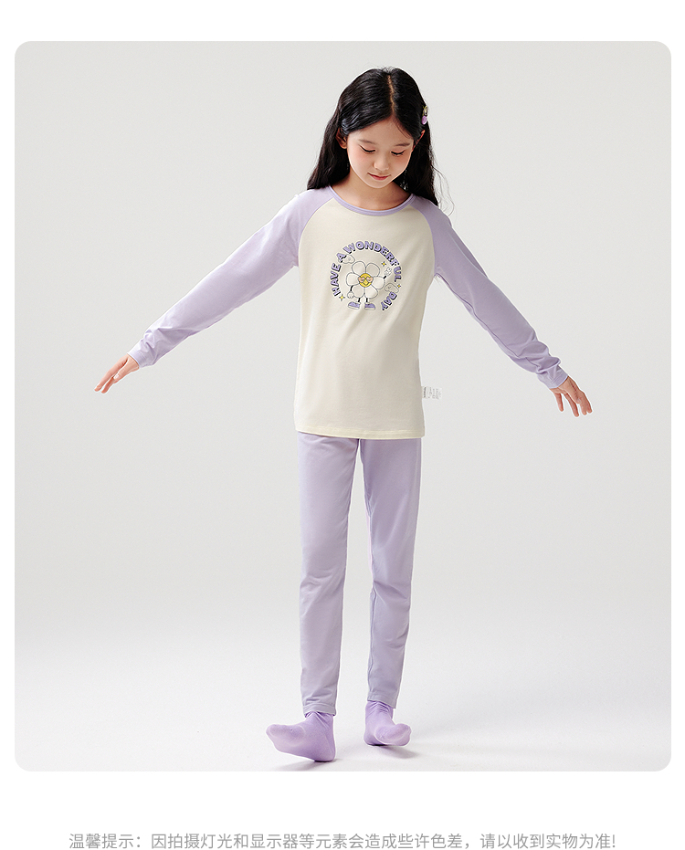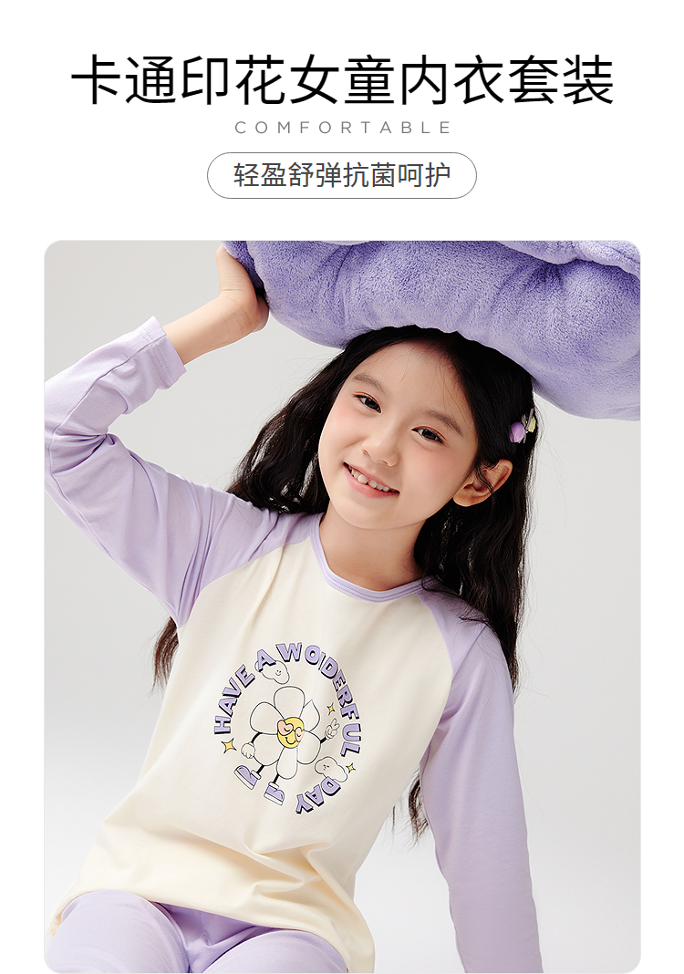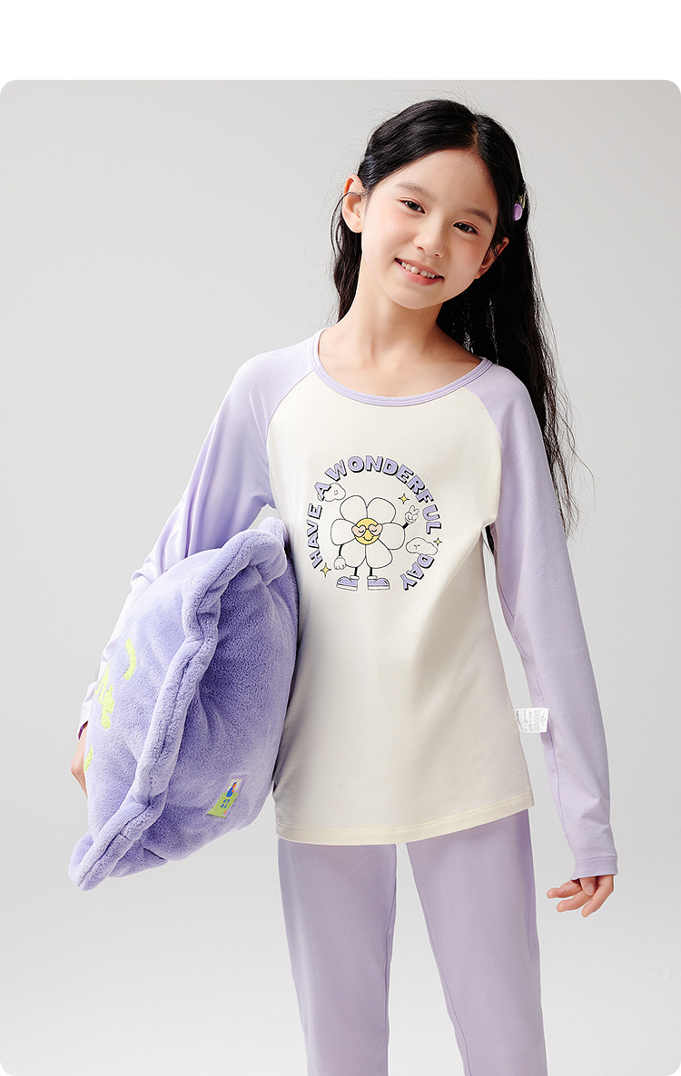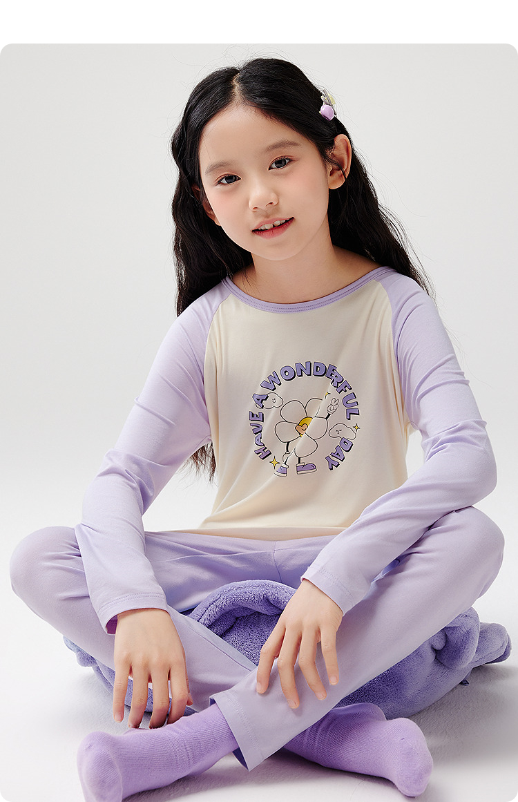 巴拉巴拉儿童内衣套装春秋女童秋衣秋裤大童打底睡衣拼色舒适亲肤