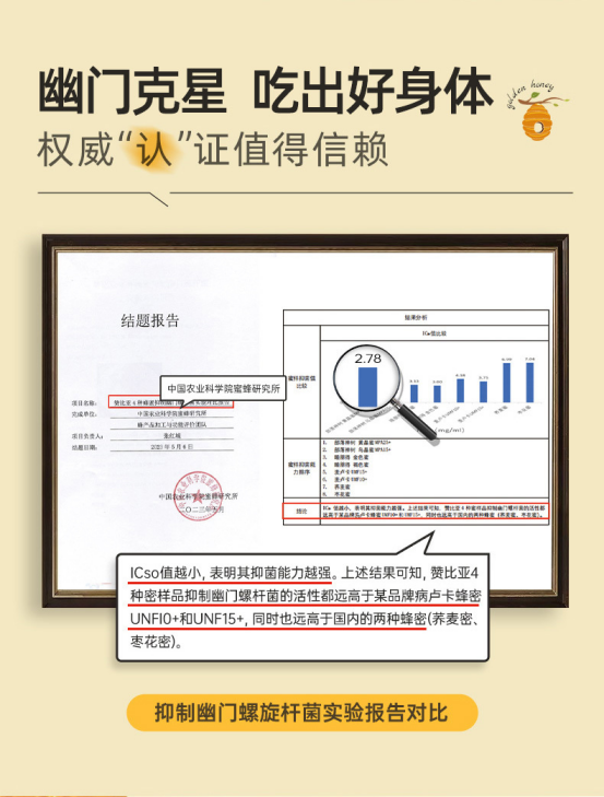 什么虚的都不看,咱们直接数据说话!! 在中国农科院蜂蜜研究所做的幽门螺旋杆菌抑制效果检测中 发现开普山谷部落神树黄晶蜜最终数值是2.78 麦卢卡蜂蜜是3.7,普通国产蜜是7 (数值越小,抑制幽门螺旋杆菌效果越好👍) ⚠️⚠️直接证明:开普山谷部落神树黄晶蜜抑制幽门螺杆菌的活性 远高于麦卢卡蜂蜜UMF10+和UMF15+ 还直接出具了检测报告的!!👇👇