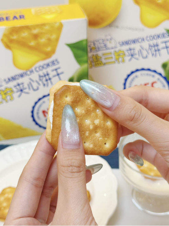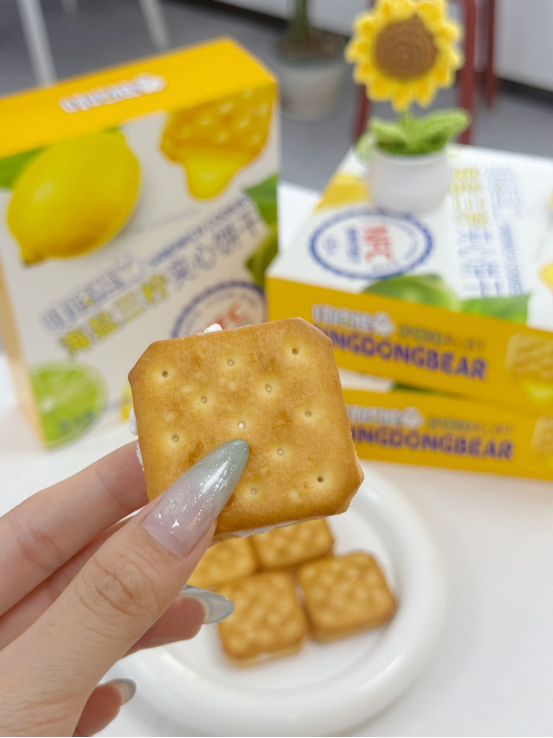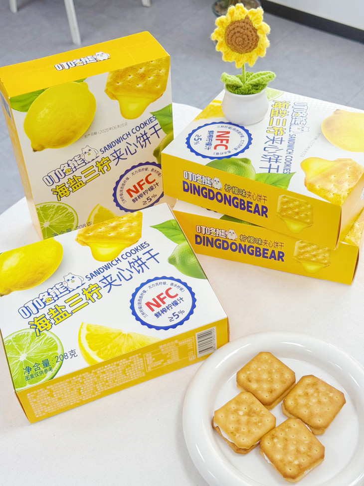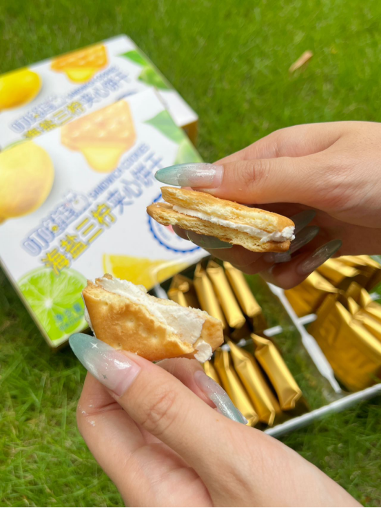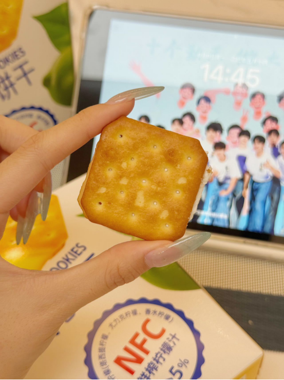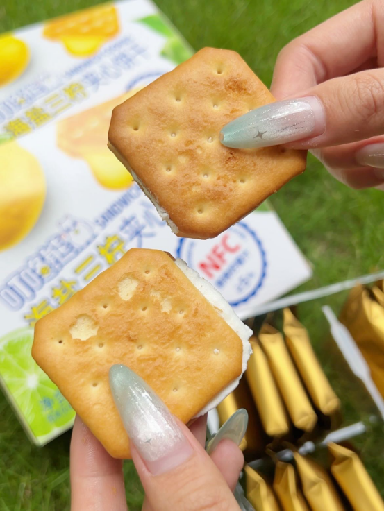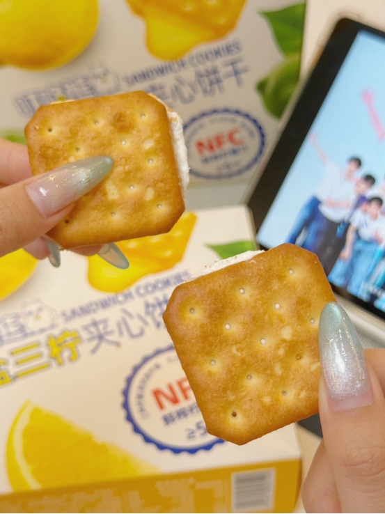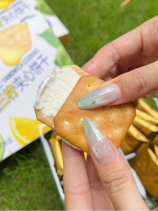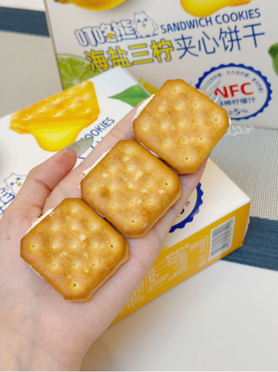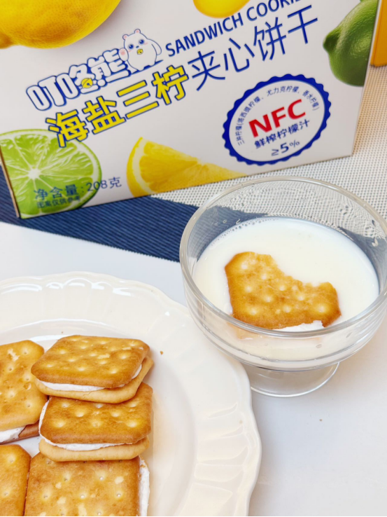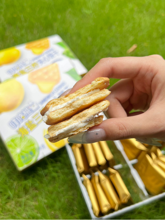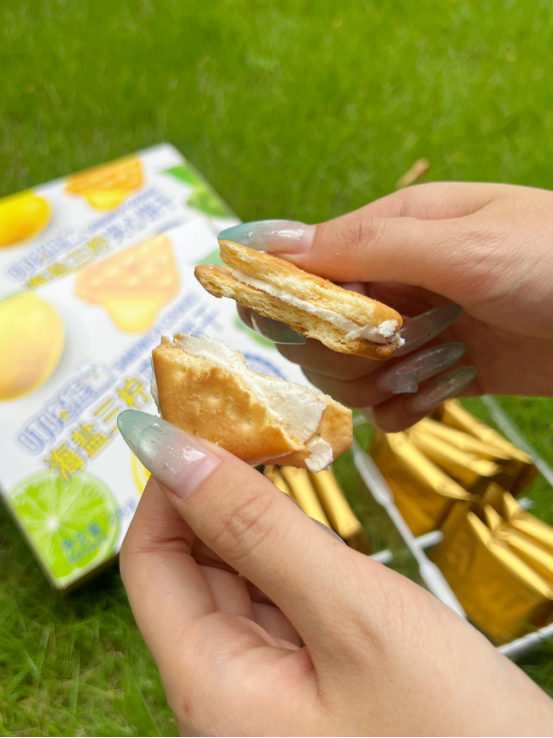🍪 口感体验: 第一口——酥脆饼干带着小麦香,第二口——柠檬夹心爆出酸甜果汁感,第三口——海盐的微咸悄然浮现,回味无穷! 像咬了一口阳光海岸🌊,柠檬的酸、海盐的咸、饼干的香——根本停不下来! (⚠试吃提醒:千万别泡牛奶!因为会好吃到把牛奶喝光!)