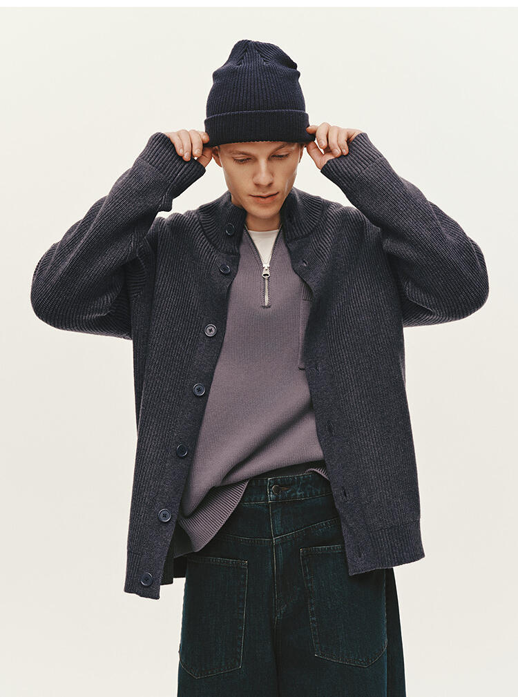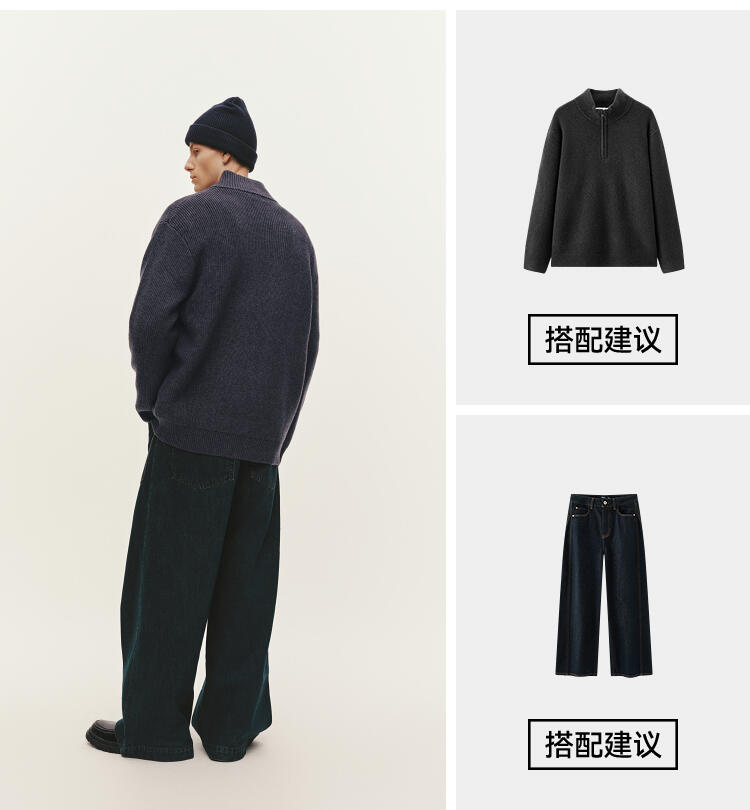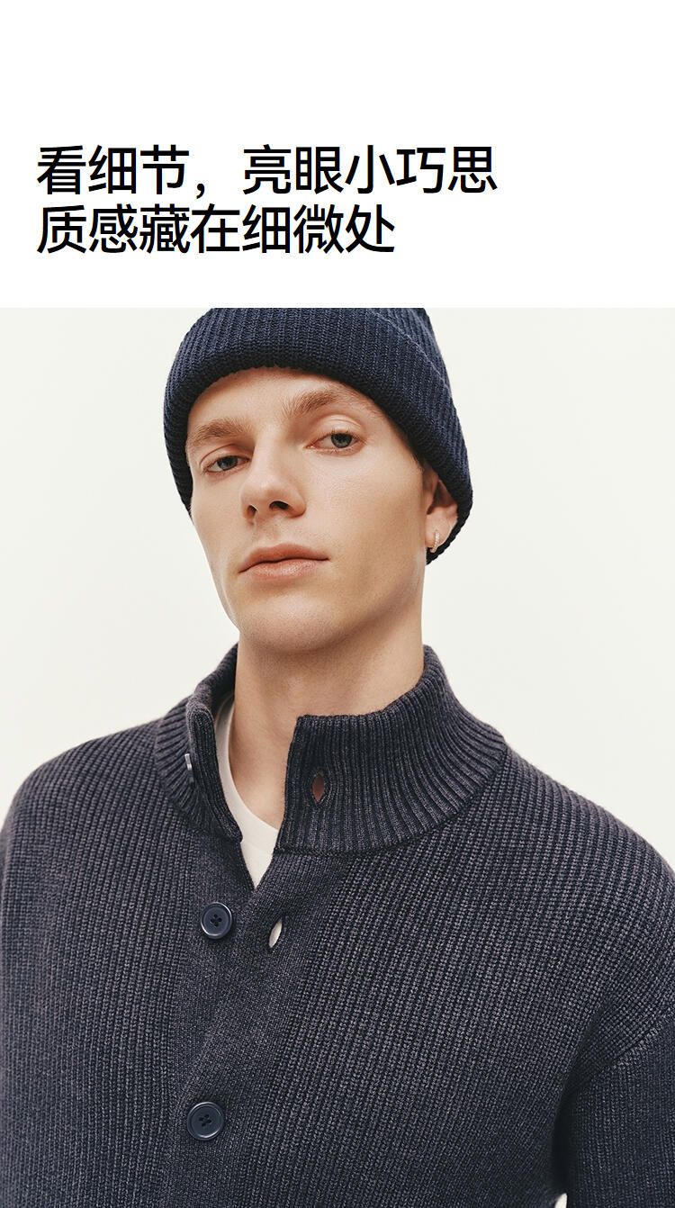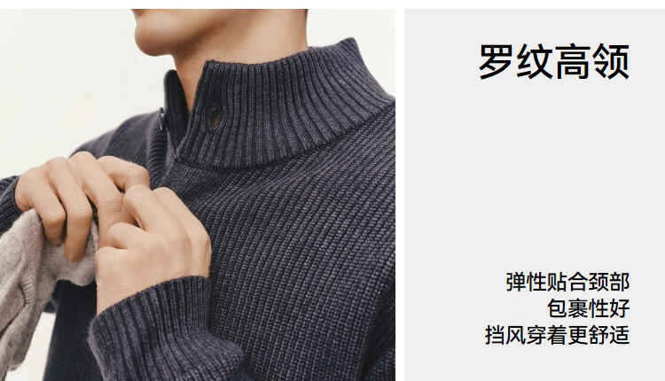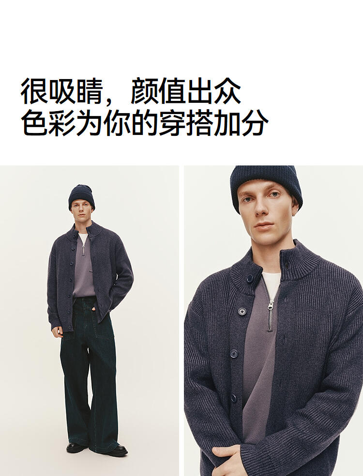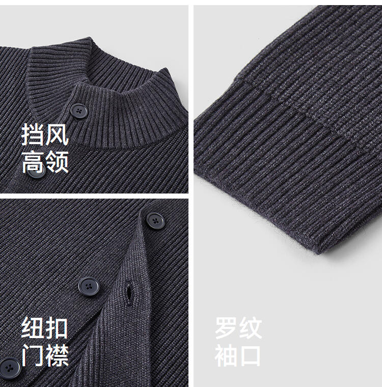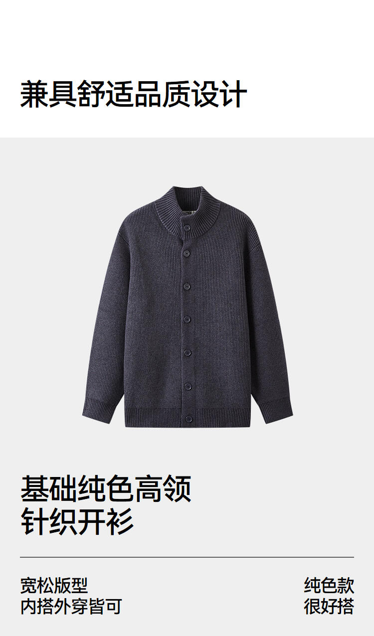 森马毛衫男冬季高领开衫外套宽松2025新款纯色百搭休闲针织衫毛衣