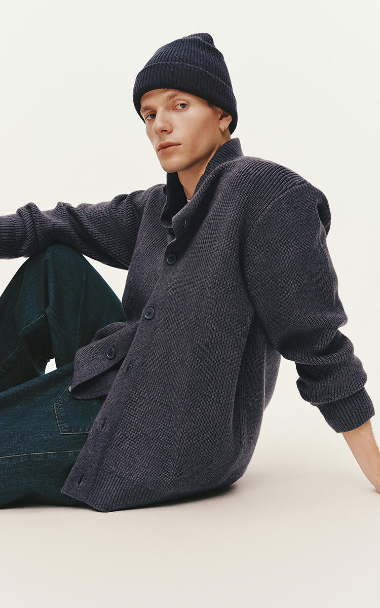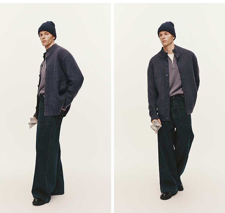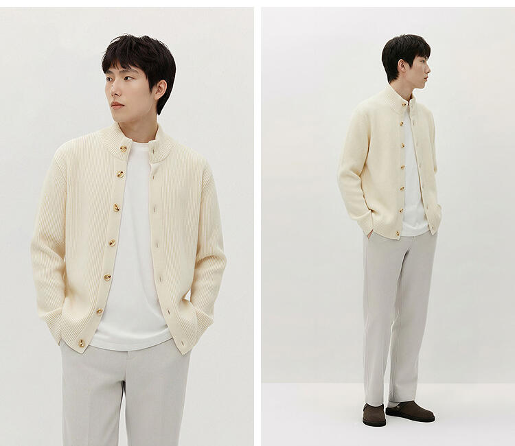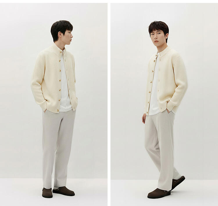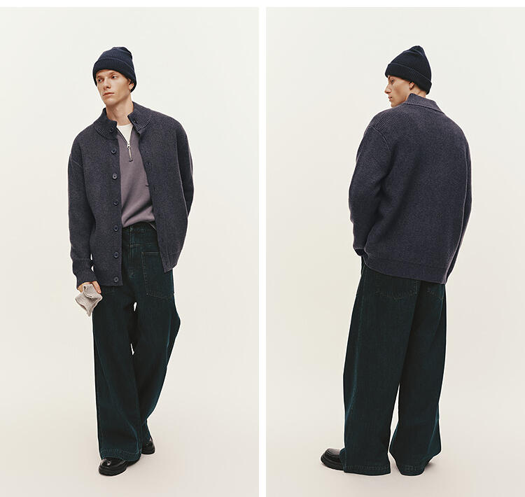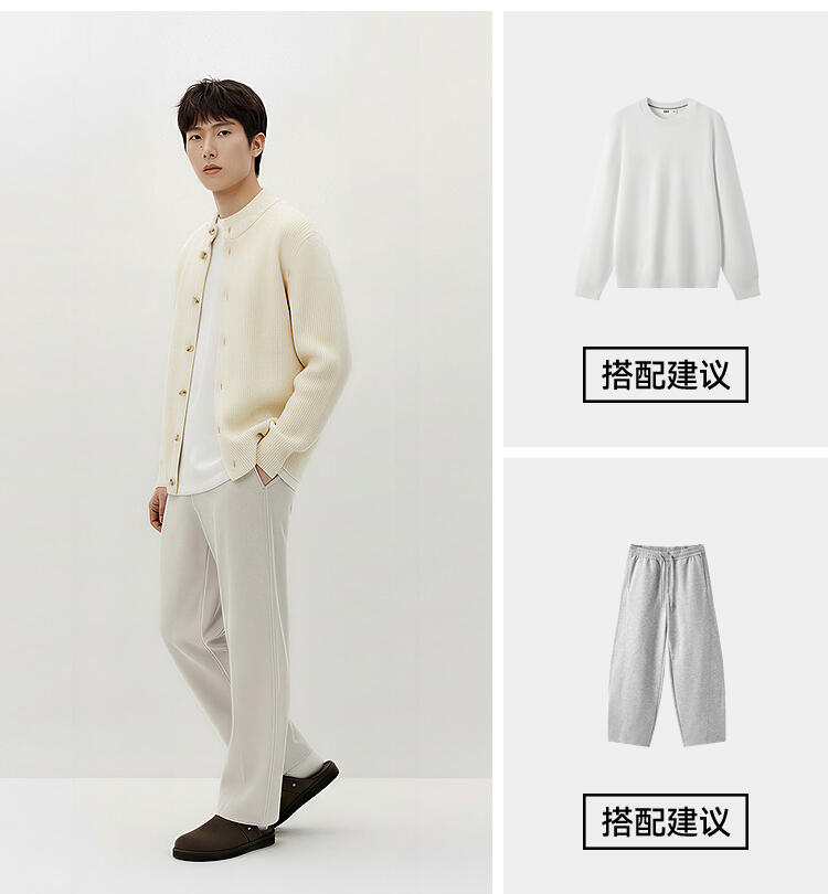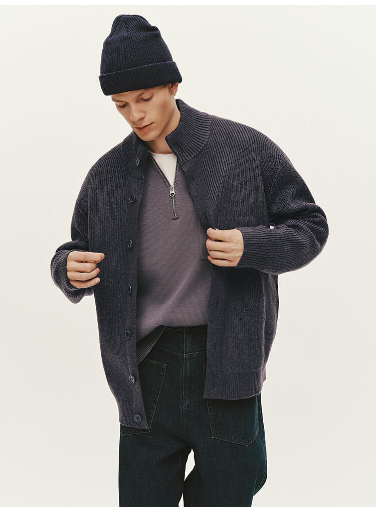 森马毛衫男冬季高领开衫外套宽松2025新款纯色百搭休闲针织衫毛衣