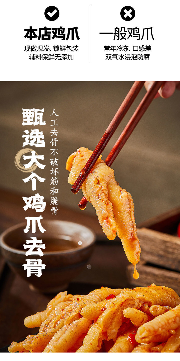 1.由于新鲜食品的特殊性,除质量问题(联系客服)收到鸡爪后请尽快使用,暂不食用,请放冰箱冷藏保存。
