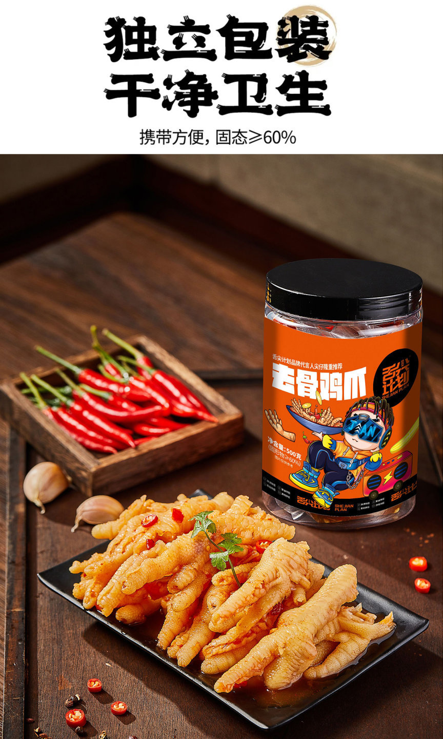 舌尖计划酸辣蒜香去骨鸡爪500g/罐休闲零食