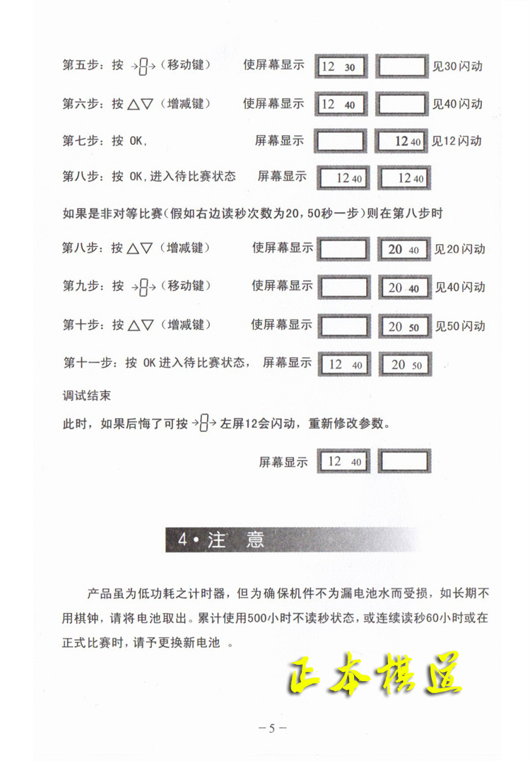 2.每种设置皆可将左右设置成不同的比赛时间、次数、读秒时限。