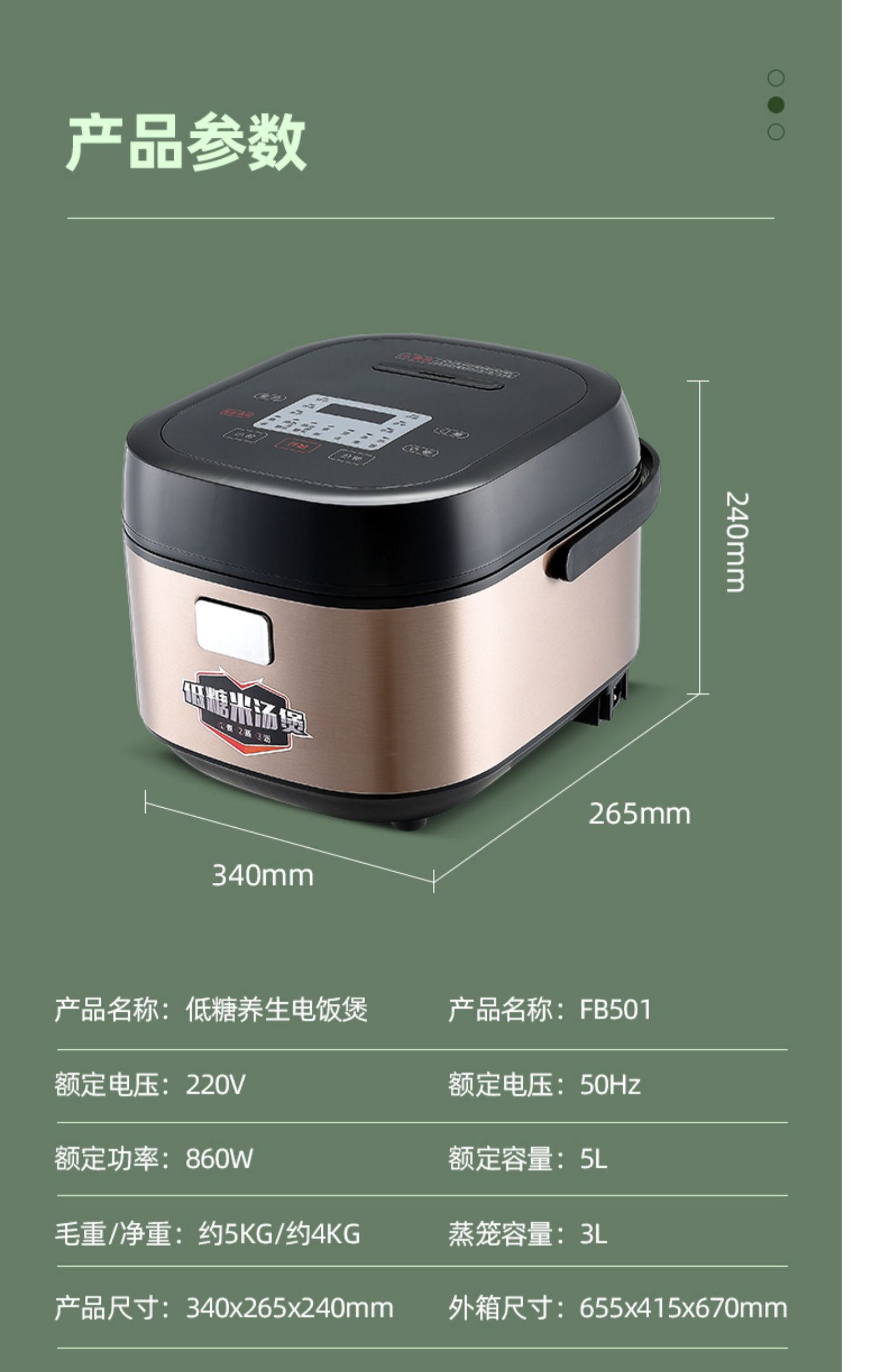 明大实业无低糖电饭煲米汤分离预约智能家用方款甄饭大容量饭锅